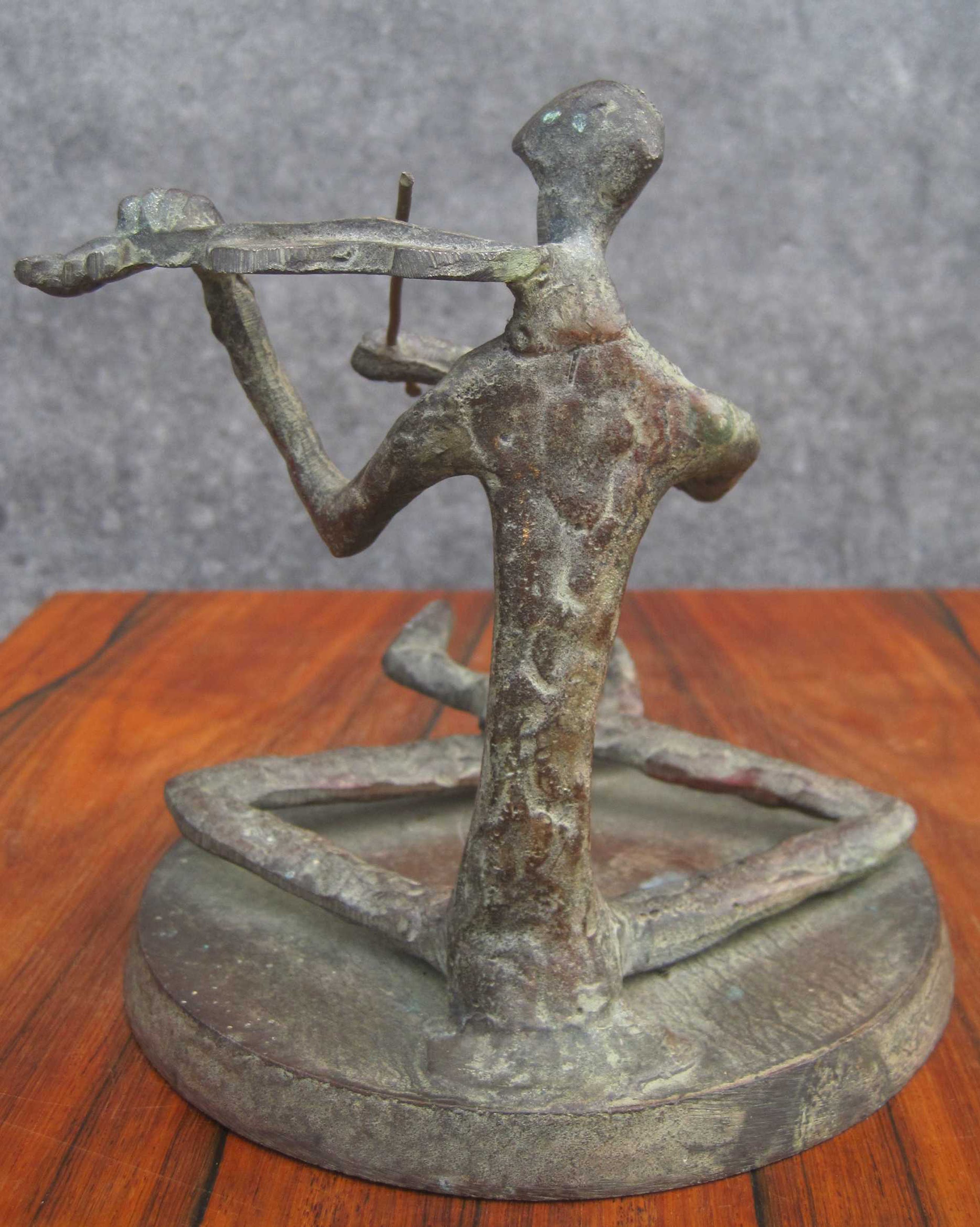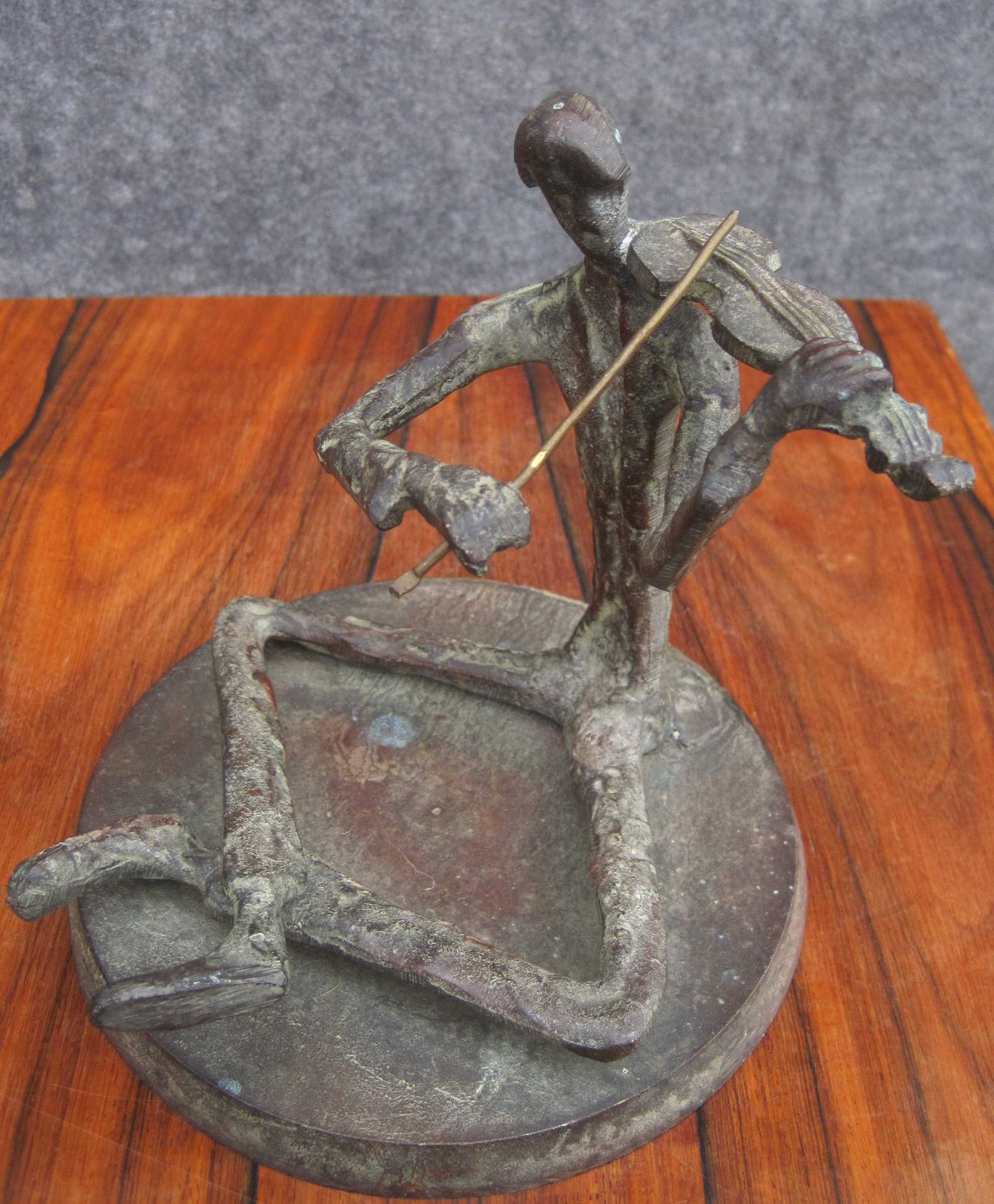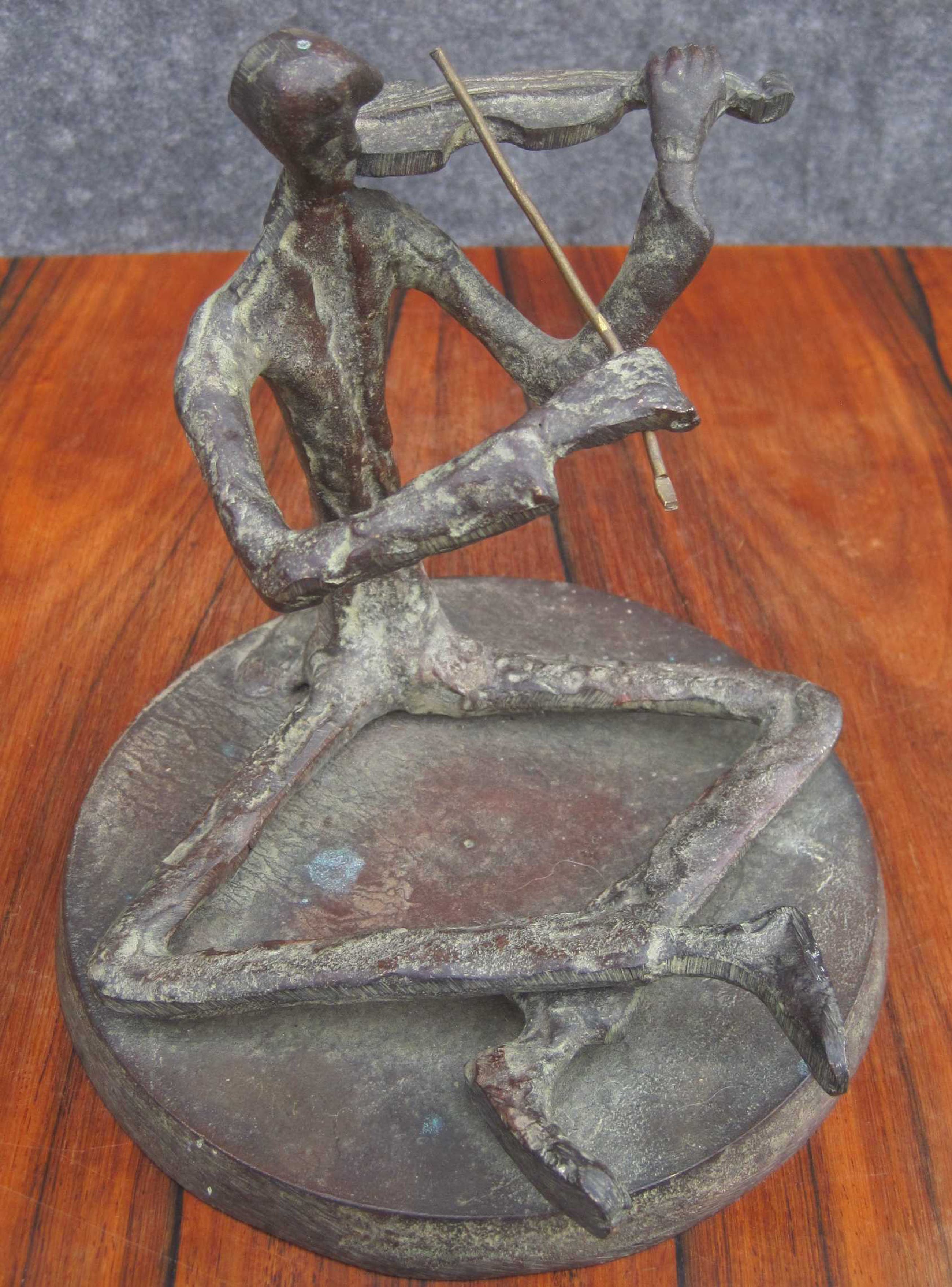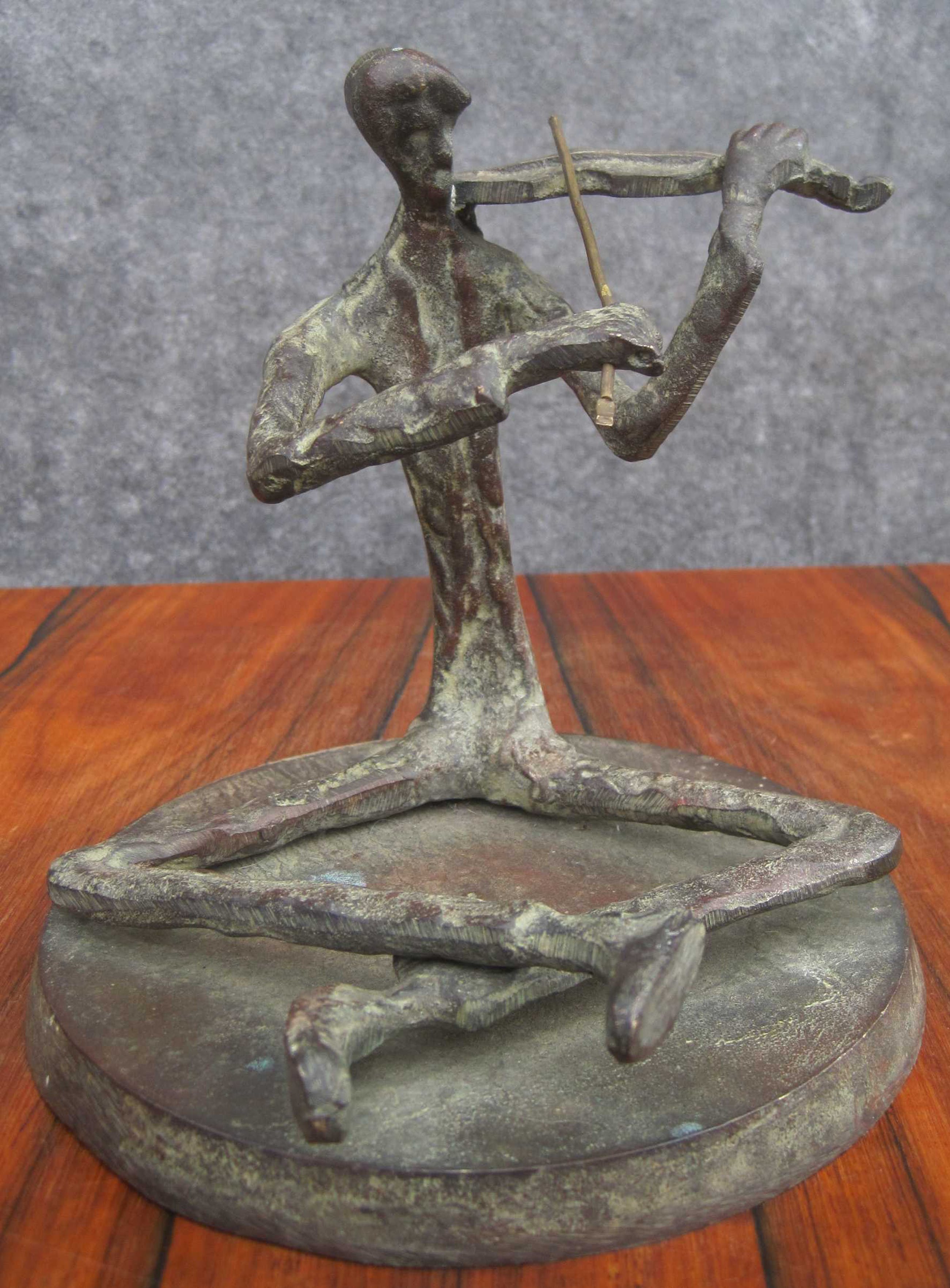 Zwaar massief bronzen beeld van een violist die zijn brood op straat verdiend. Het beeld is bronsgroen gepatineerd en verkeert in een uitstekende staat.