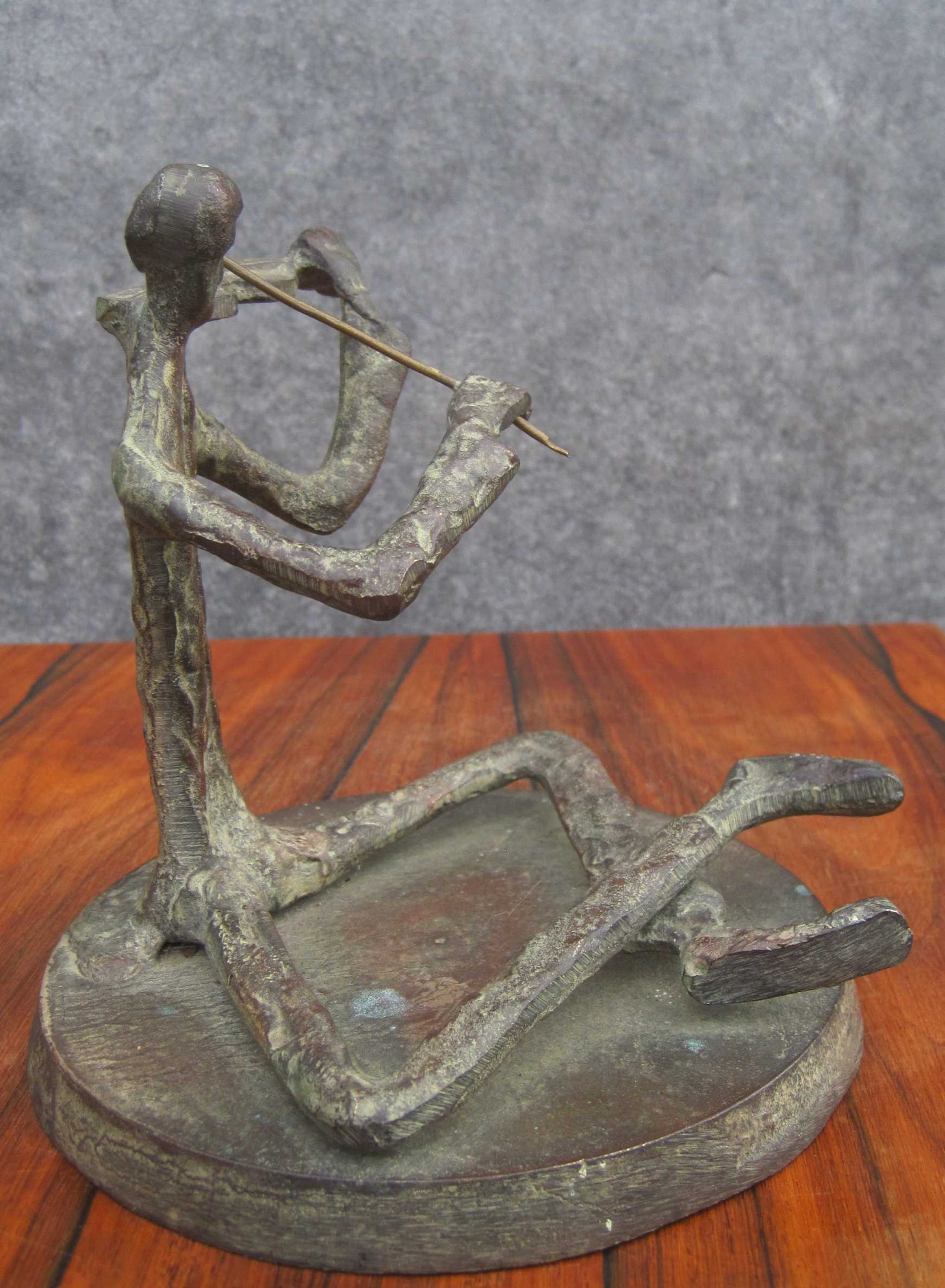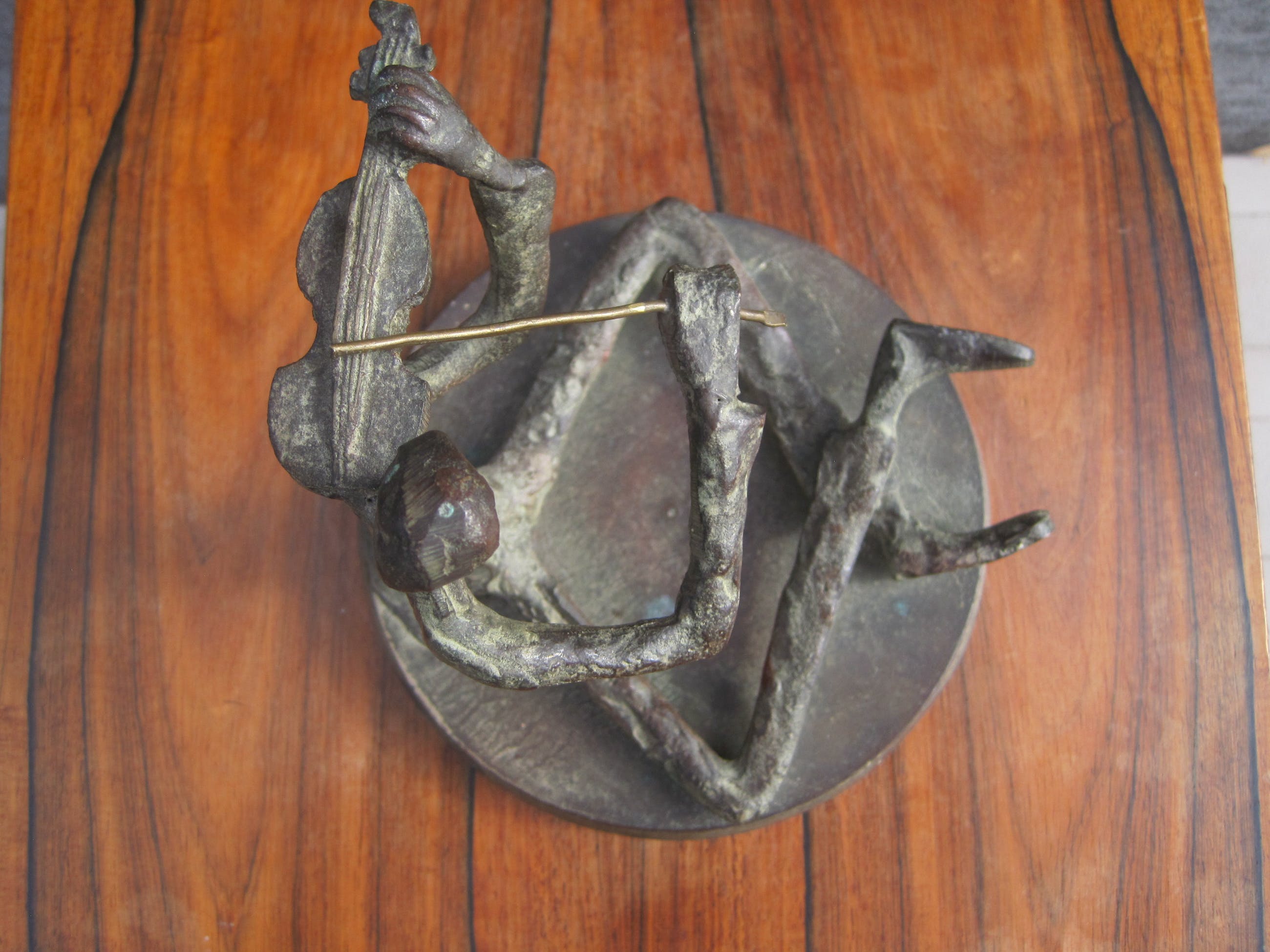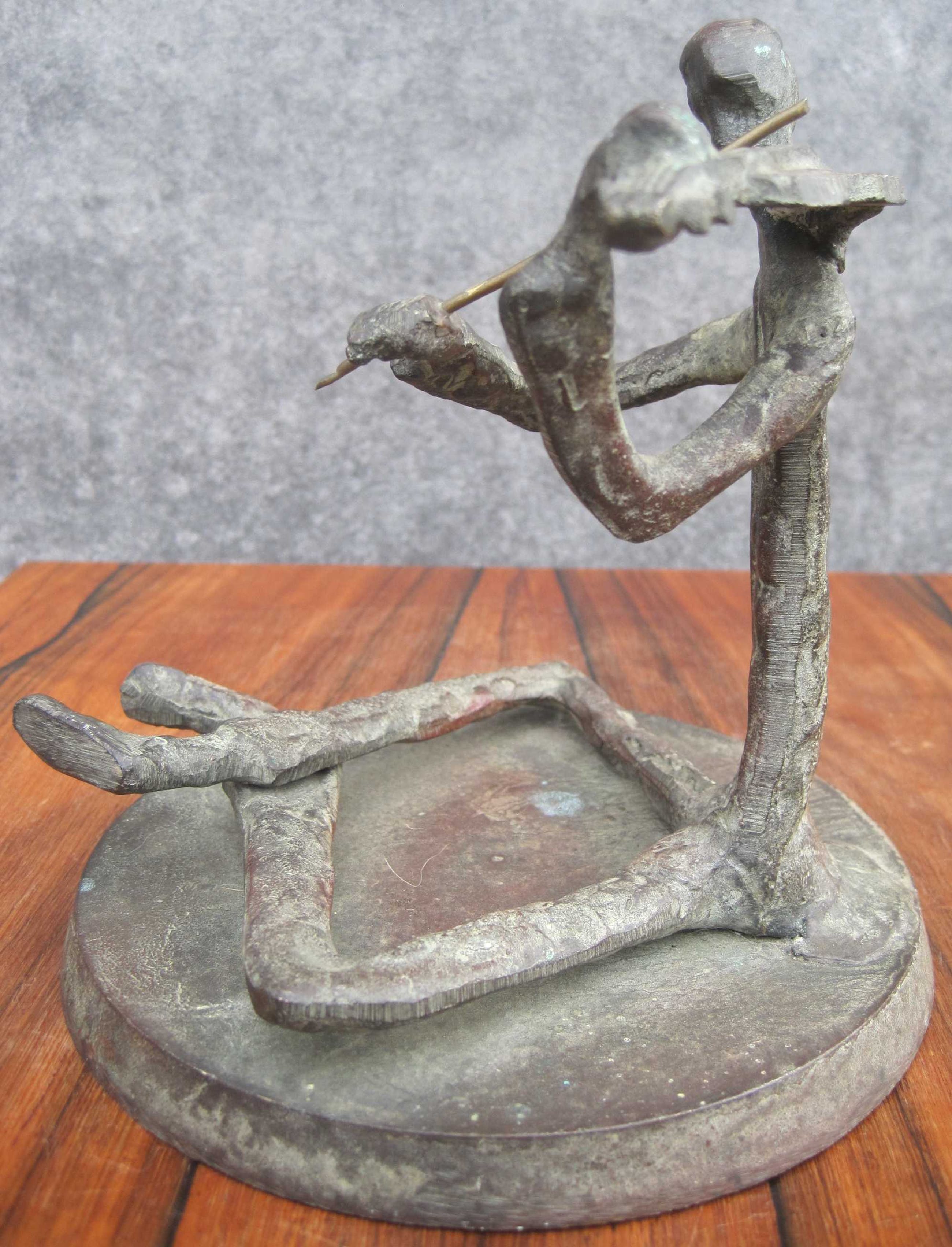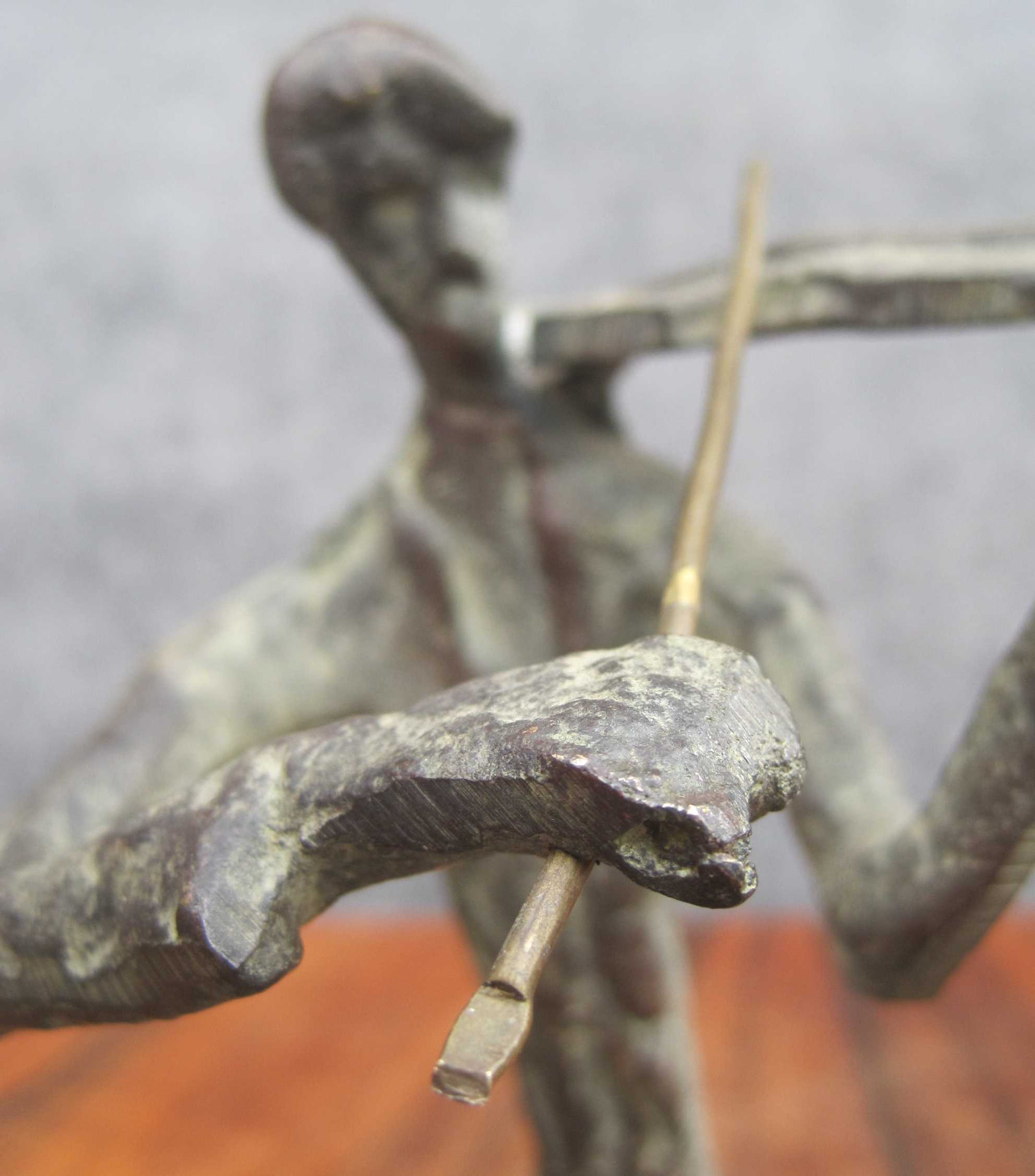 Zwaar massief bronzen beeld van een violist die zijn brood op straat verdiend. Het beeld is bronsgroen gepatineerd en verkeert in een uitstekende staat.