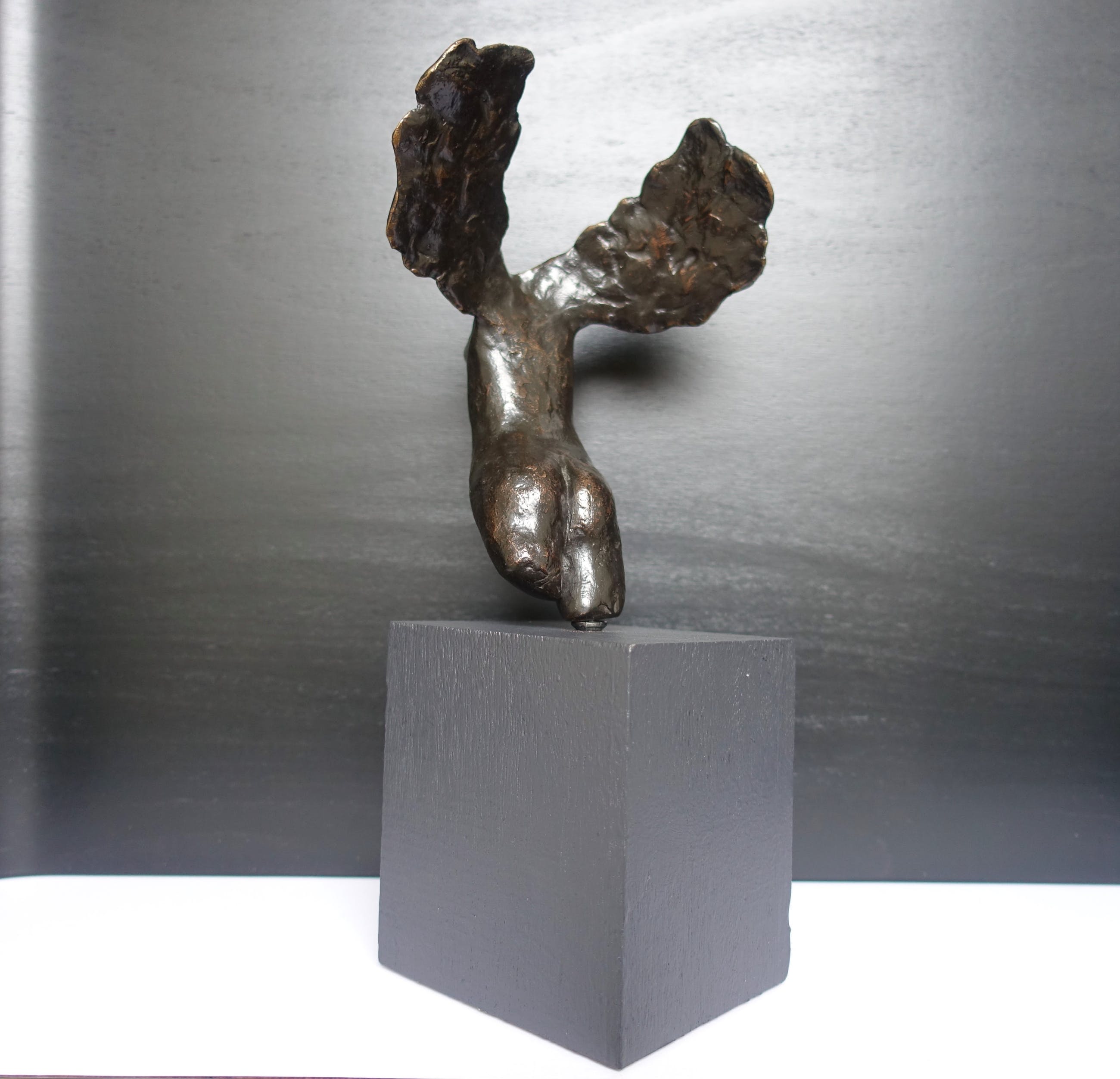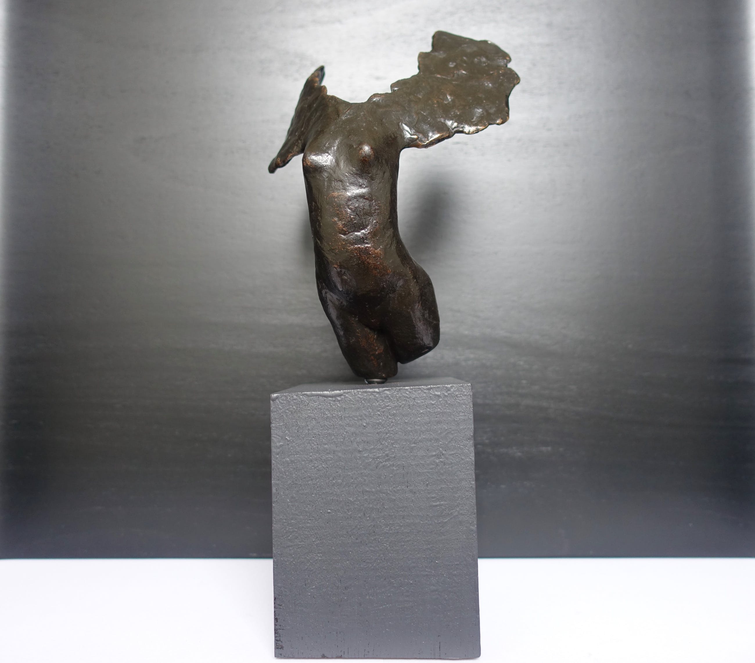 Zeer fraai bronzen torso van een engel op houten sokkel, zeer fraai beeld. De hoogte is inclusief de sokkel. De sokkel is 12 hoog.