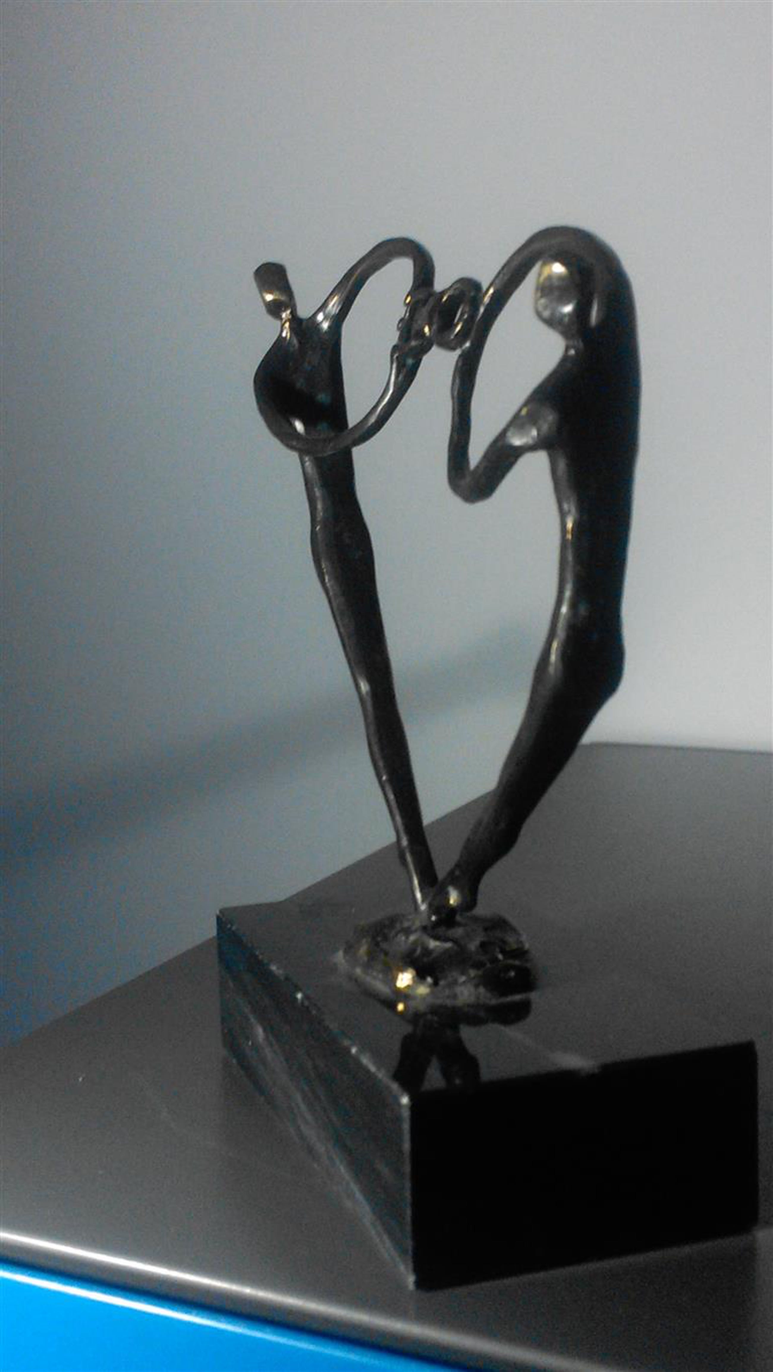 Hartvormig beeld van twee personen op een natuurstenen sokkel gesigneerd , zie foto, maar door mij niet herkend. Onderzijde sokkel vermeld Artihove
