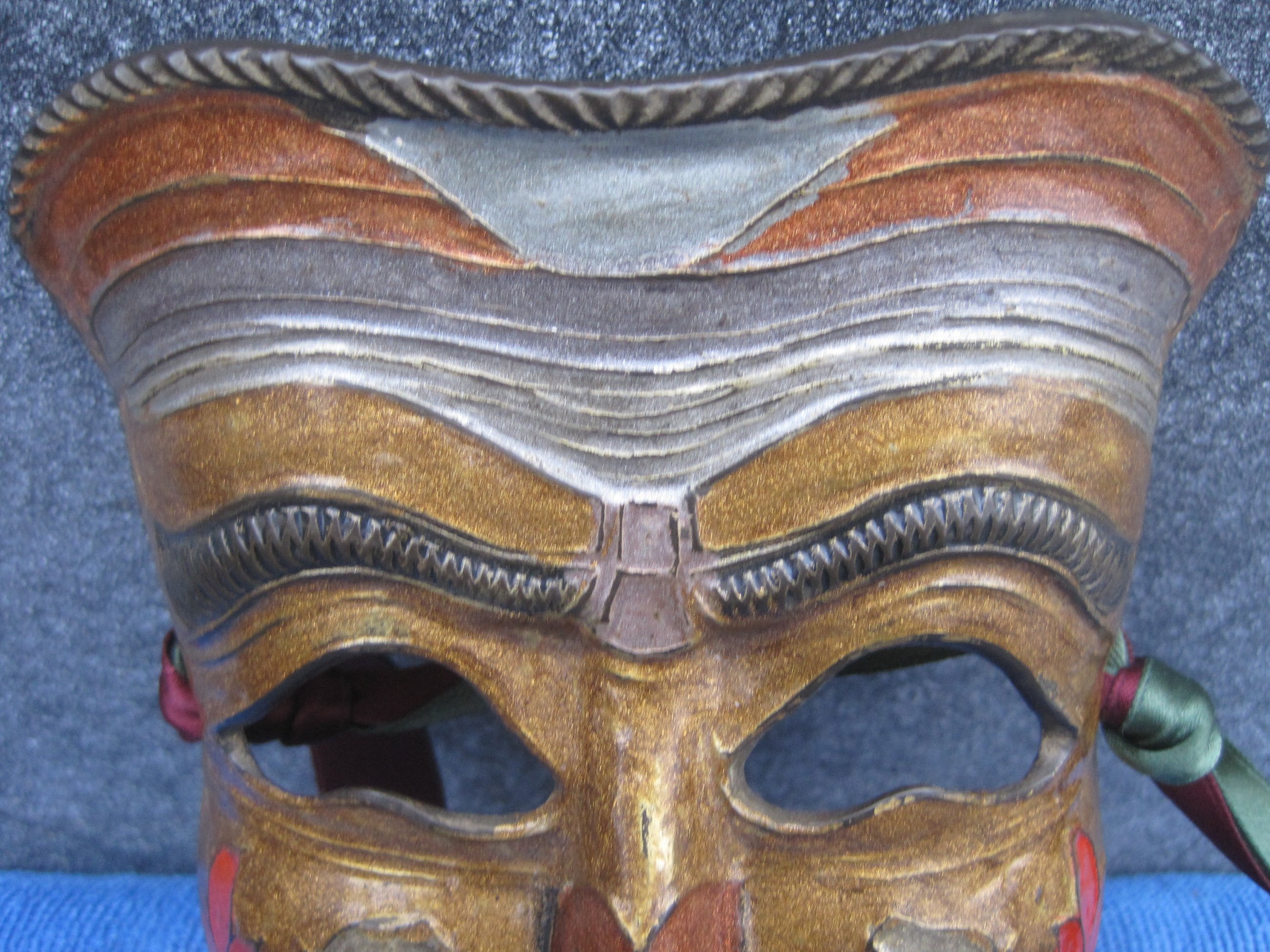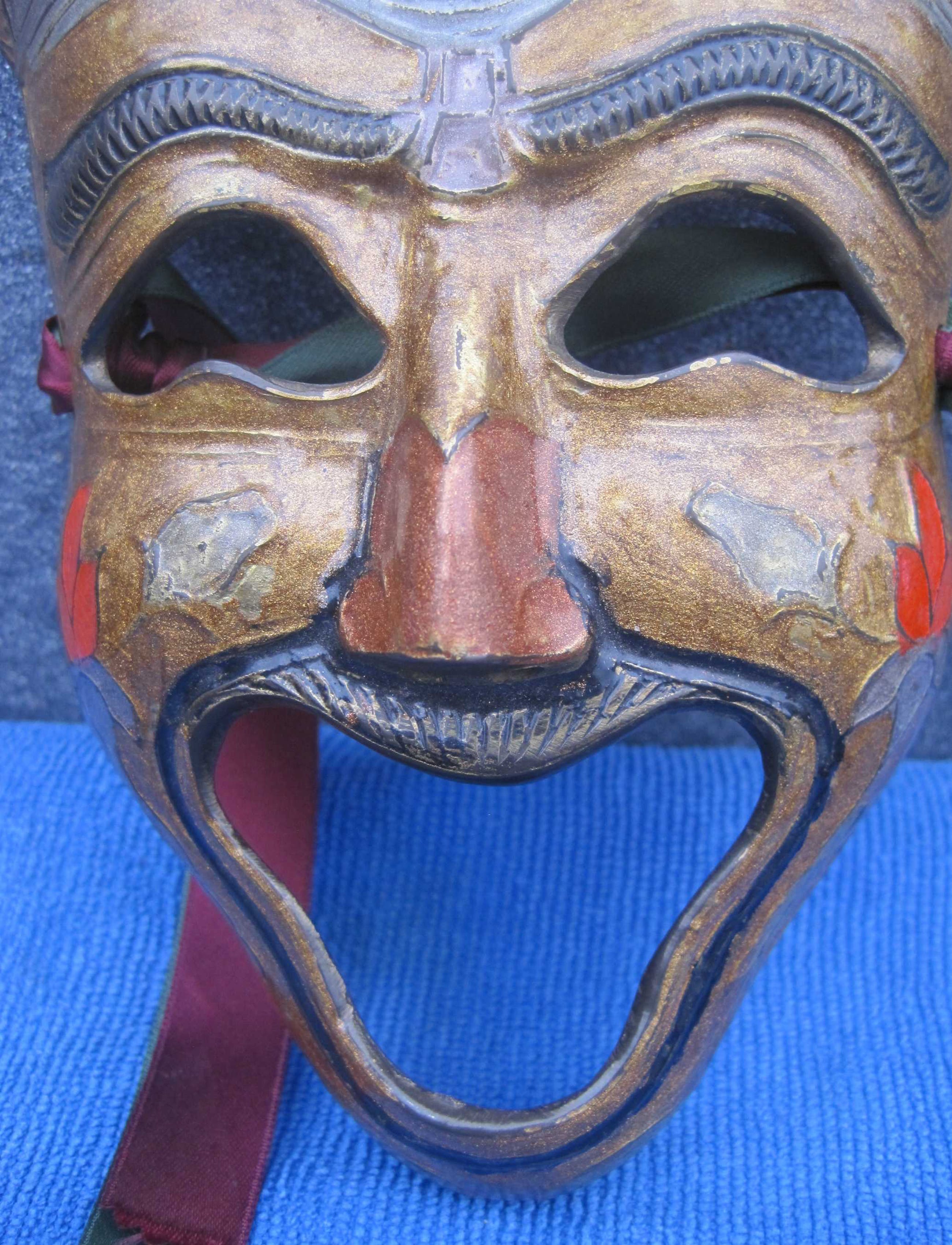 Heel goed gegoten en beschilderd bronzen masker uit Venetie