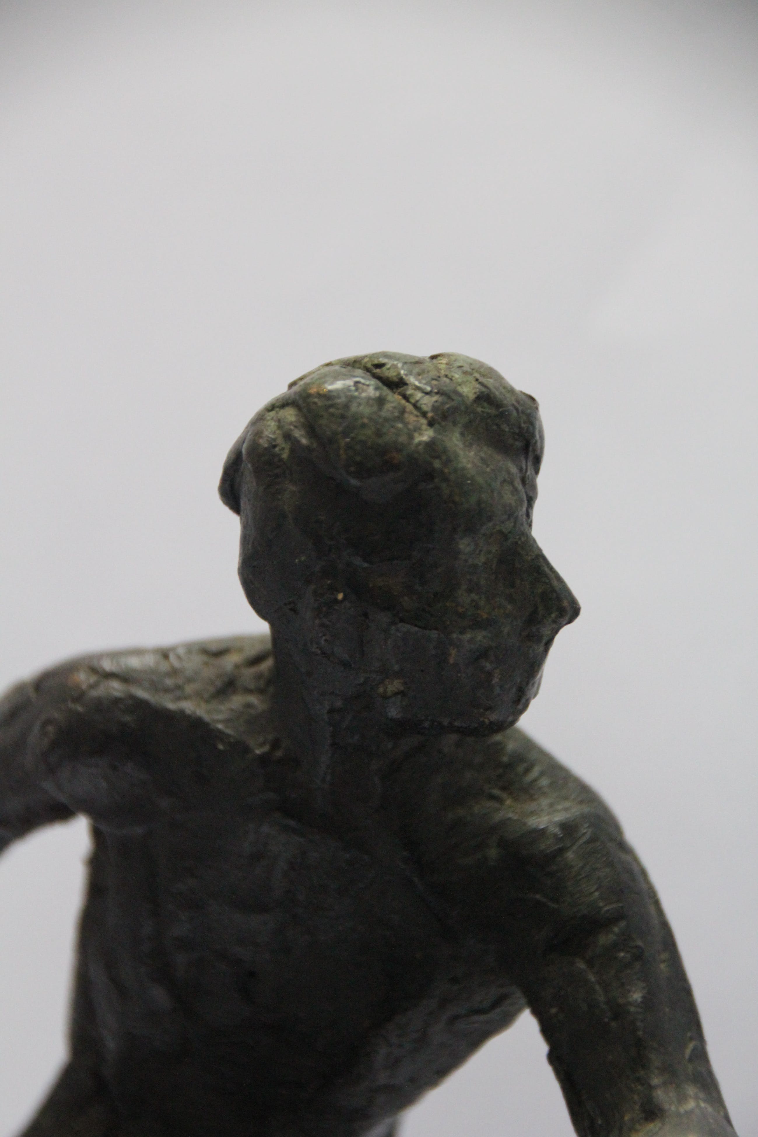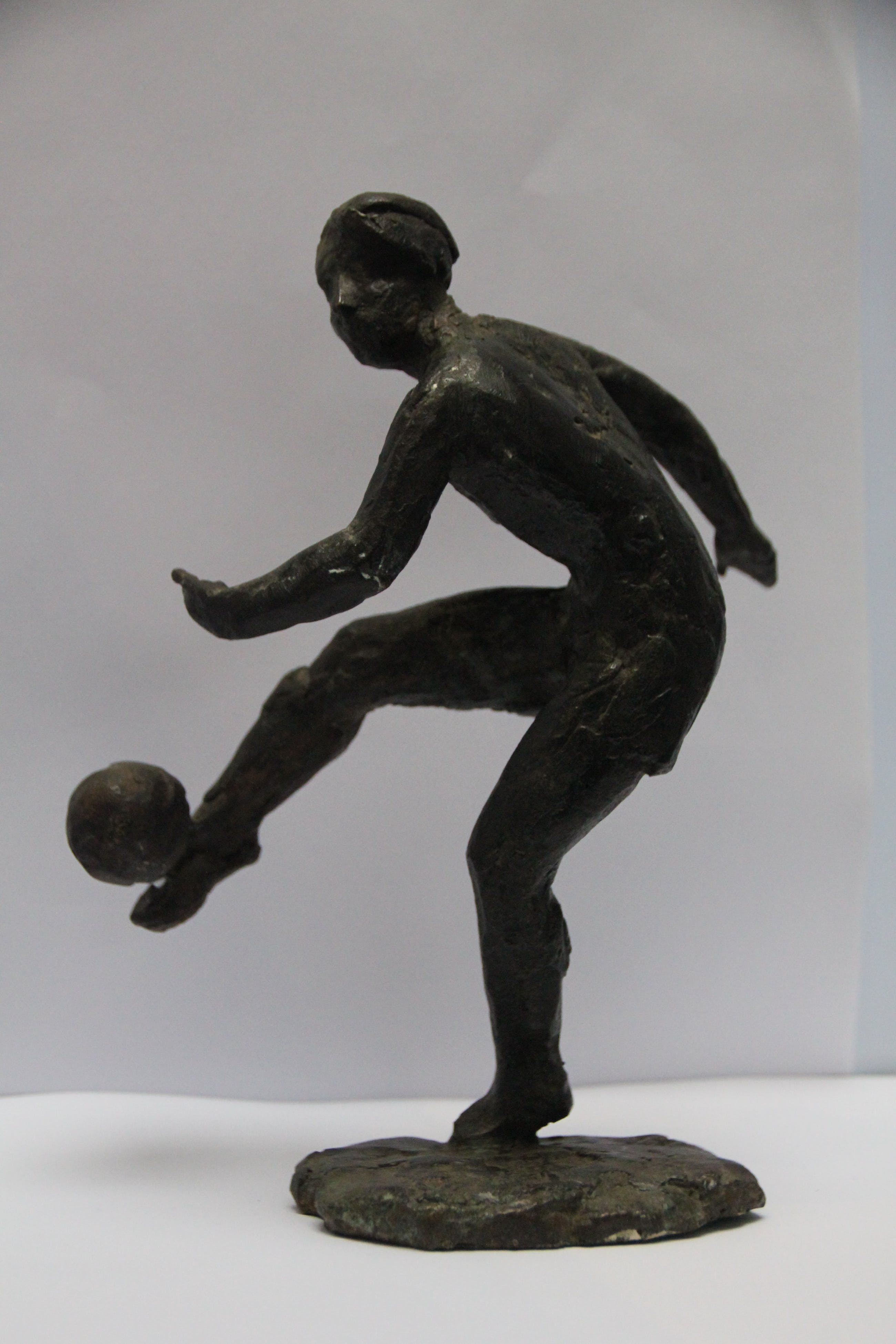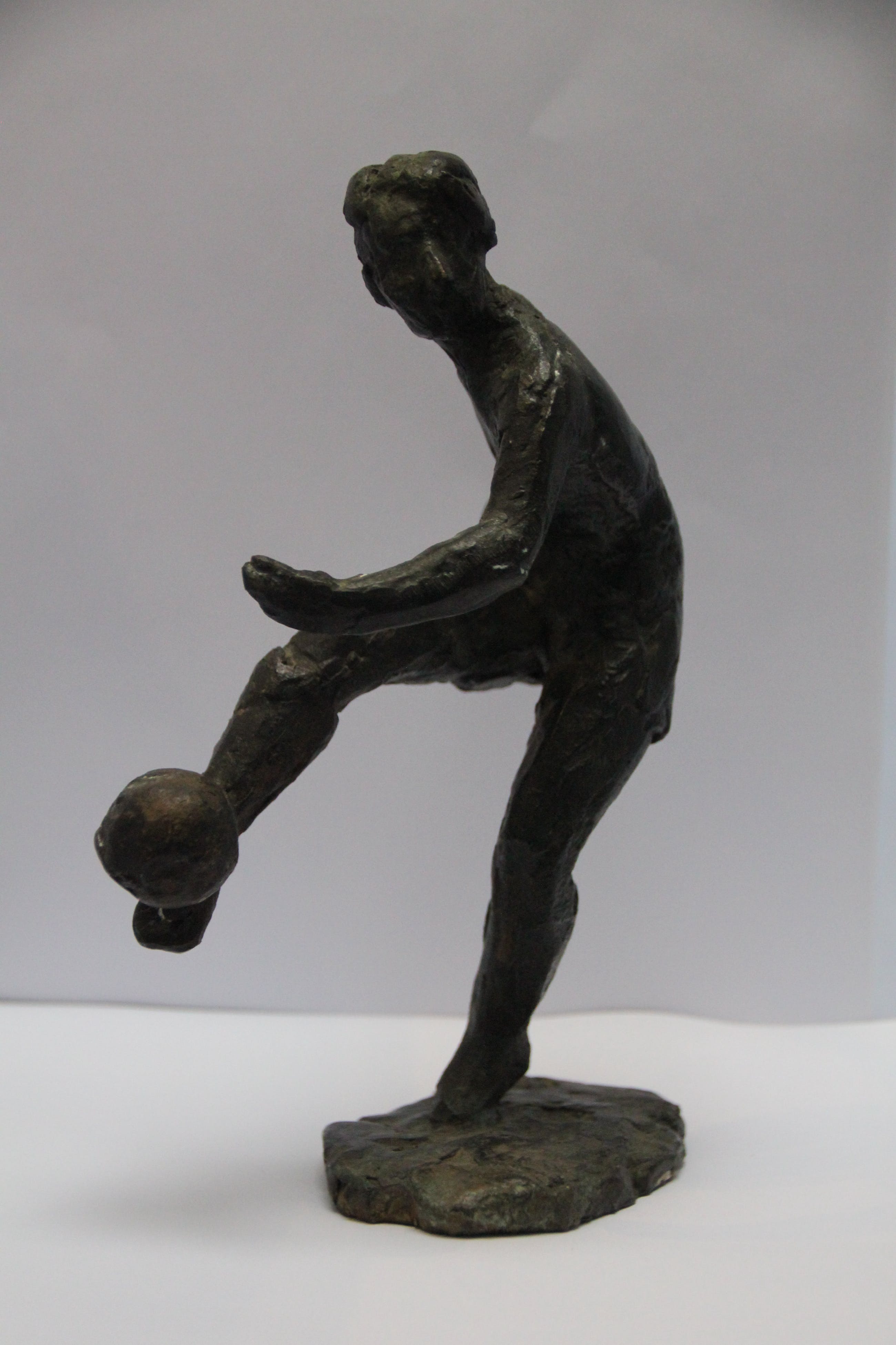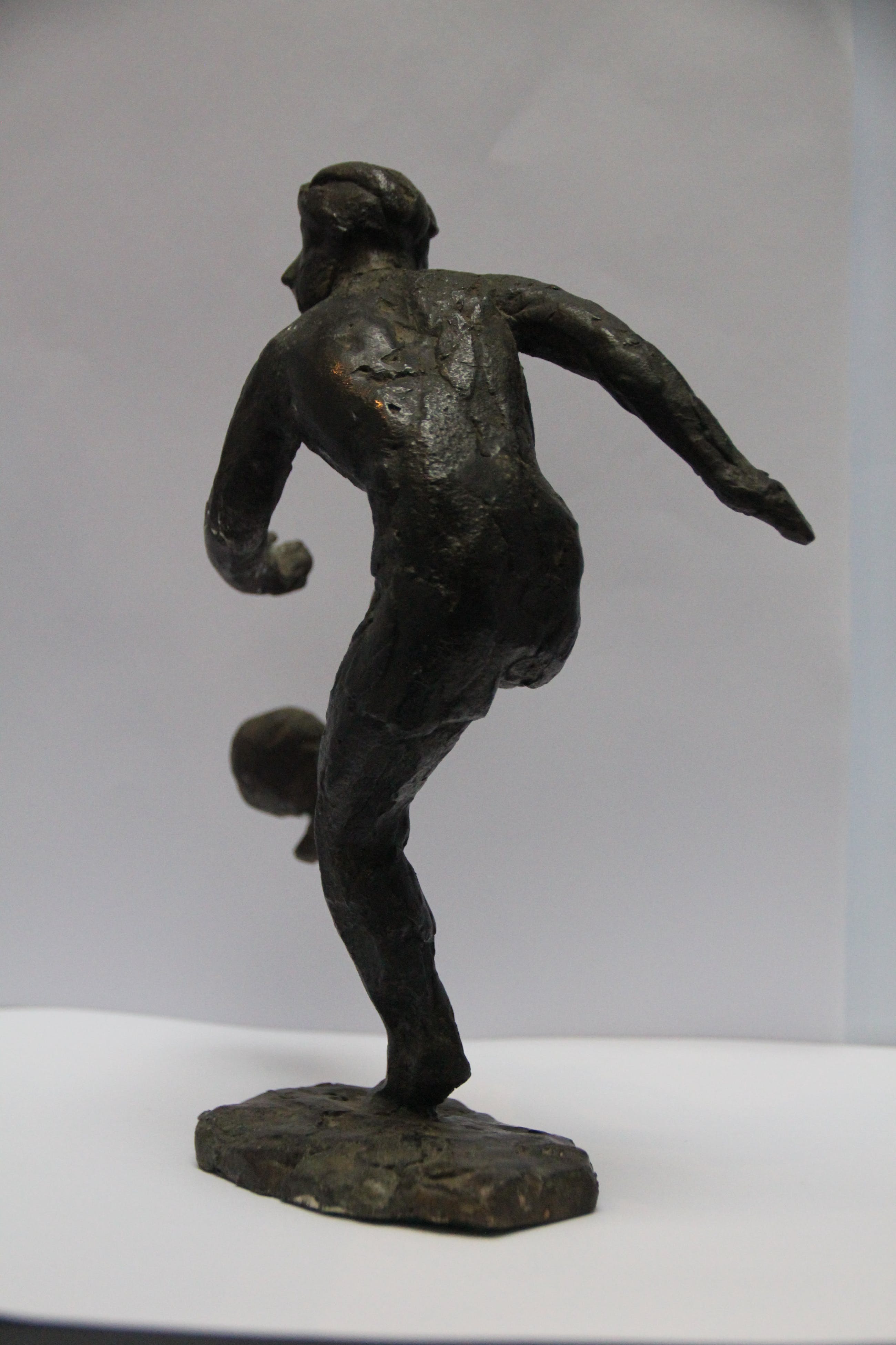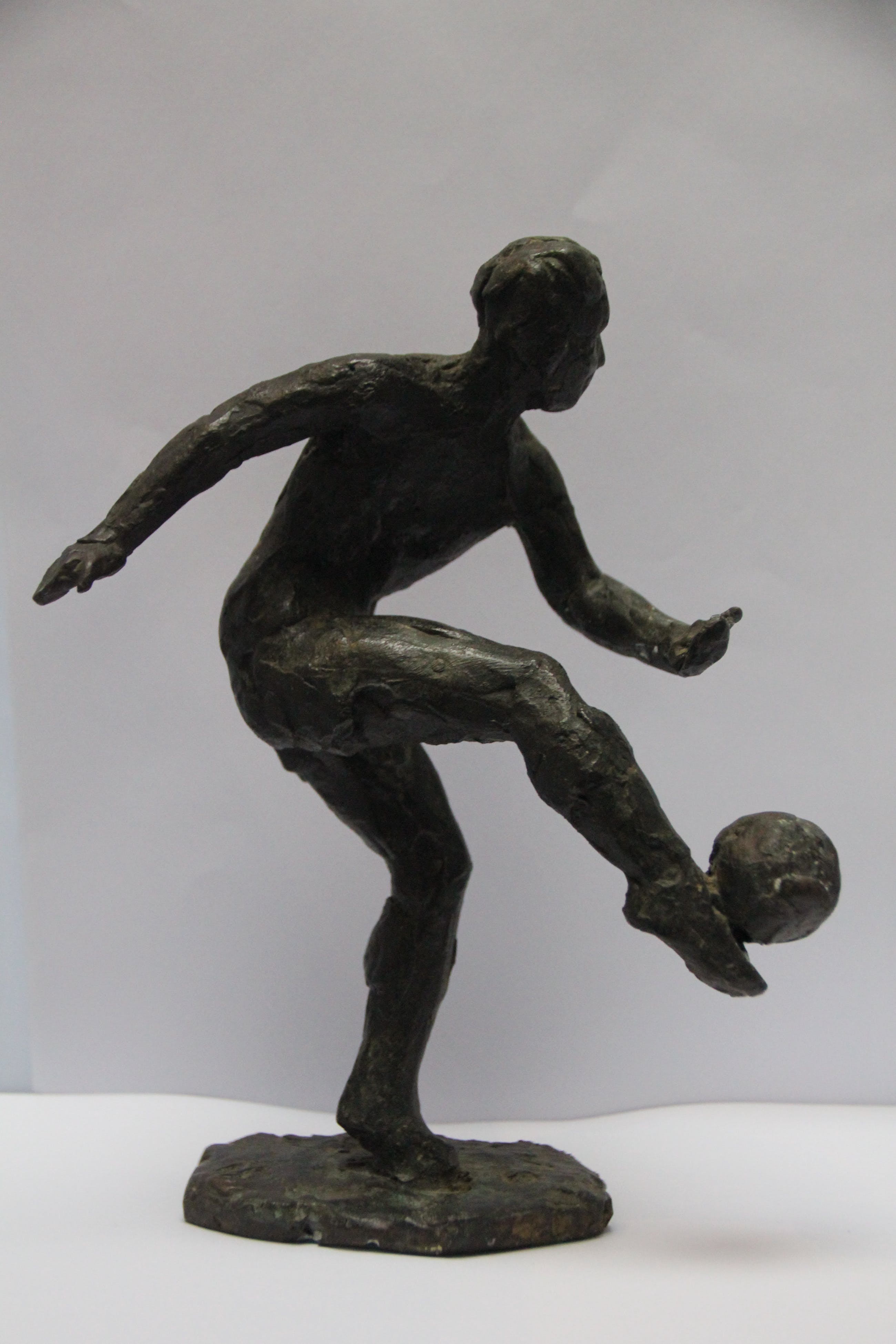 Bronzen sculptuur van een voetballer in actie. Gesigneerd E S