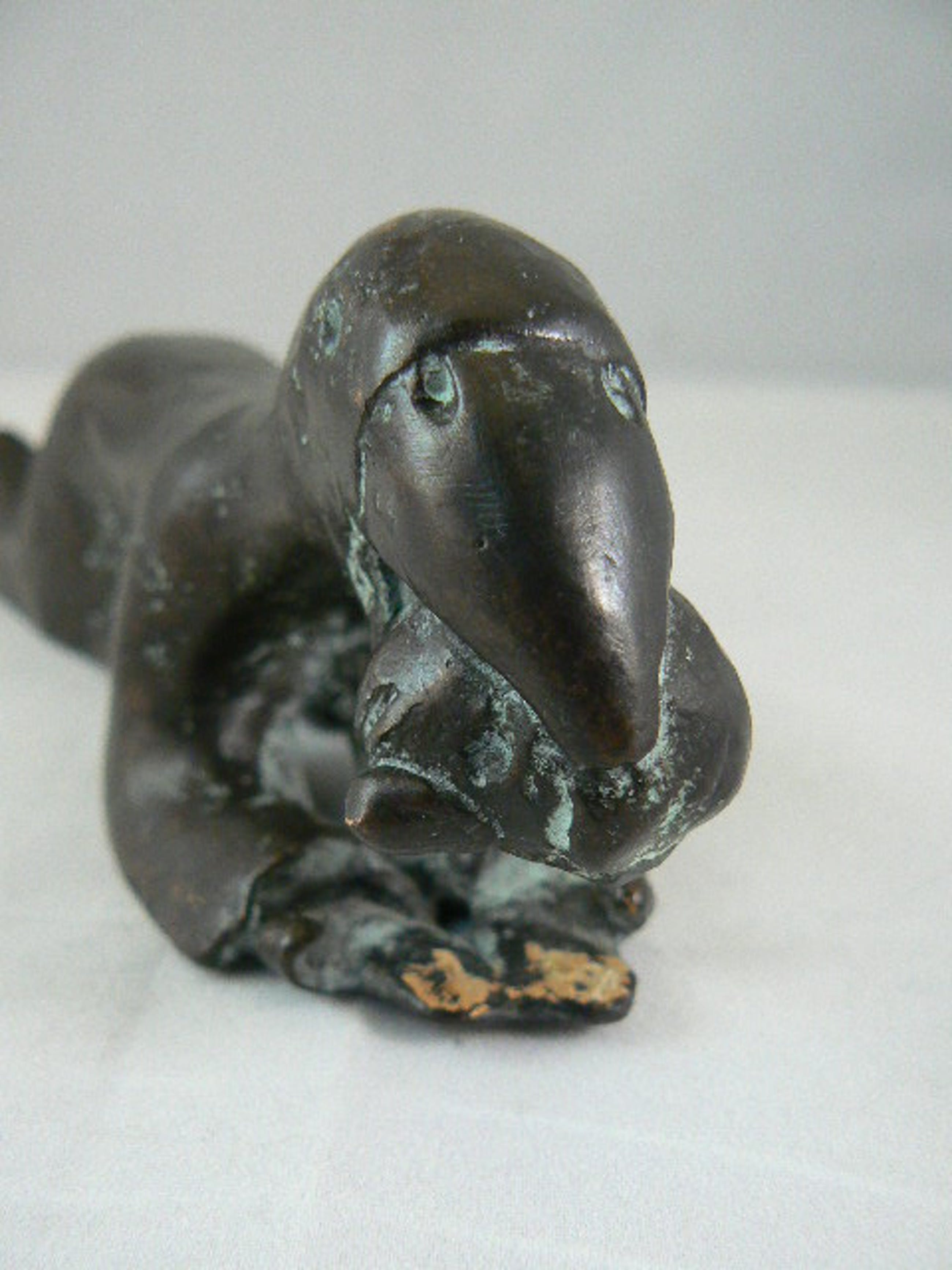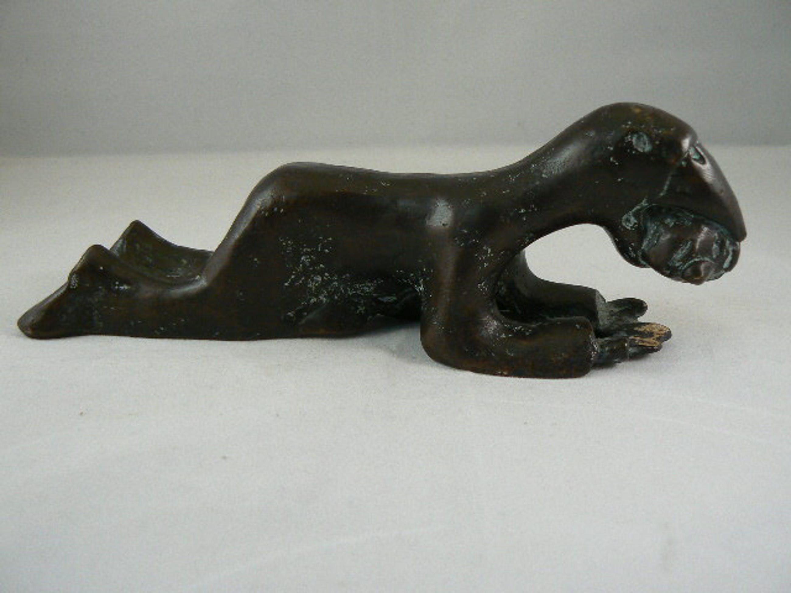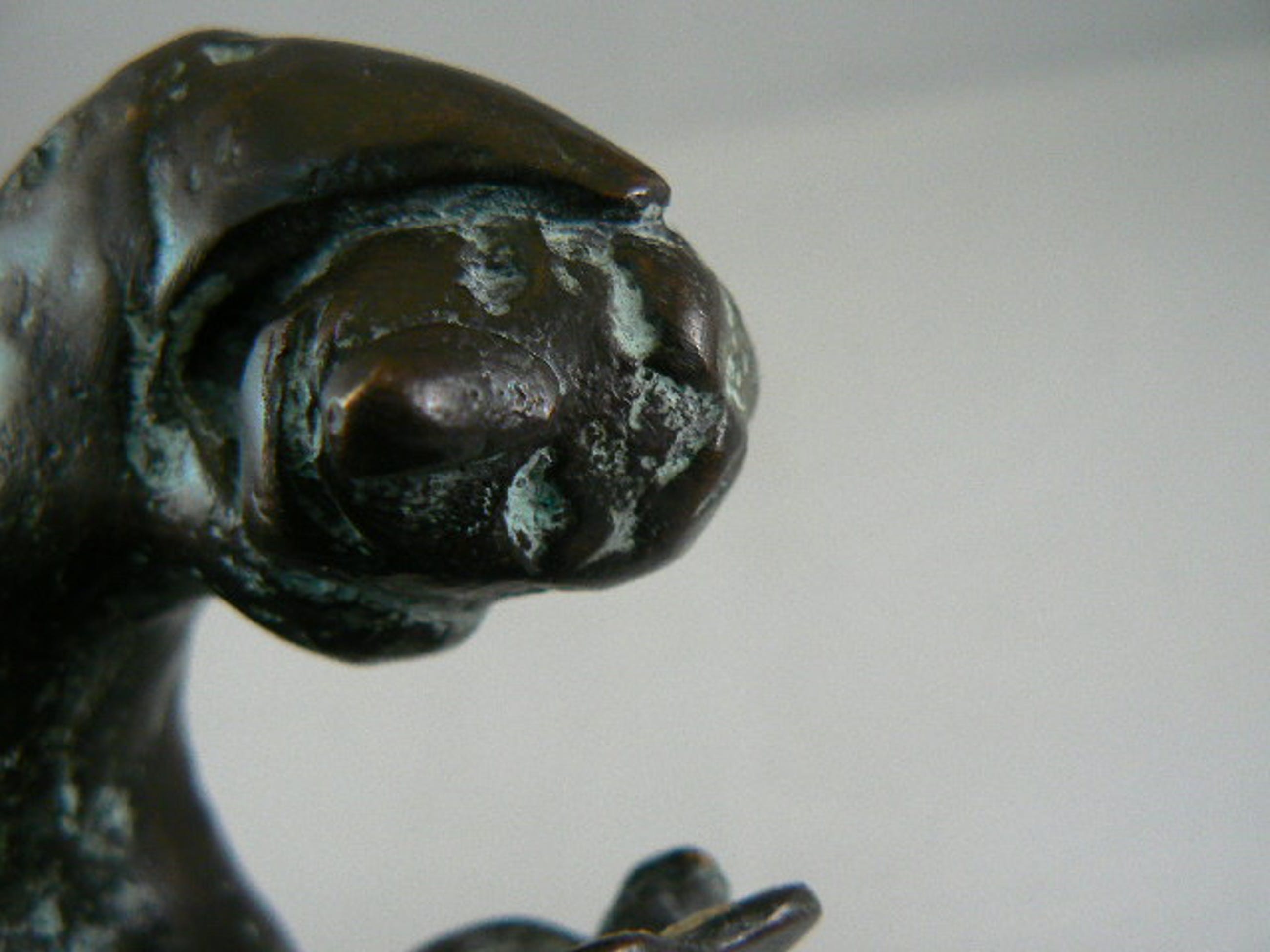 Sculptuur van een soort vogel mens. Kunstenaar onbekend, ook geen signatuur kunnen vinden. Aan de onderzijde zit een gaatje met schroefdraad. Zodat hij aan een sokkel bevestigd kan worden.