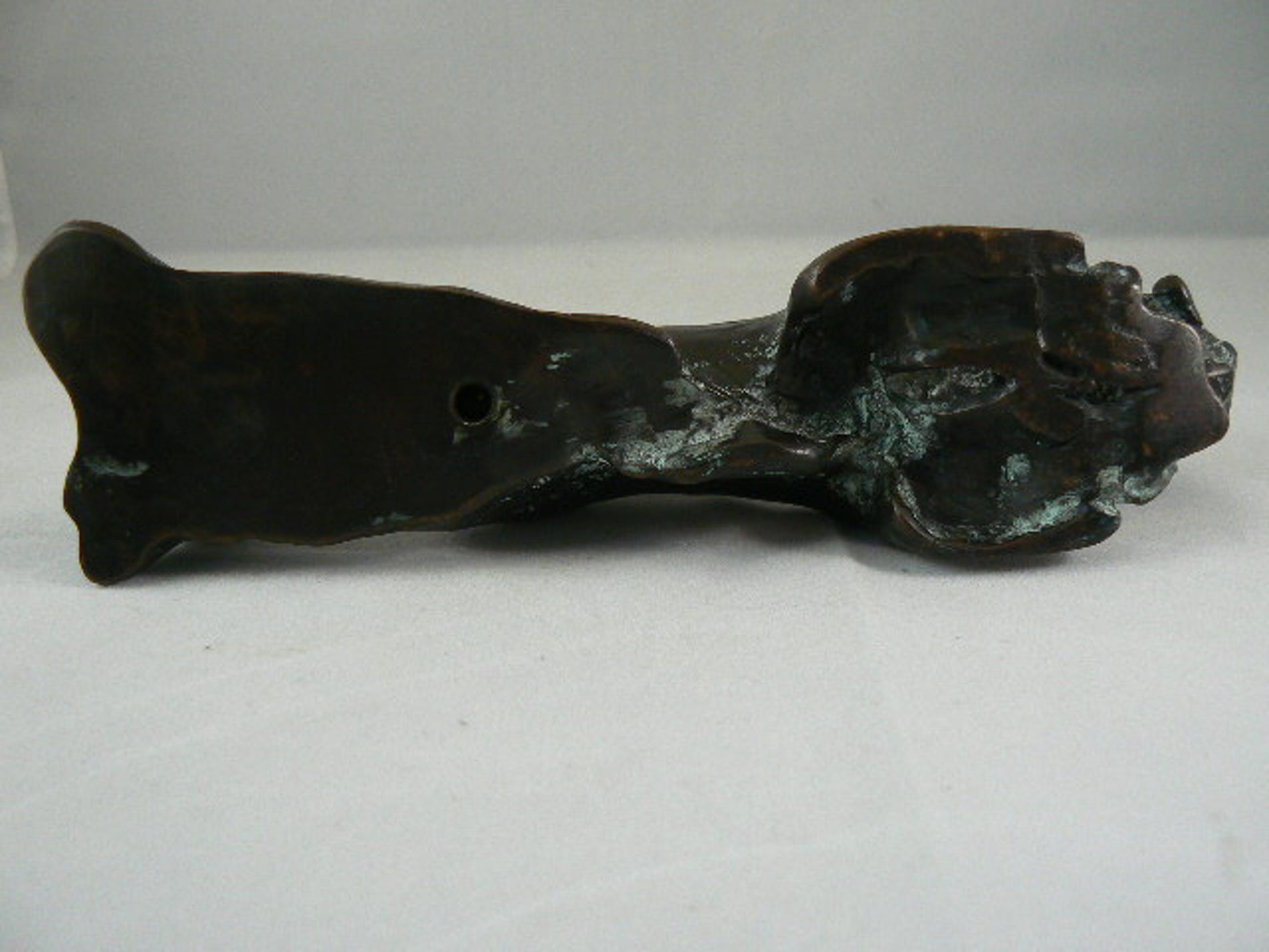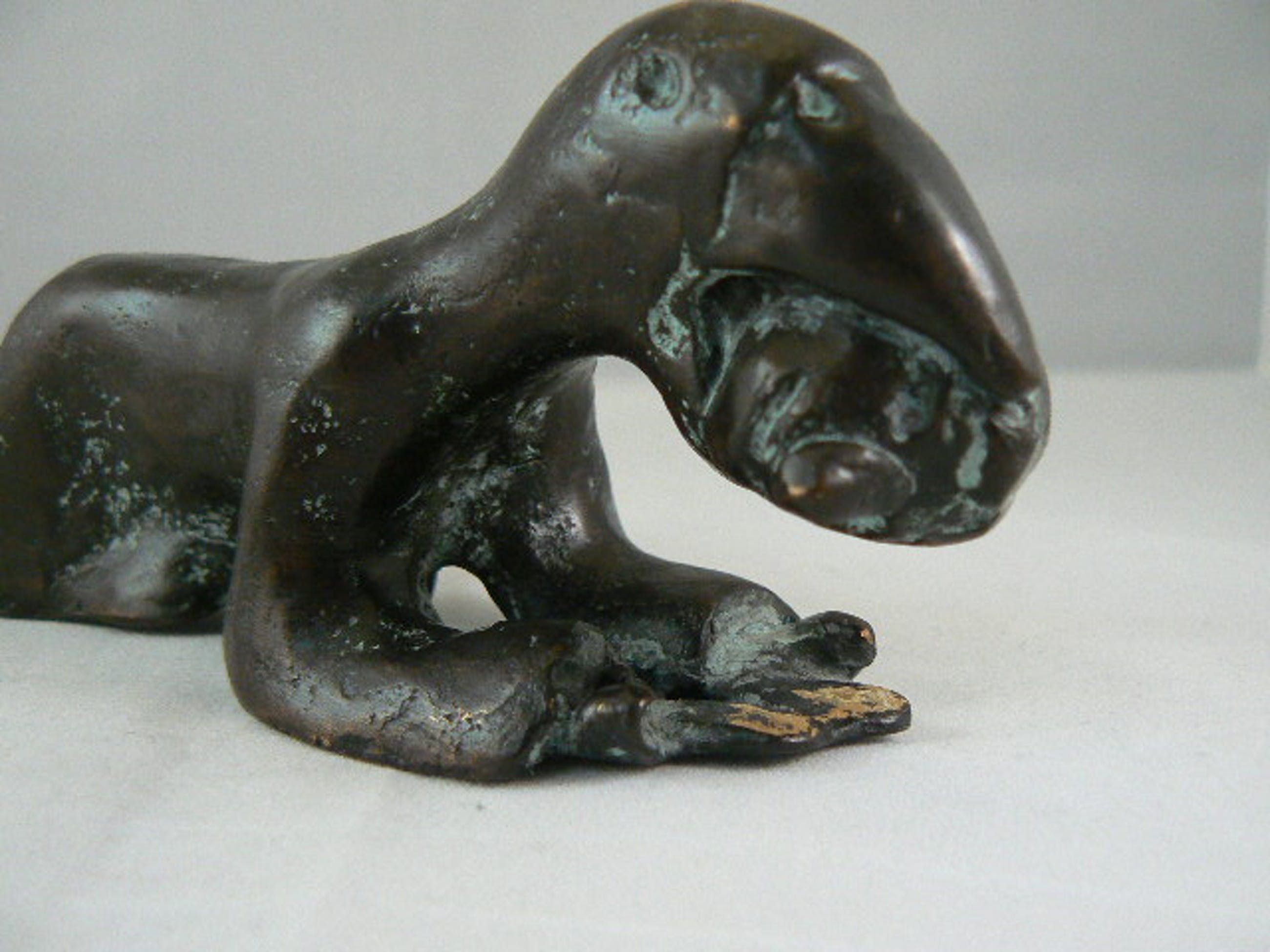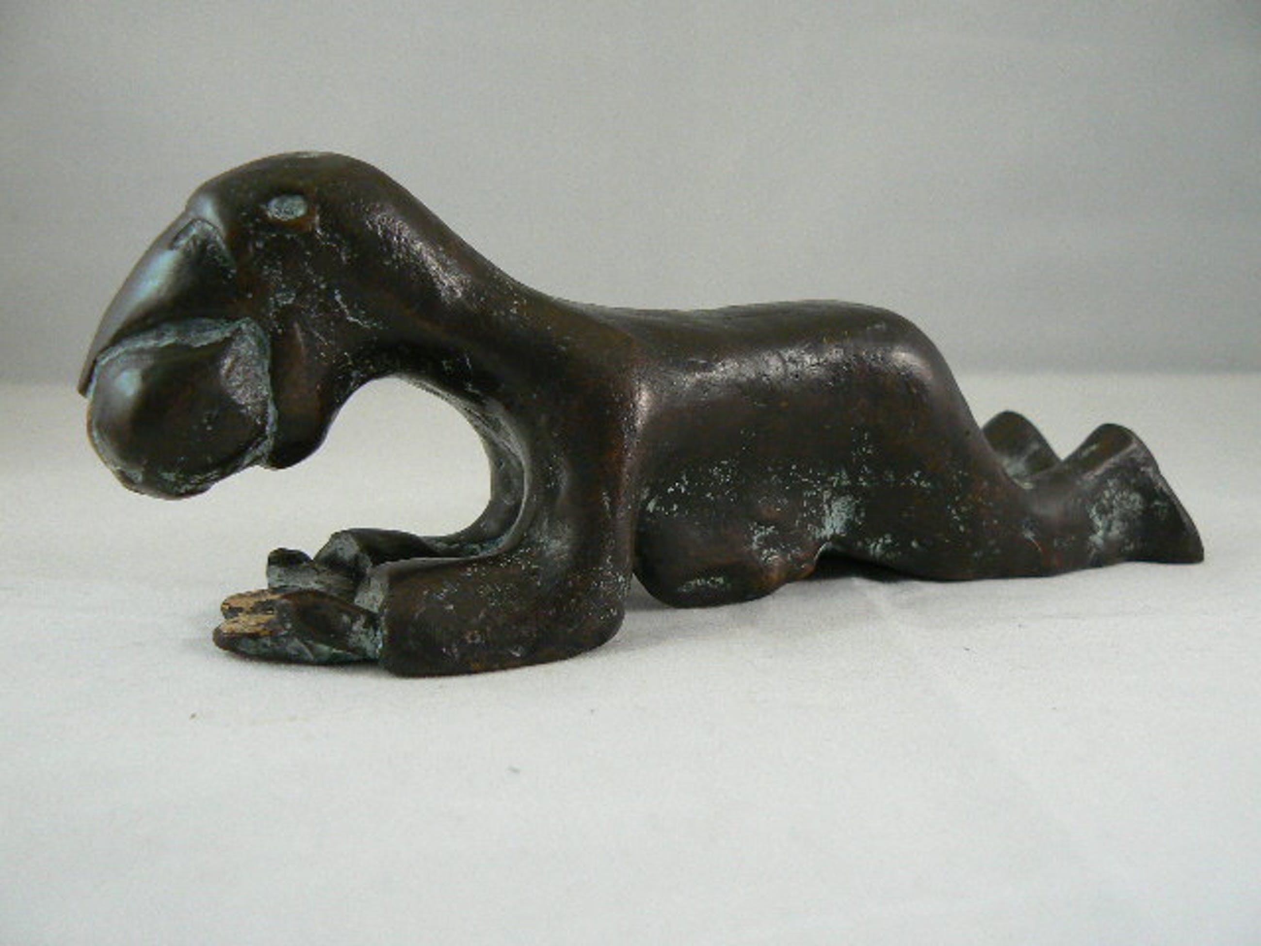 Sculptuur van een soort vogel mens. Kunstenaar onbekend, ook geen signatuur kunnen vinden. Aan de onderzijde zit een gaatje met schroefdraad. Zodat hij aan een sokkel bevestigd kan worden.