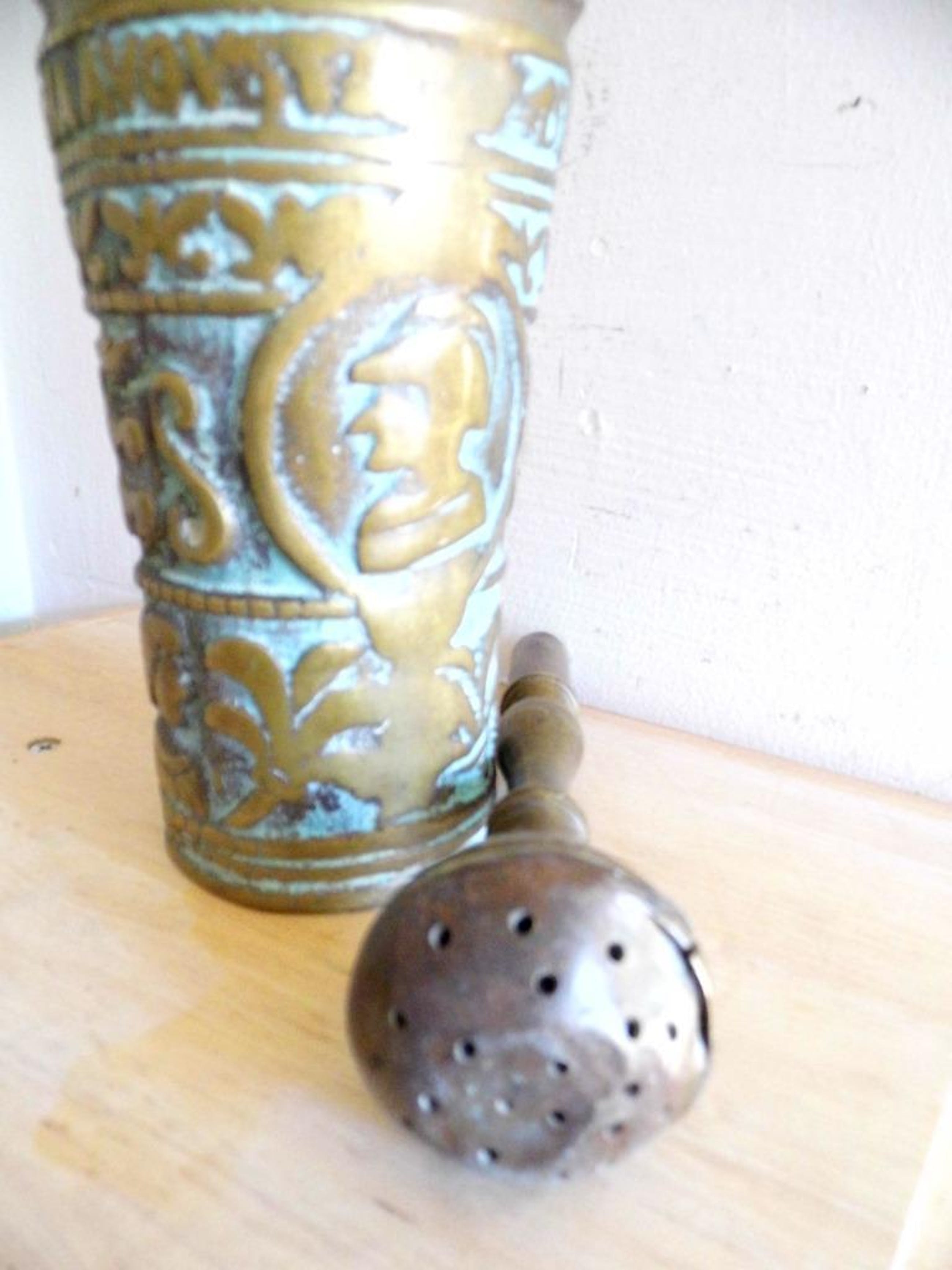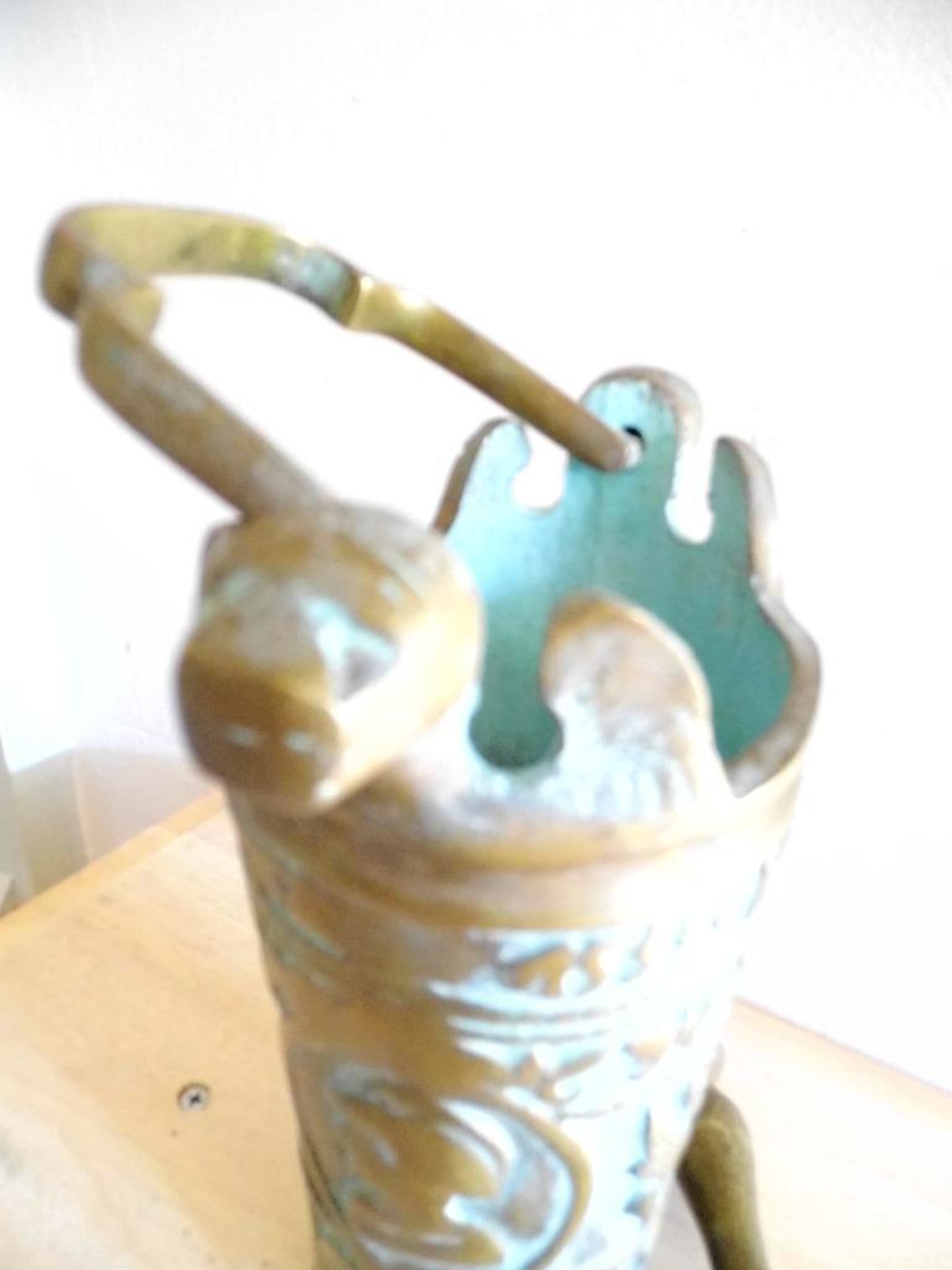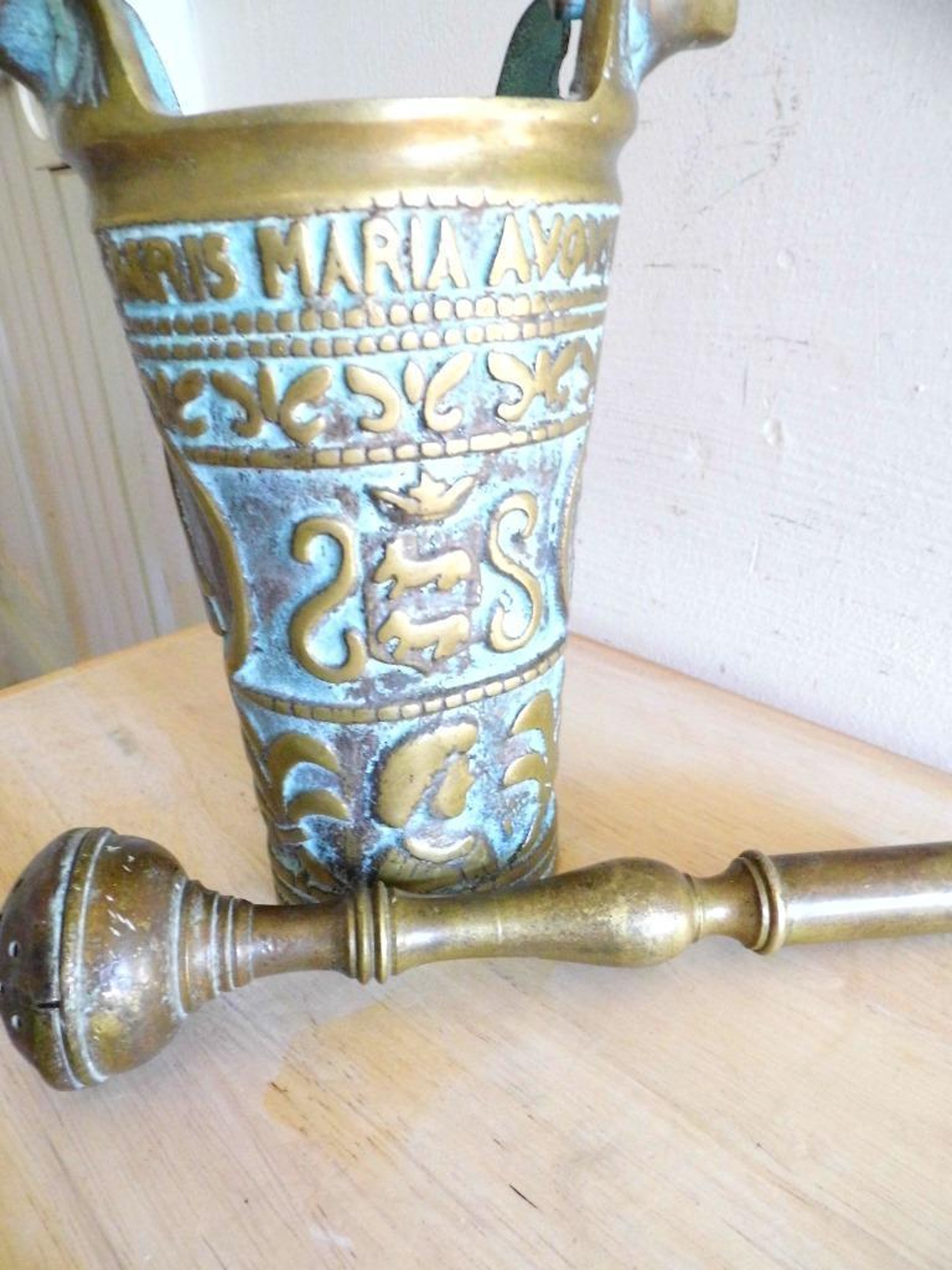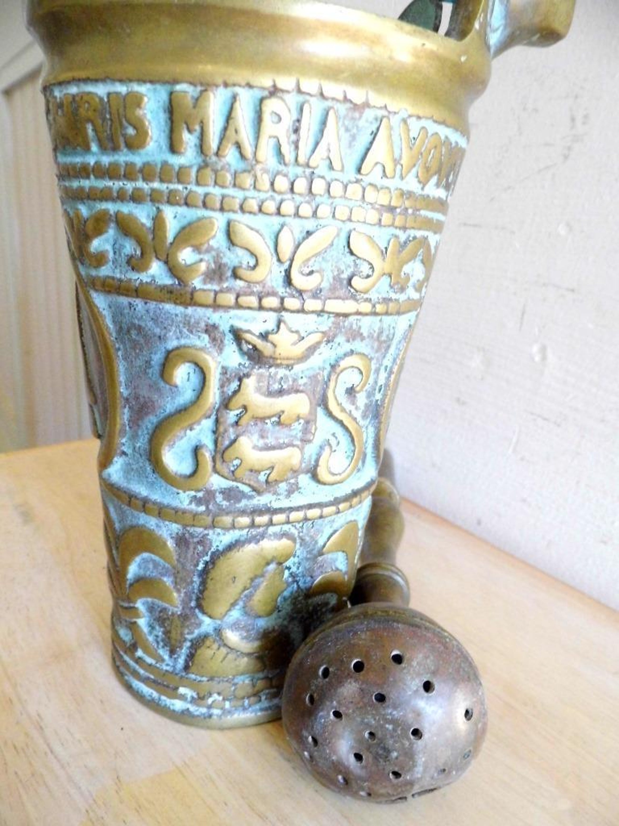 Dit bronzen wijwatervat verkeerd in een goede conditie.
