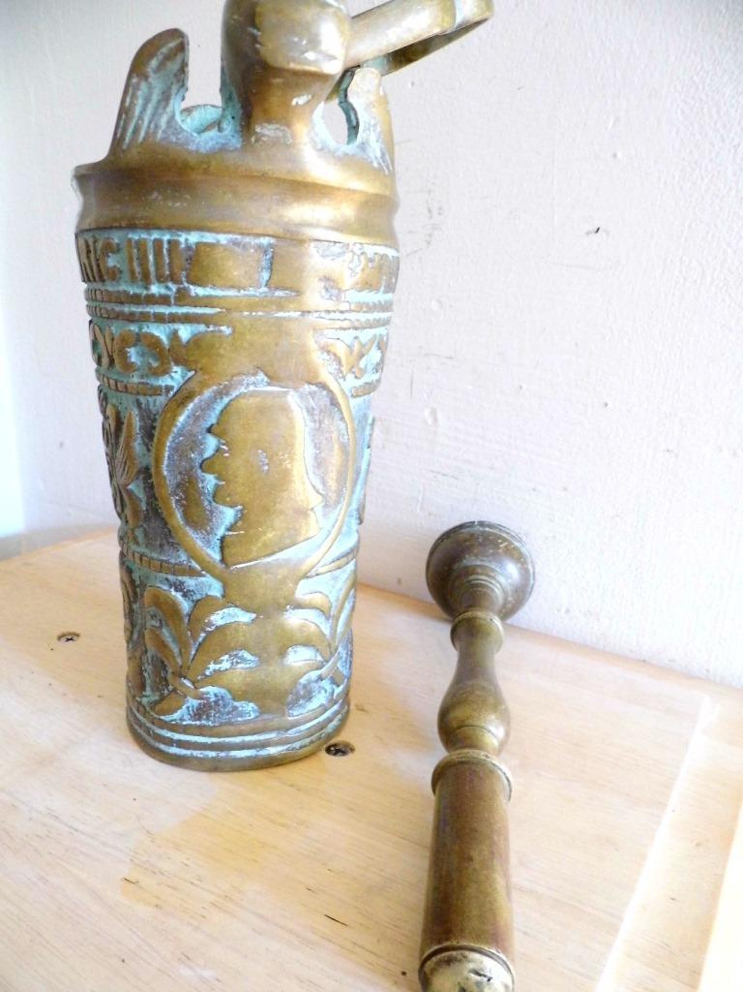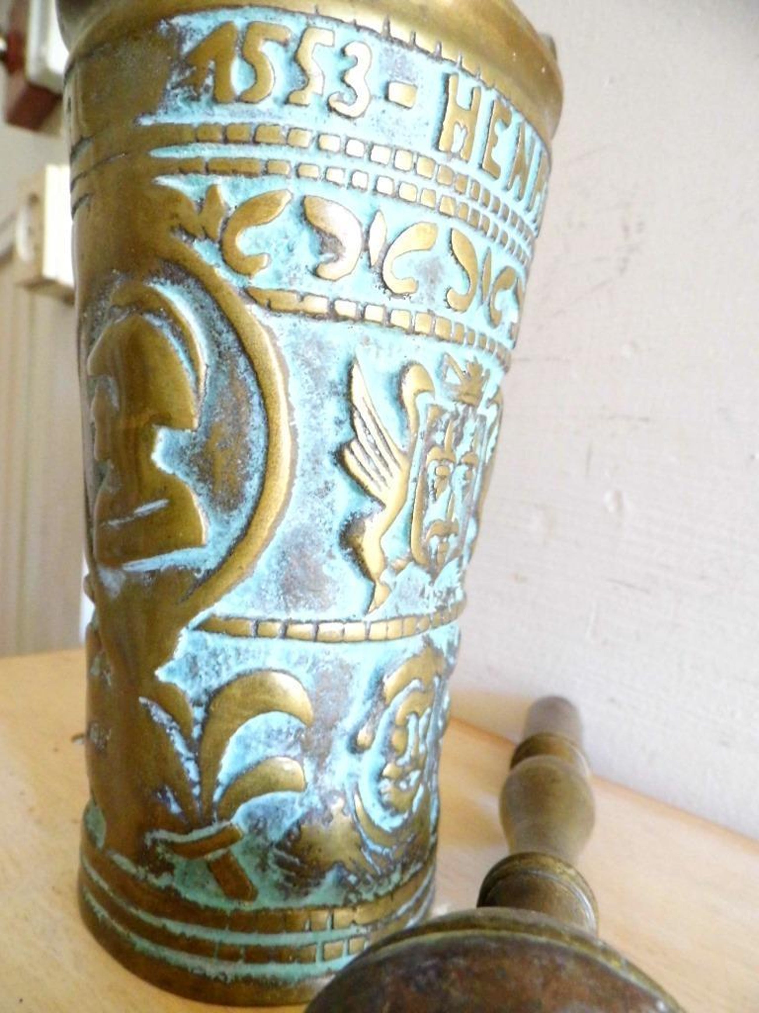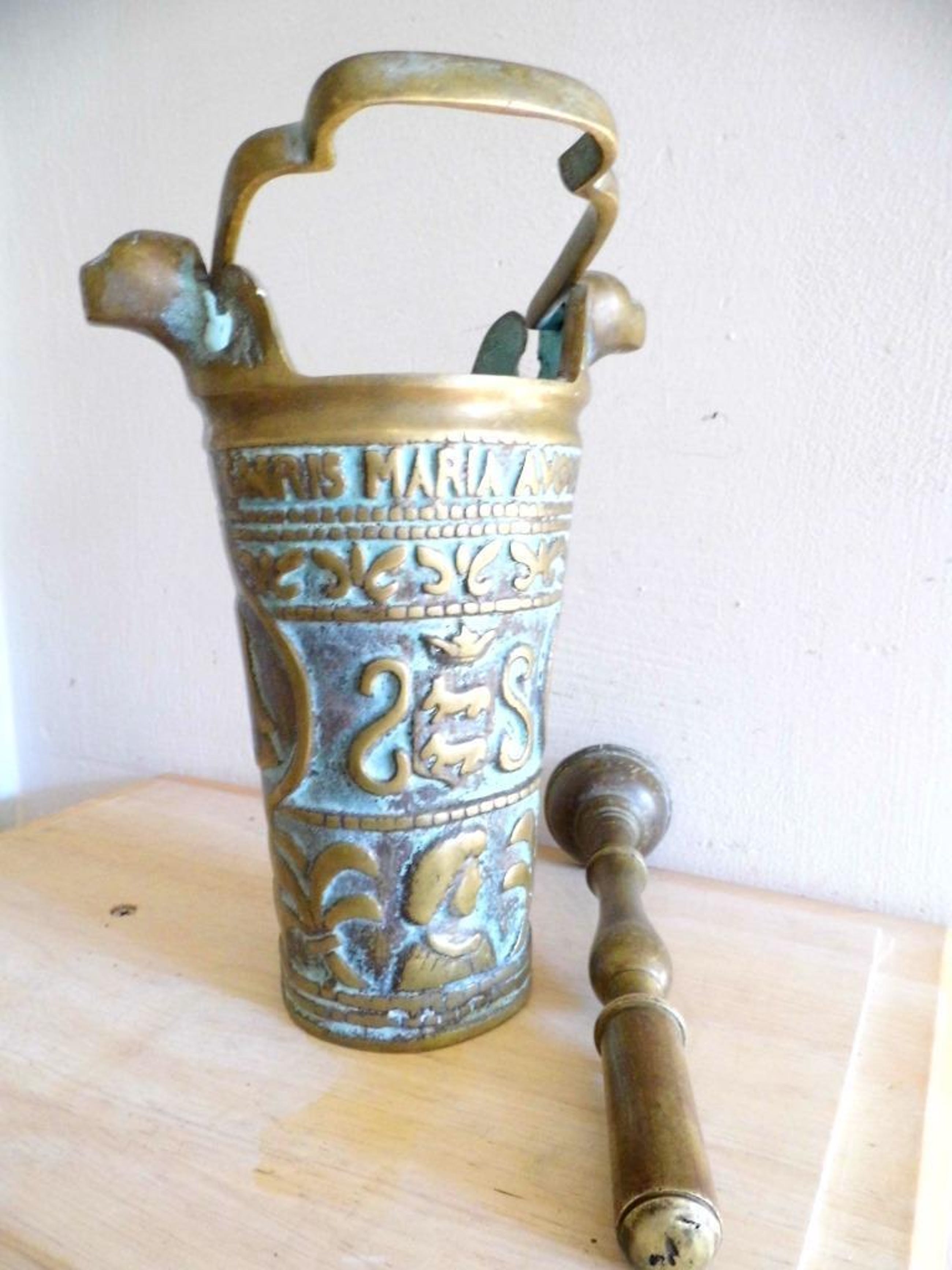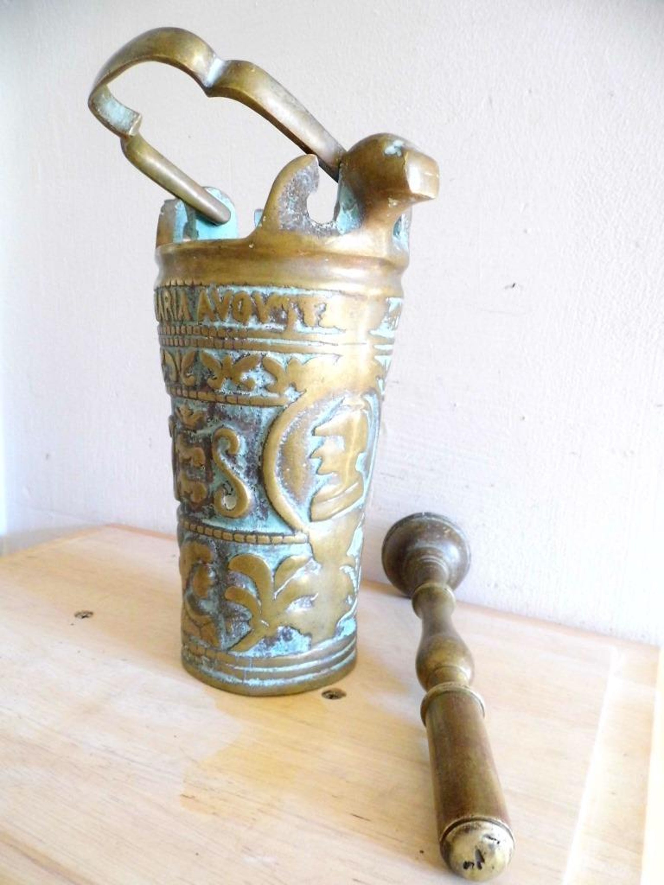 Dit bronzen wijwatervat verkeerd in een goede conditie.