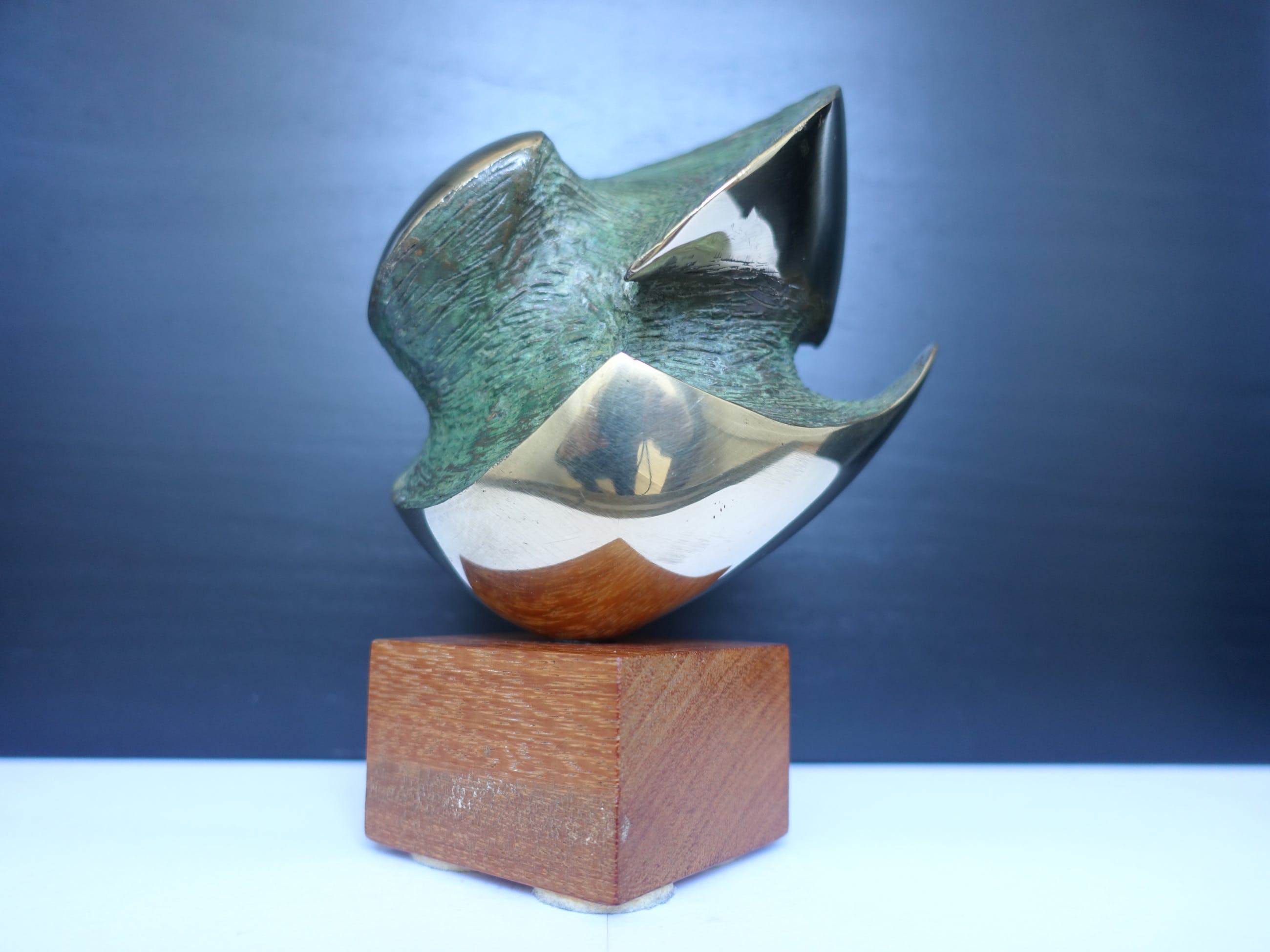 Top beeldje op houten sokkel , helaas is de maker niet bekend.