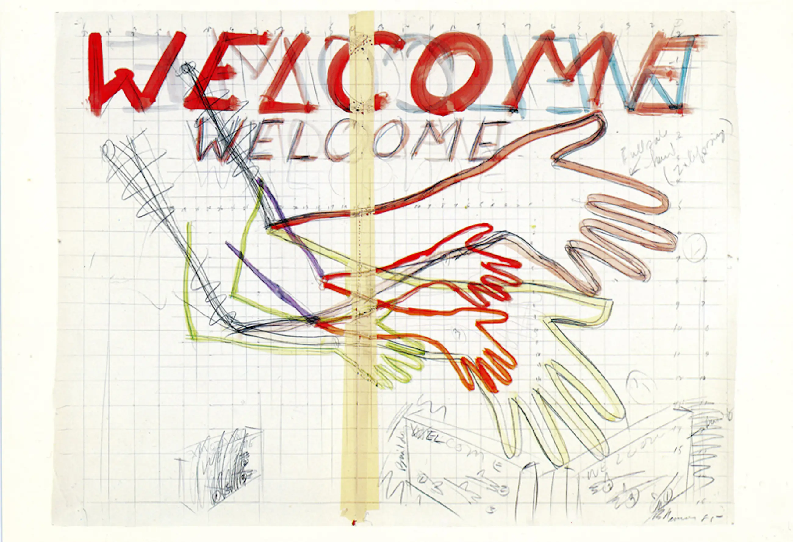 Affiche uitgegeven ter gelegenheid van de tentoonstelling van Bruce Nauman bij Museum Boijmans van Beuningen. Dit is het originele affiche