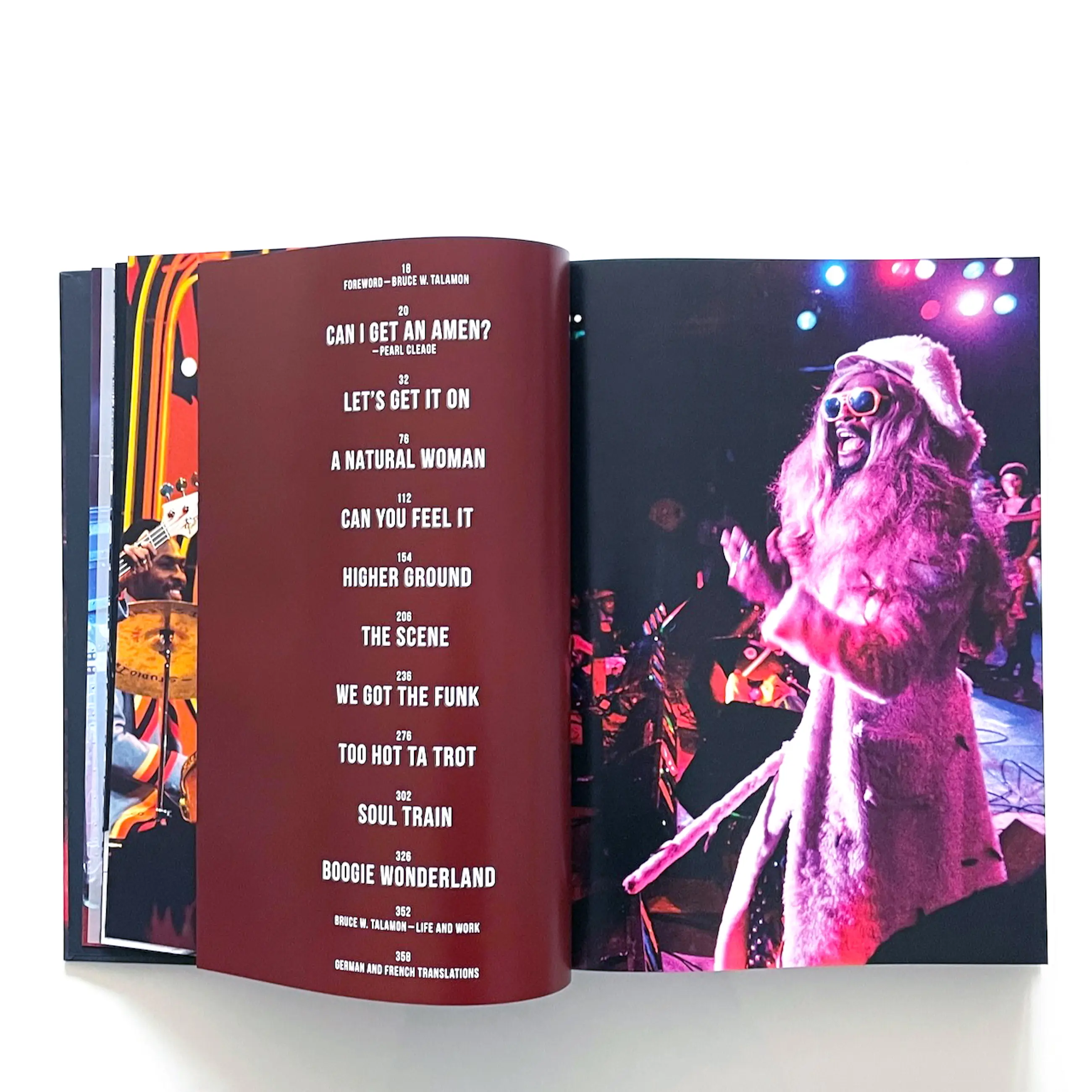 Inclusief bijna 300 foto's uit 1972 tot 1982, worden de uitgebreide Talamon-archieven voor het eerst in alle details gepresenteerd . Of je nu een doorgewinterde soulfan bent of een enthousiaste nieuwkomer in de esthetische magie van de jaren 70, de collectie ademt de aanstekelijke geest van een uitbundig tijdperk. Met iconen als Earth, Wind & Fire; Marvin Gaye; Diana Ross; Parliament-Funkadelic; Al Green; Gil Scott-Heron; James Brown; Barry White; Rick James; Aretha Franklin; de Jackson Five; Donna Summer; en Chaka Khan en vele anderen; er zijn ook verschillende stops in de legendarische Soul Train studio's. Talamon documenteerde een visuele periode in de zwarte muziek die tot ver na middernacht duurde en nooit meer terug zal komen.