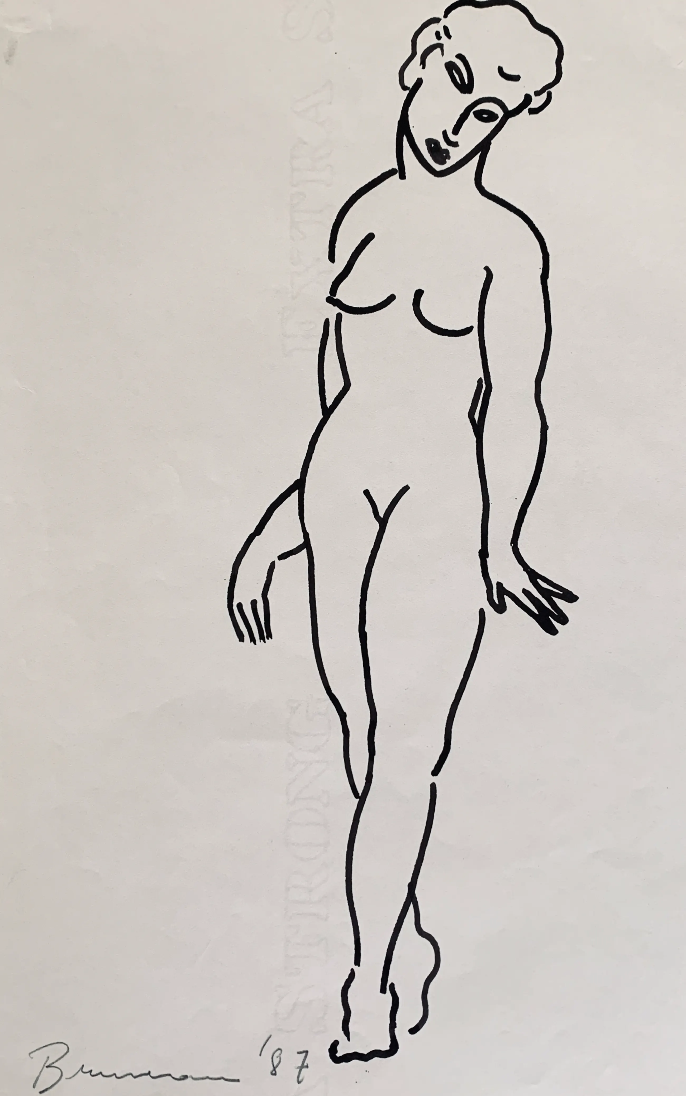 Bruneau (geboren 1957 in Wilrijk, woont en werkt in Berchem) is een enthousiaste veel schilder. Hij werkt graag in reeksen en rond eenvoudige thema's als de hoed of de stoel. Hij heeft een fascinatie met portretten van filosofen, kunstenaars en "karakterkoppen''. Zijn schilder- en tekenstijl refereert aan strips, cartoons en soms Keith Haring. Wat Bruneau maakt is nooit zwartgallig of negativistisch. Als schilder zoekt hij overal de positieve noot. Humor is nooit veraf. Soms tekent hij meer dan hij schildert. Trefzeker en scherp. Hij wijzigt, overschildert, werkt in lagen.