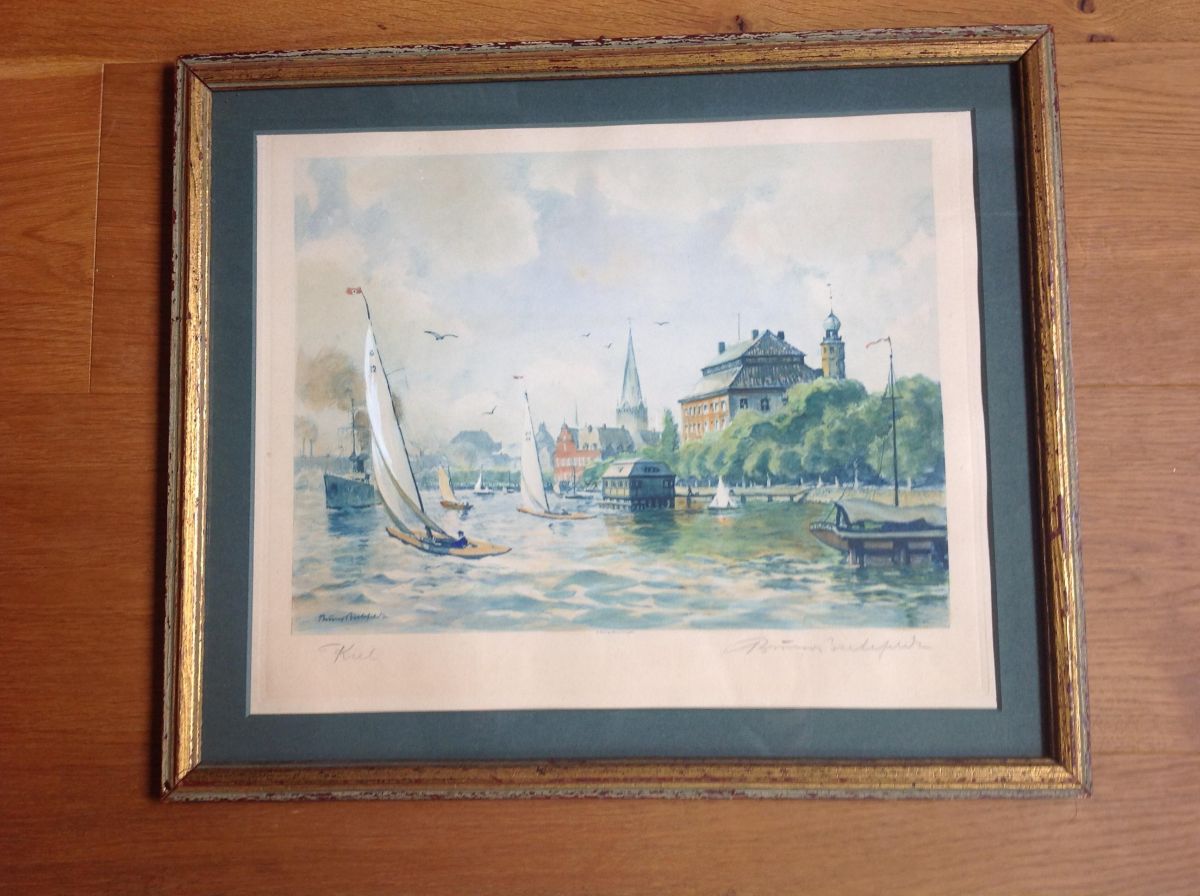 Lithographie von Bruno Bielefeldaus den 30ziger Jahren, sehr schönes Blatt, gut gerahmt, l. u. im Stein signiert: Bruno Bielefeld, auf dem Rand l.u.handschriftlich bezeichnet - Kiel - und r.u. signiert mittig kleingedruckt: O. Felsing, Berlin-Ch. gedr. Maße : 40 X 47,5 cm mit Rahmen Versand in Deutschland: EURO -12,00 -