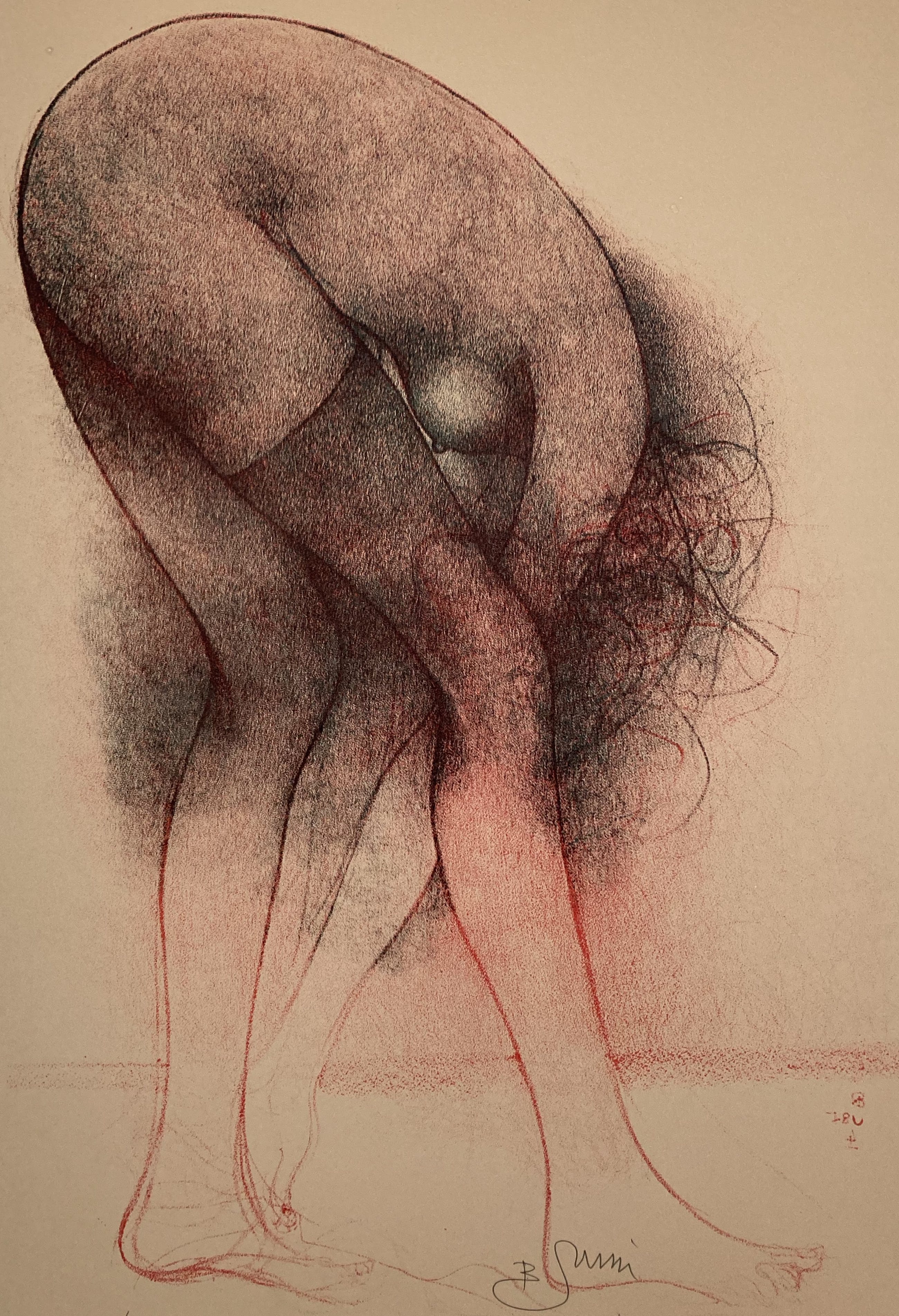 Prachtige, erotische, surrealistische, gesigneerde en genummerde originele kleurenlitho van de internationaal bekende kunstenaar, geboren in Italië, die studeerde bij Georg Gresko en Paul Wunderlich aan de Staatsuniversiteit voor Schone Kunsten in Hamburg en sindsdien in Hamburg en later in Hannover woont