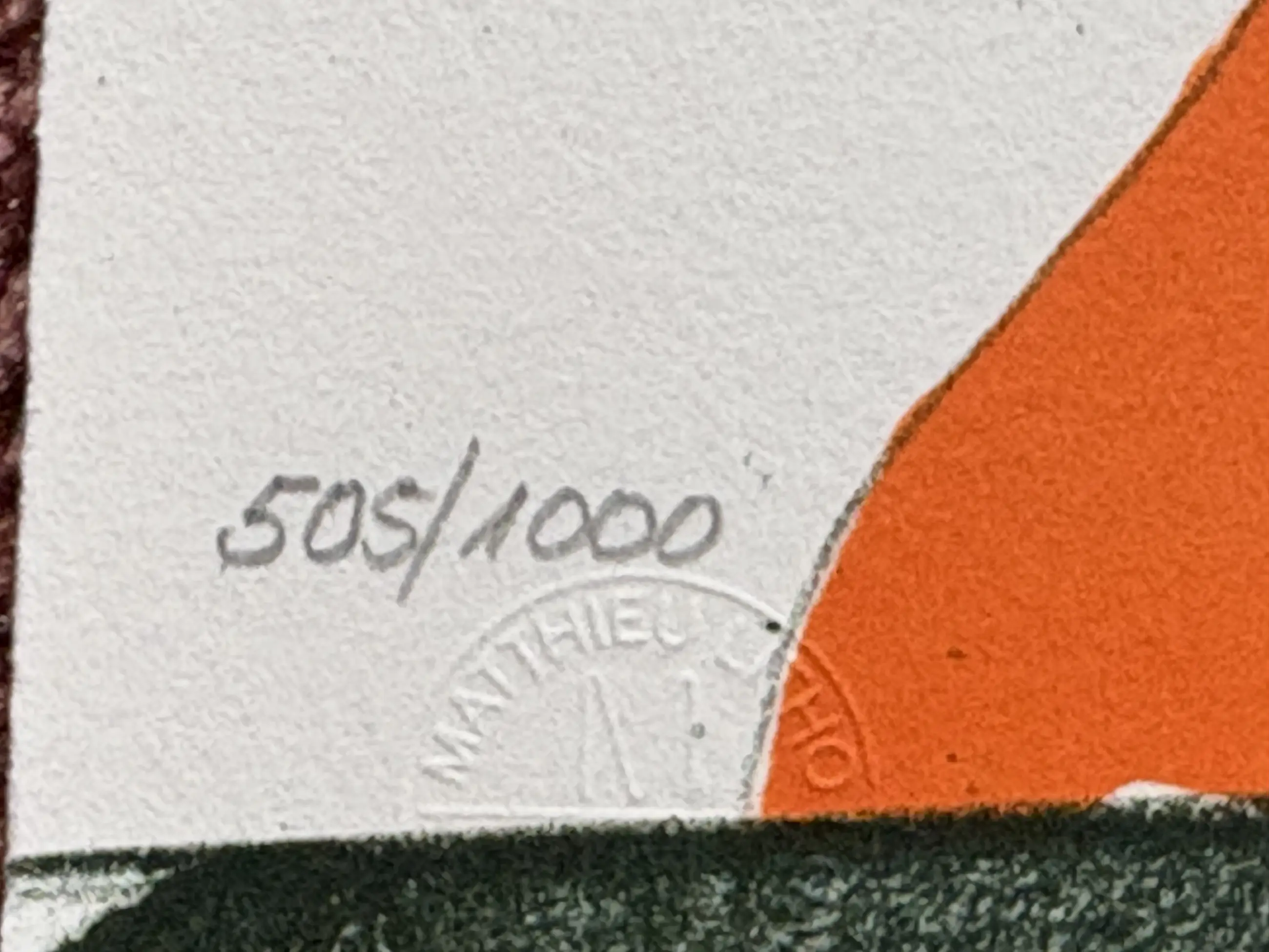 Originele lithografie op geschept papier. Formaat: ca. 60 x 78 cm. In nieuwstaat (zonder lijst). Genummerd: 505/1000 en handgesigneerd: Bruno Bruni.