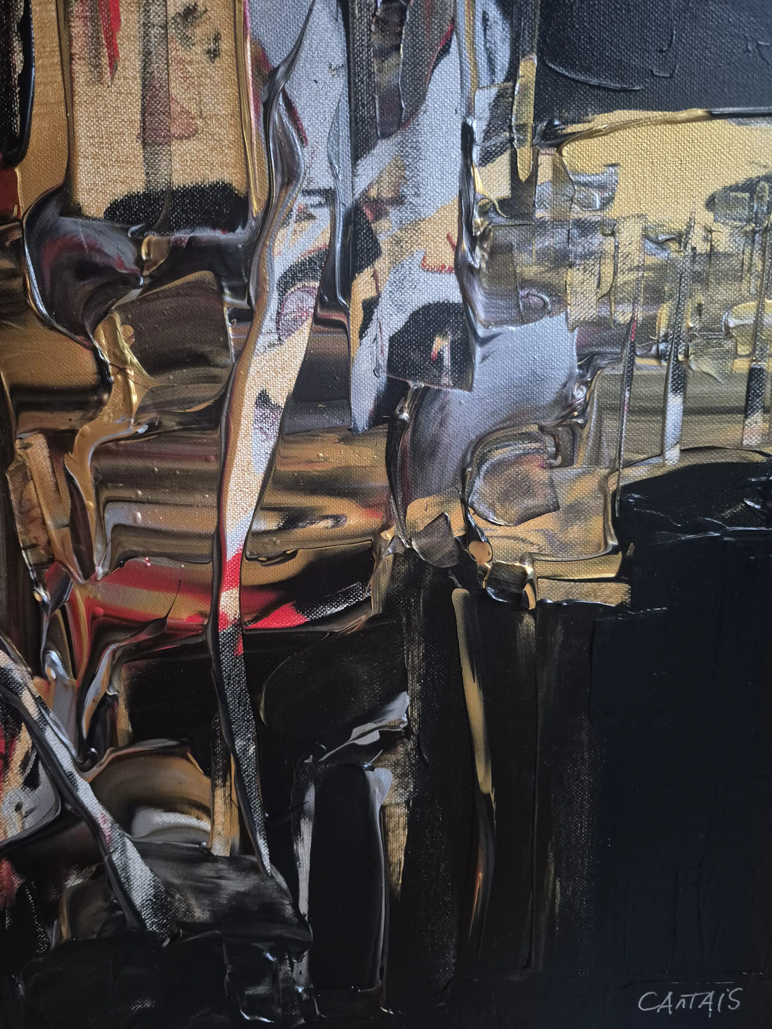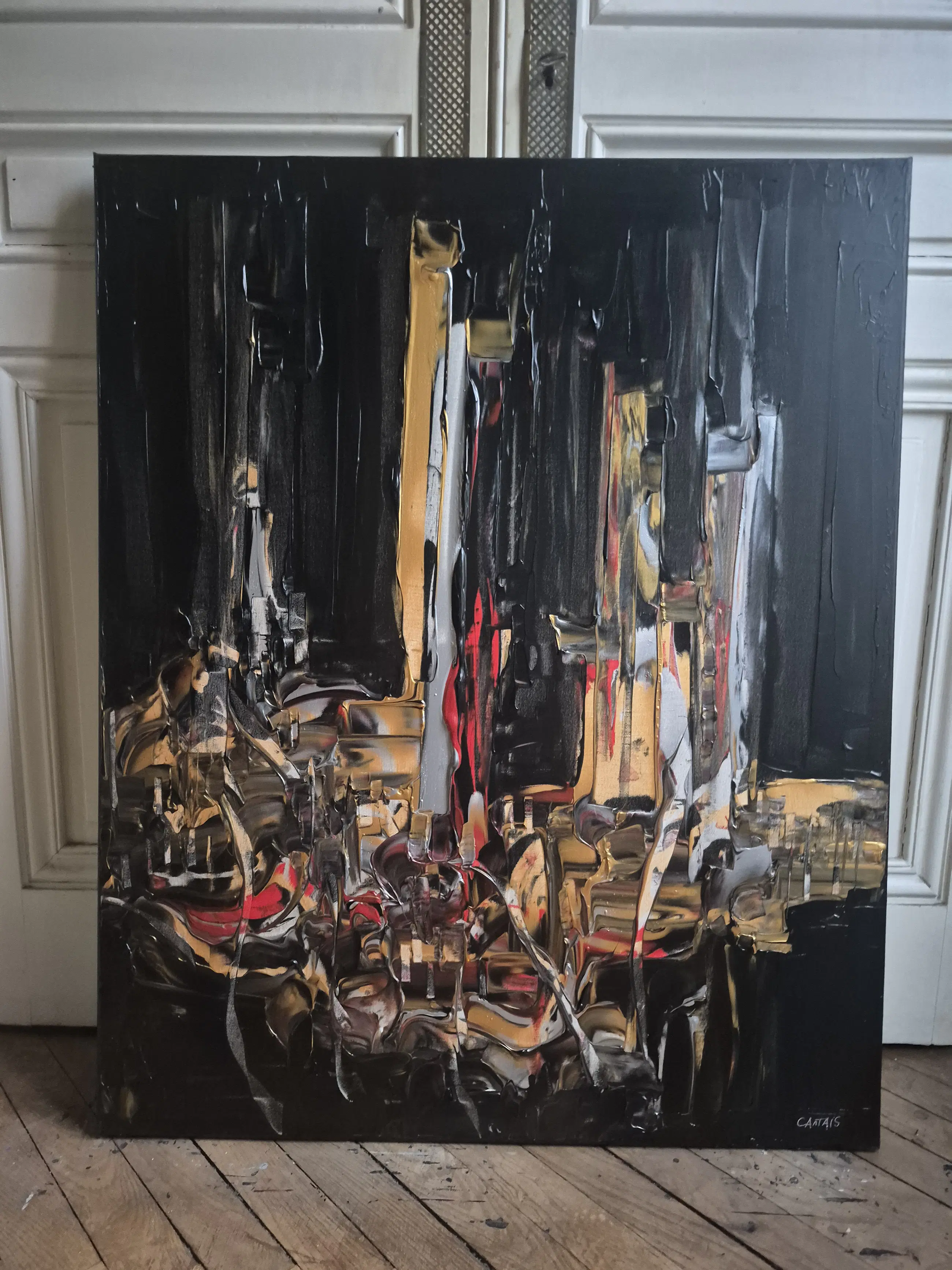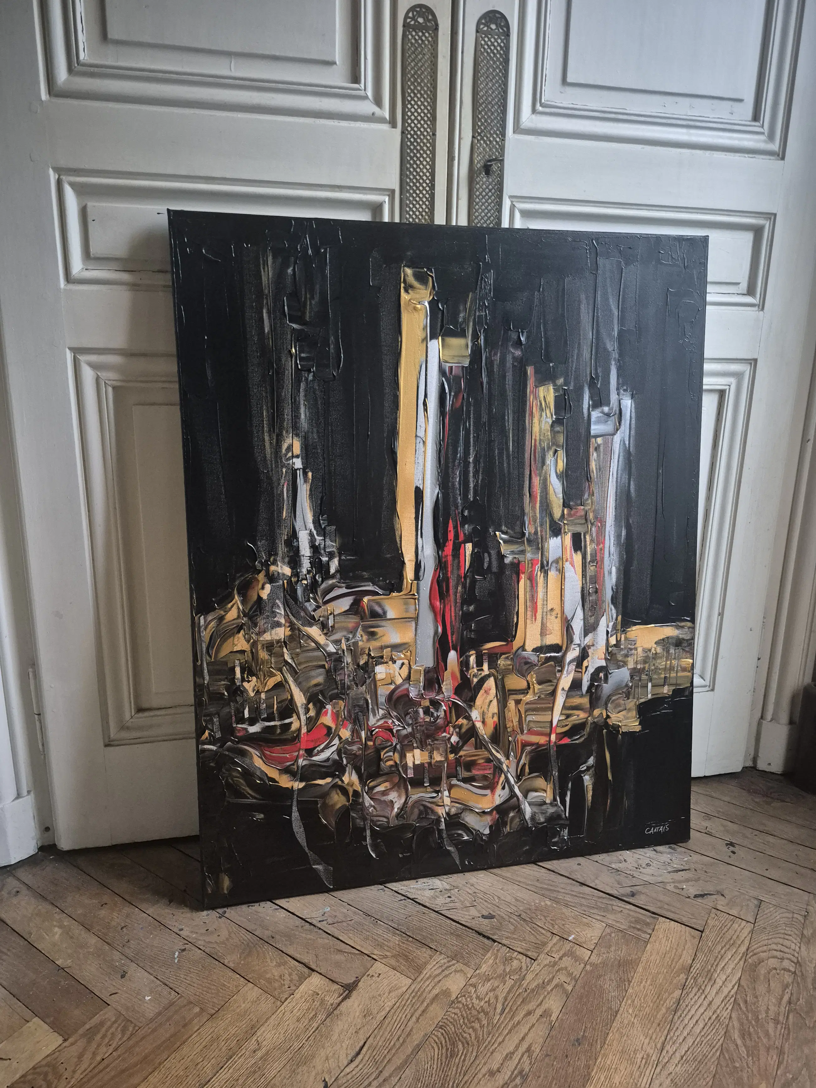 Olieverf op canvas op spieraam. 81x100x2,5 cm 2023 Randen zwart geverfd Gelakt Onderteken en medeonderteken op de achterzijde Met certificaat Kunstenaar vermeld op Artprice en Drouot.