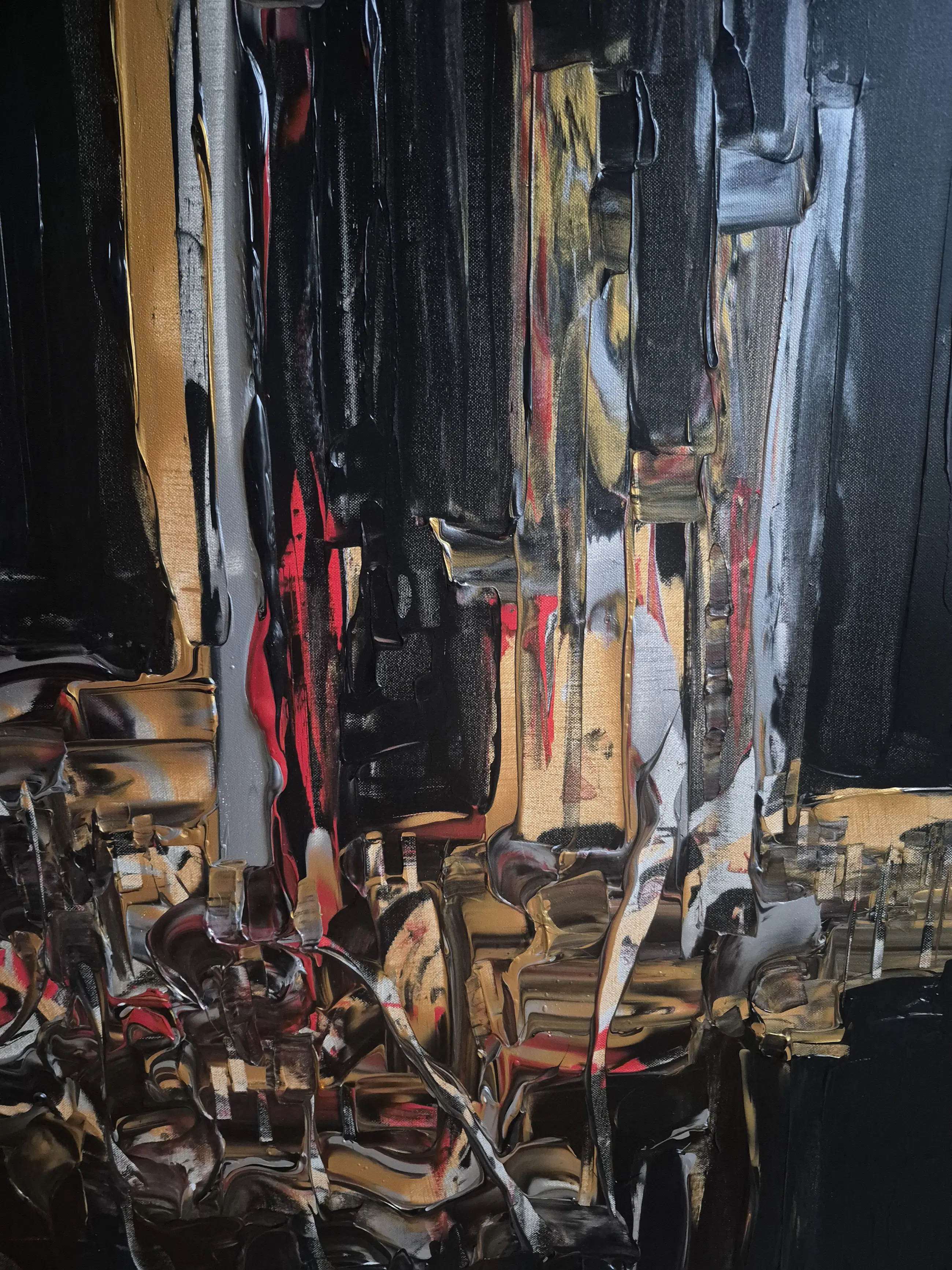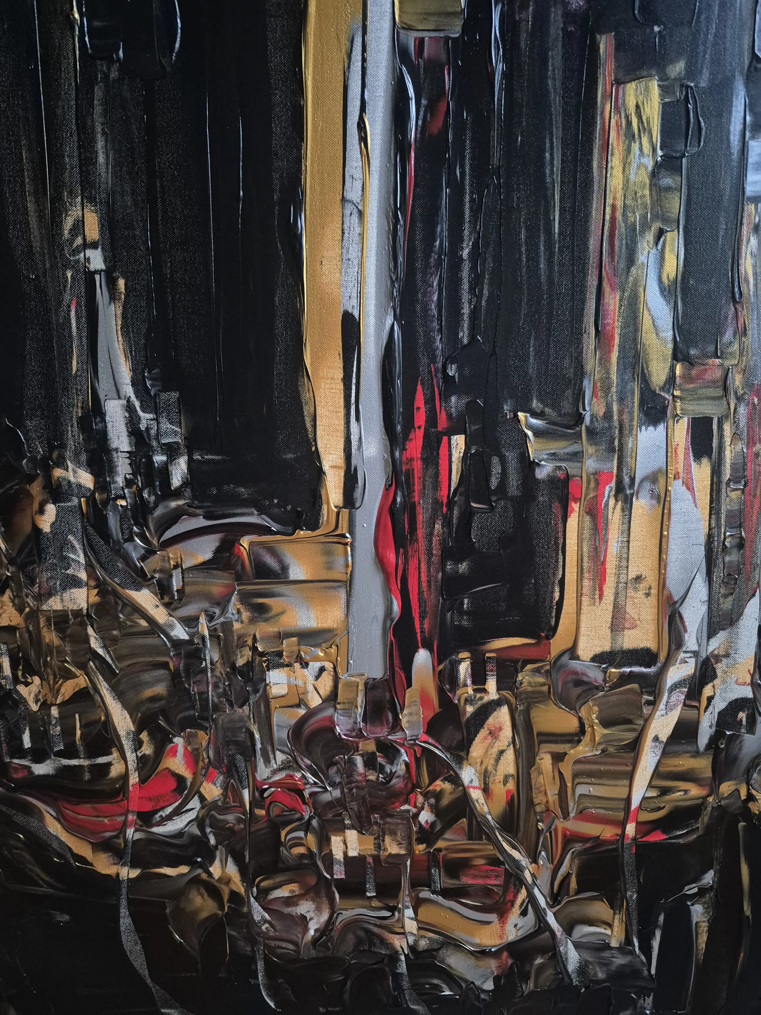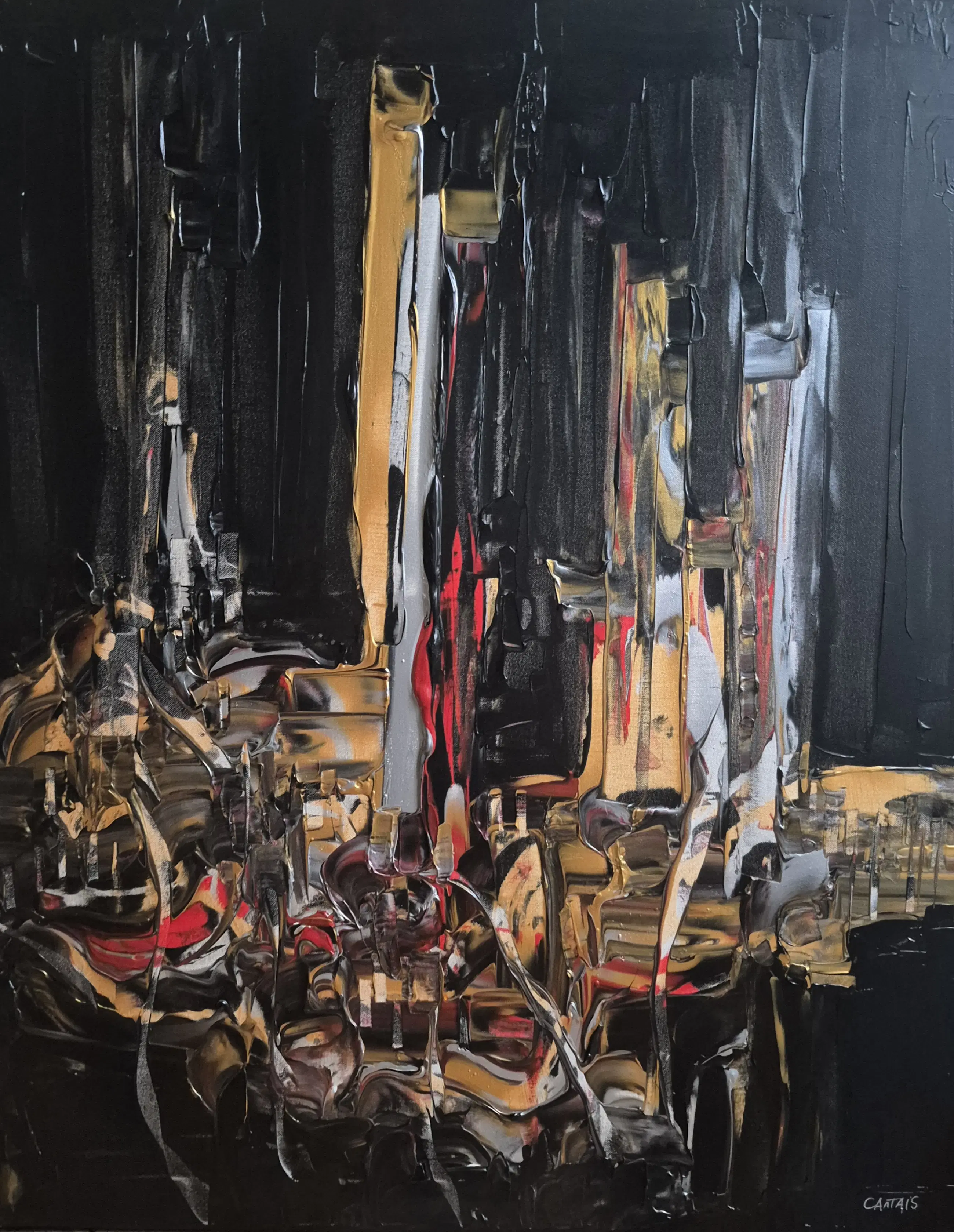 Olieverf op canvas op spieraam. 81x100x2,5 cm 2023 Randen zwart geverfd Gelakt Onderteken en medeonderteken op de achterzijde Met certificaat Kunstenaar vermeld op Artprice en Drouot.