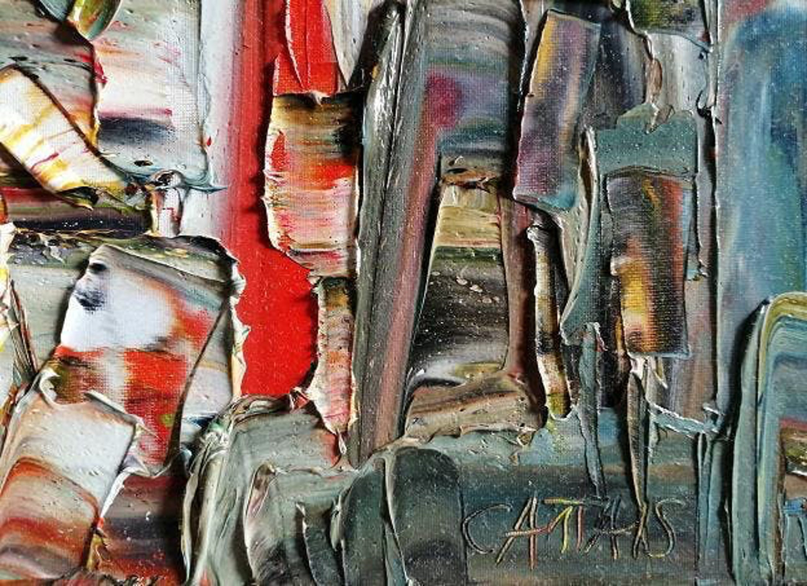 Het schilderij is in zeer goede staat. Een abstract expressionistisch werk van Cantais.