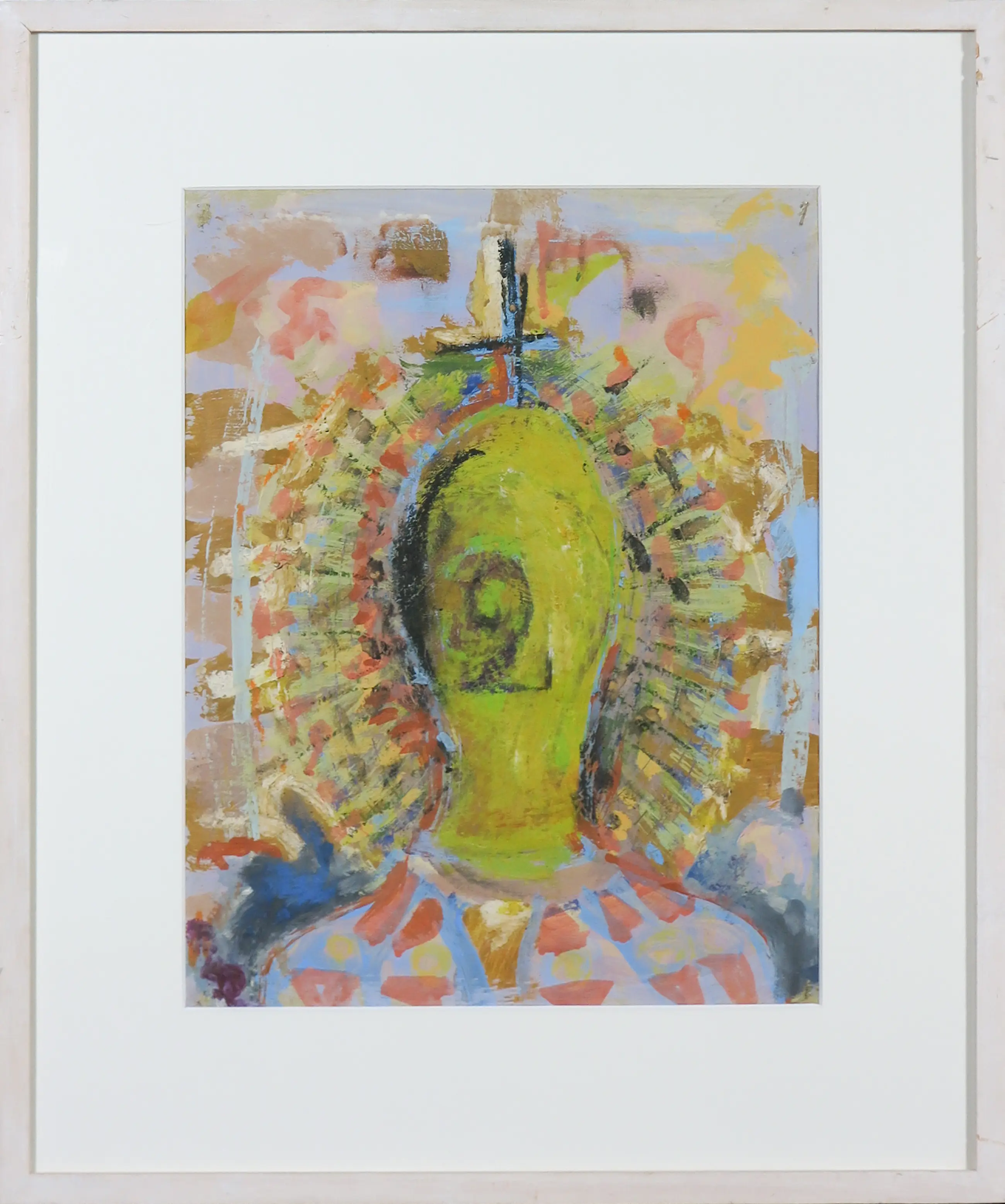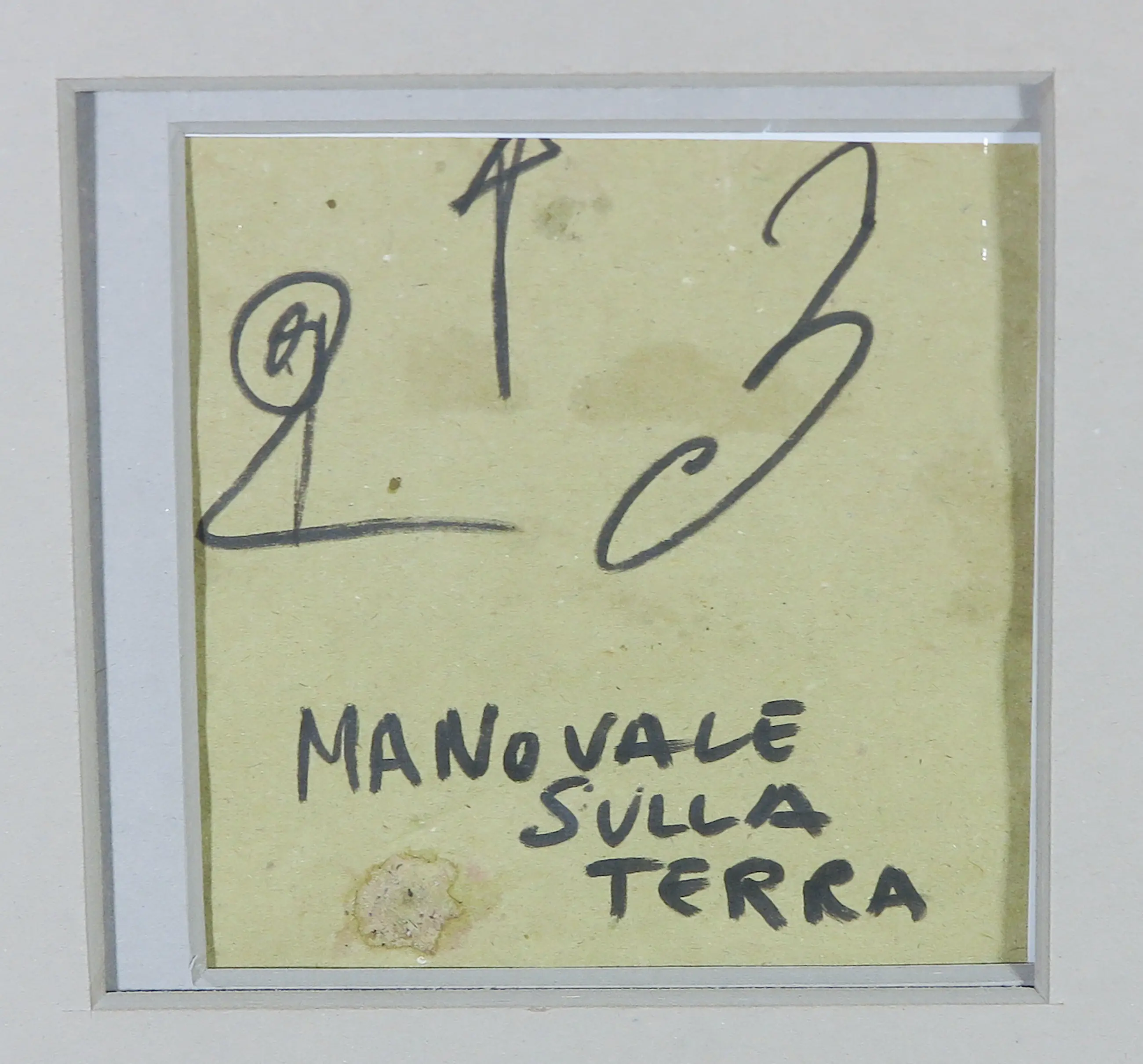 Uniek werk op papier door de Italiaanse kunstenaar Bruno Ceccobelli, getiteld Manovale sulla terra. Het blad is aan de achterzijde gesigneerd (uitsparing in lijst gemaakt).
