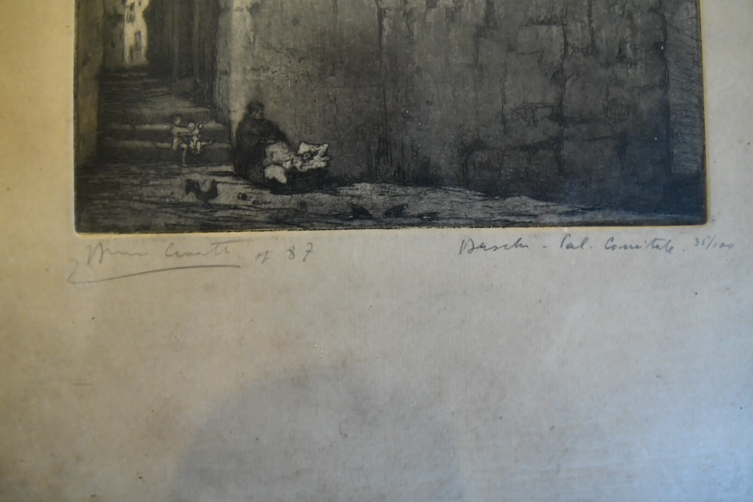Deze ets heb ik gevonden op de zolder na overlijden van mijn vader. Onder de handtekening van de kunstenaar staat ook een kleine stempel, maar deze kan ik niet lezen (zie foto) Verzending naar Nederland is mogelijk voor 8 euro