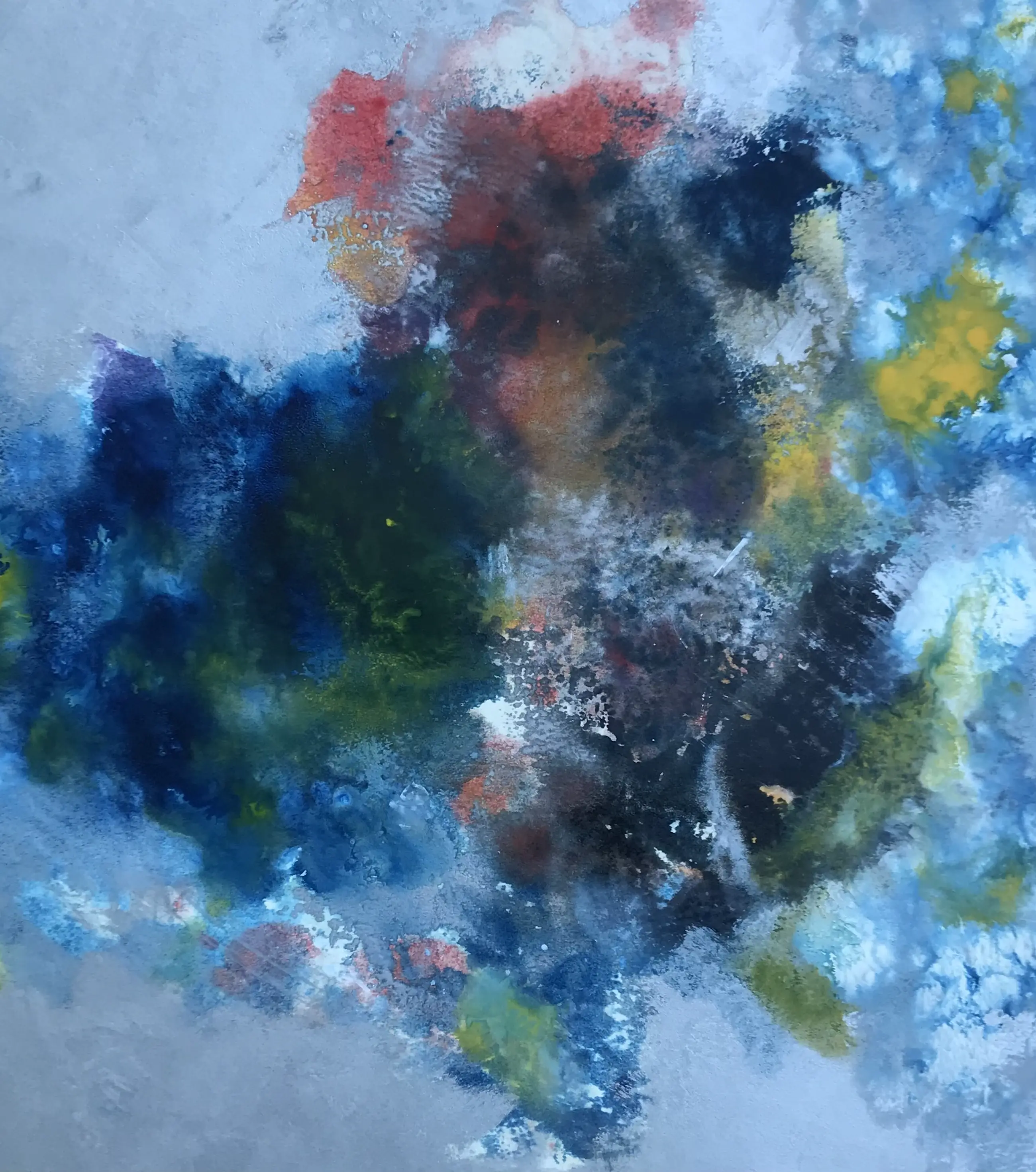Olieverf op papier, gemengde techniek.