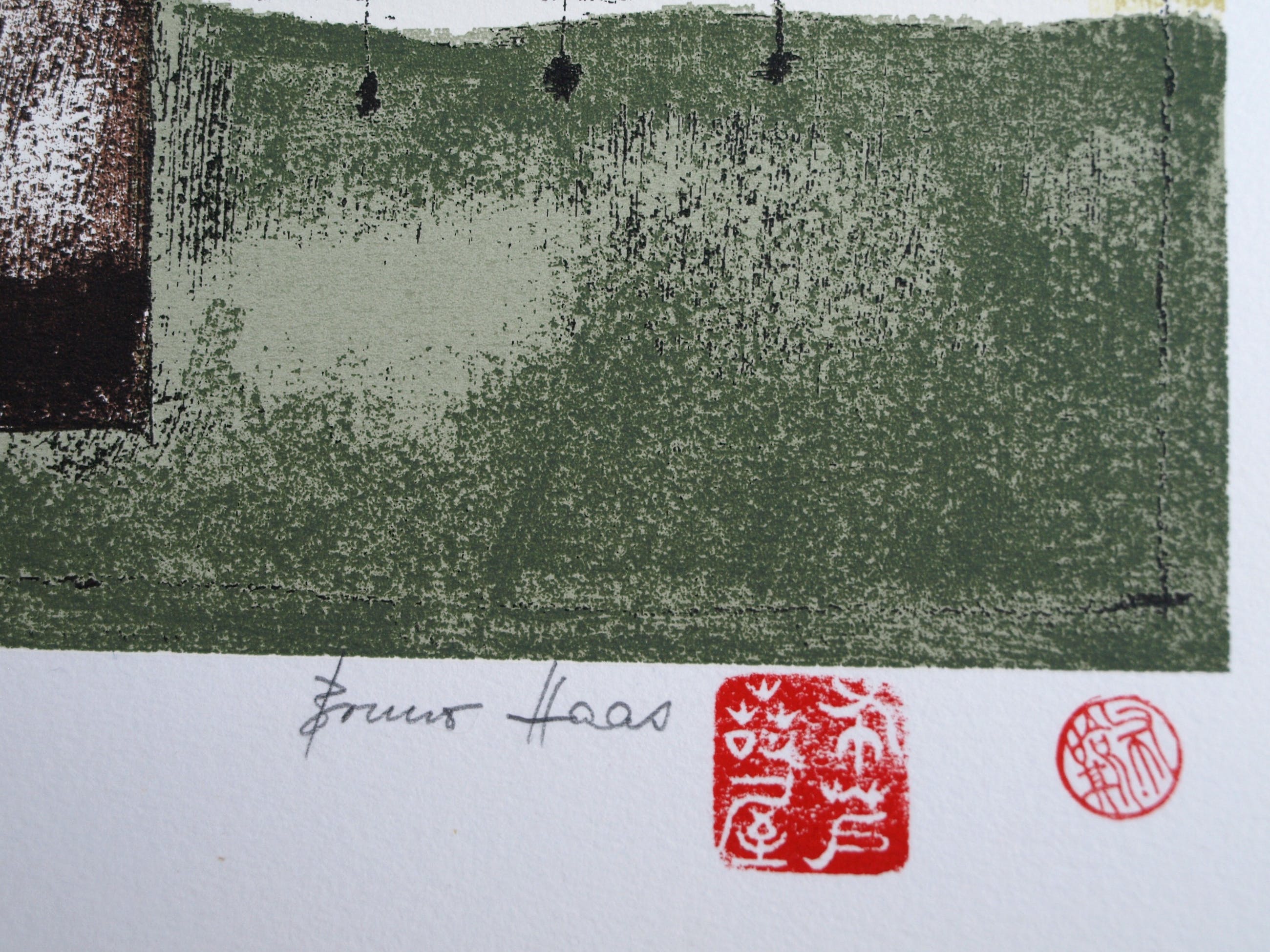 Een map met 3 zeefdrukken op geschept papier van de Duitse kunstenaar Bruno Haas (1939).