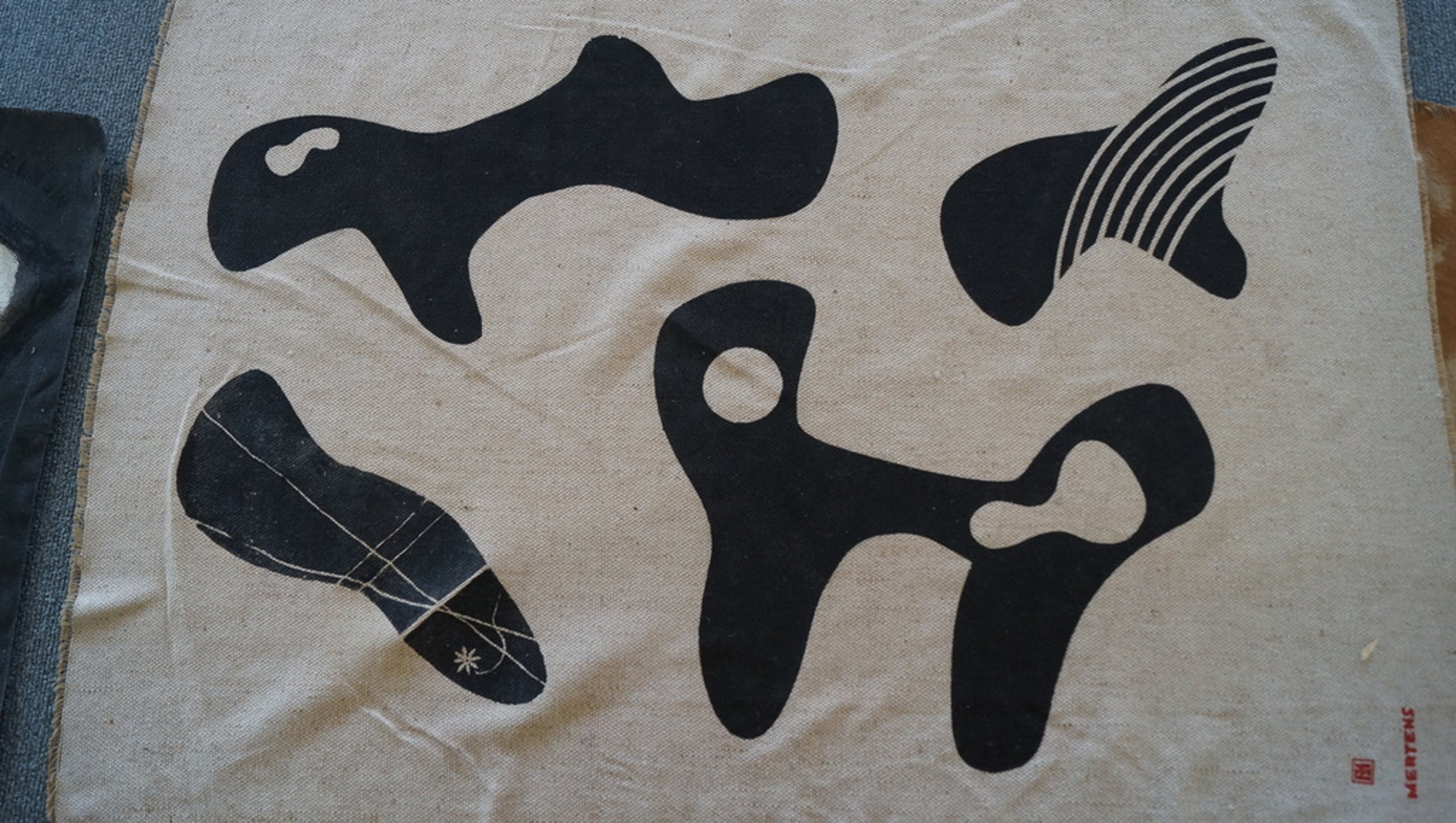 Pintografie. Gedrukt op jute. Proces ontwikkeld door Bruno Mertens.