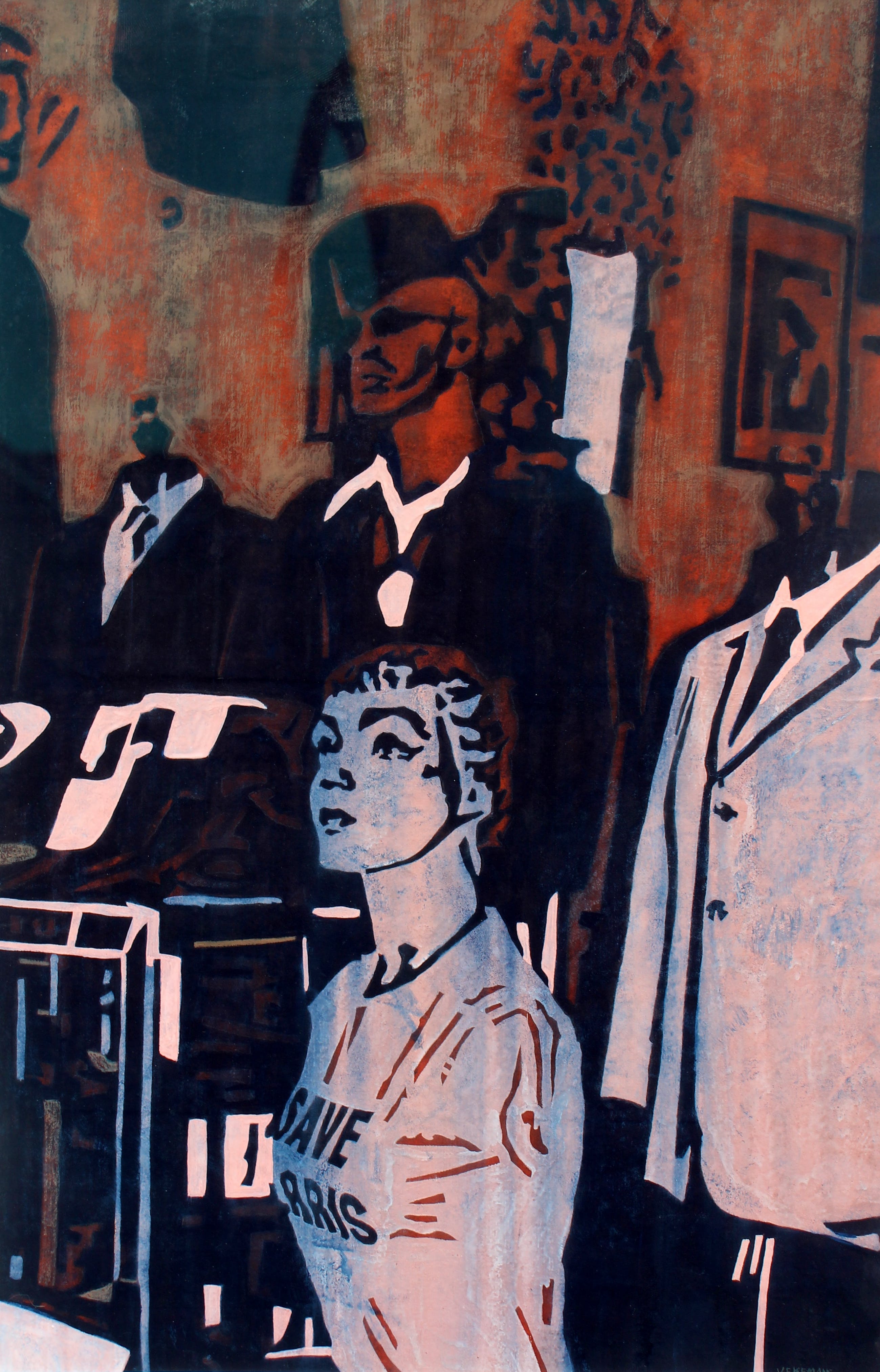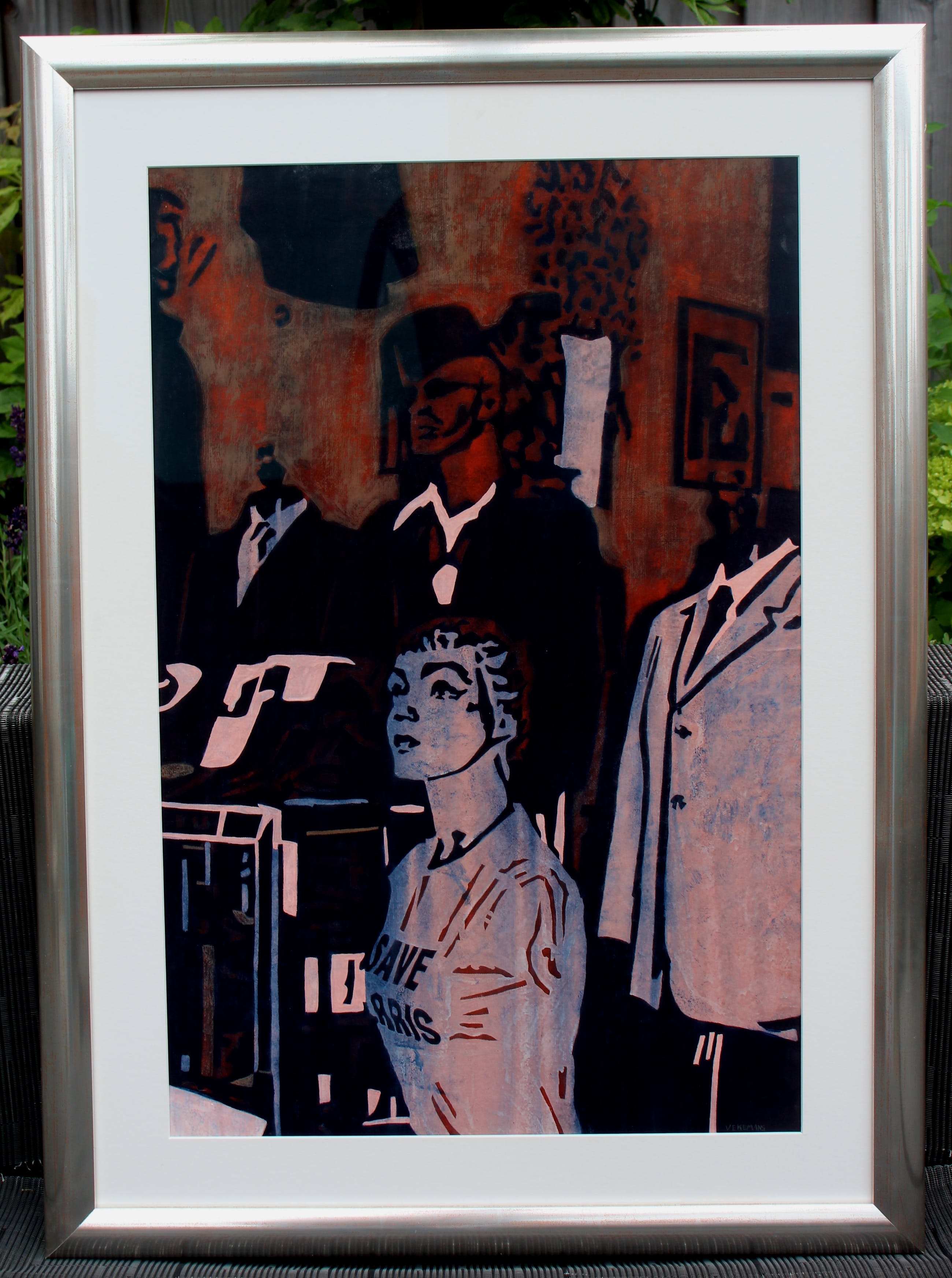 Ingelijste gouache van Bruno Vekemans(Prachtige lijst met museumglas). Voorstelling van mannequins in een etalage. Afmetingen incl lijst: H82 x b59.5cm. Afmetingen voorstelling: H65 x b42.5cm. Het werk is rechts onderaan gesigneerd door de kunstenaar. De authenticiteit van het aangeboden werk wordt volledig gegarandeerd. Een certificaat van echtheid kan, op aanvraag, worden gemaild.