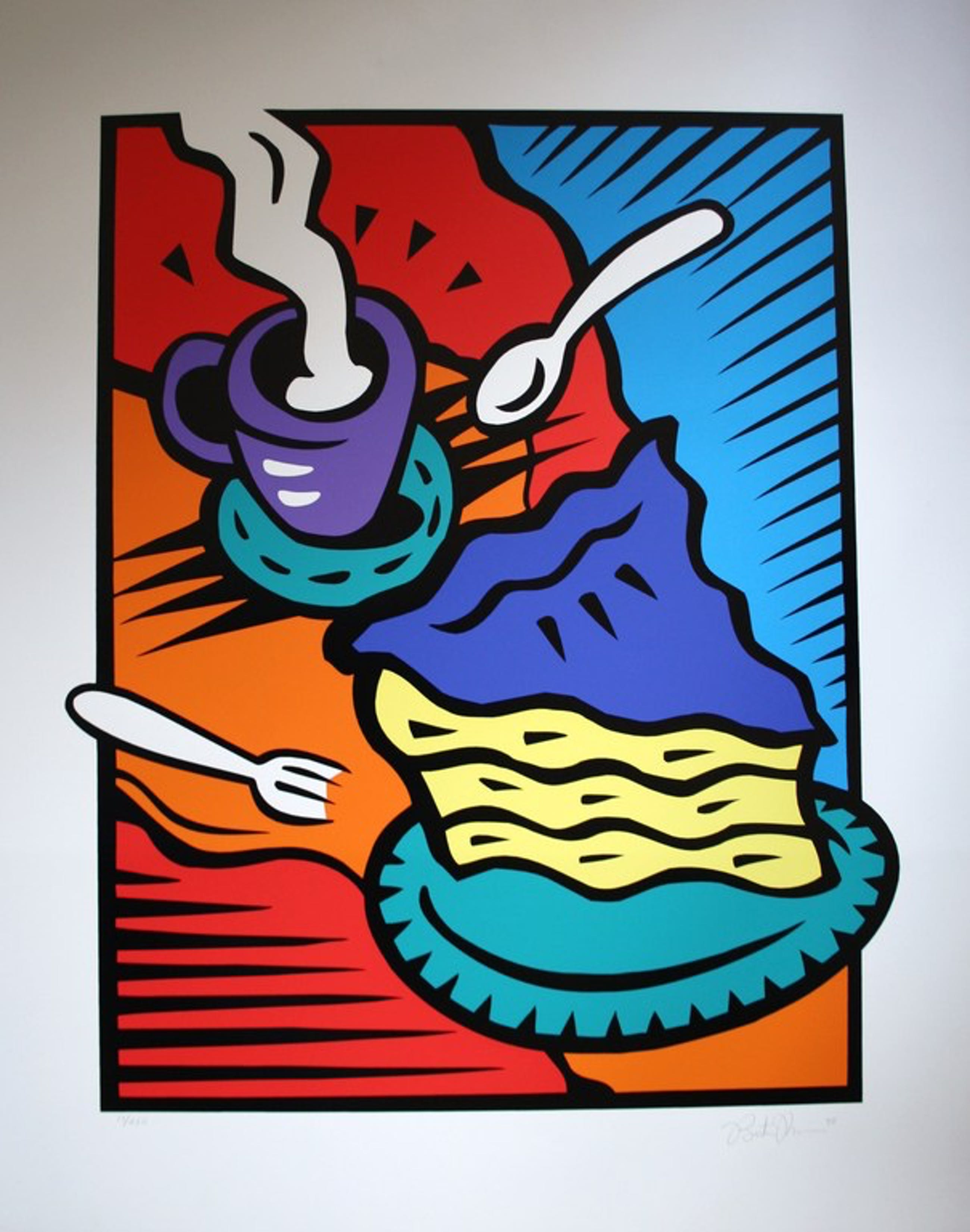 Burton Morris (1964) is een bekende POP-Art kunstenaar en verbeeld vooral de alledaagse zaken in mooie kleurrijke werken. Dit grote werk is bekend onder de tittel Afternoon Delight.