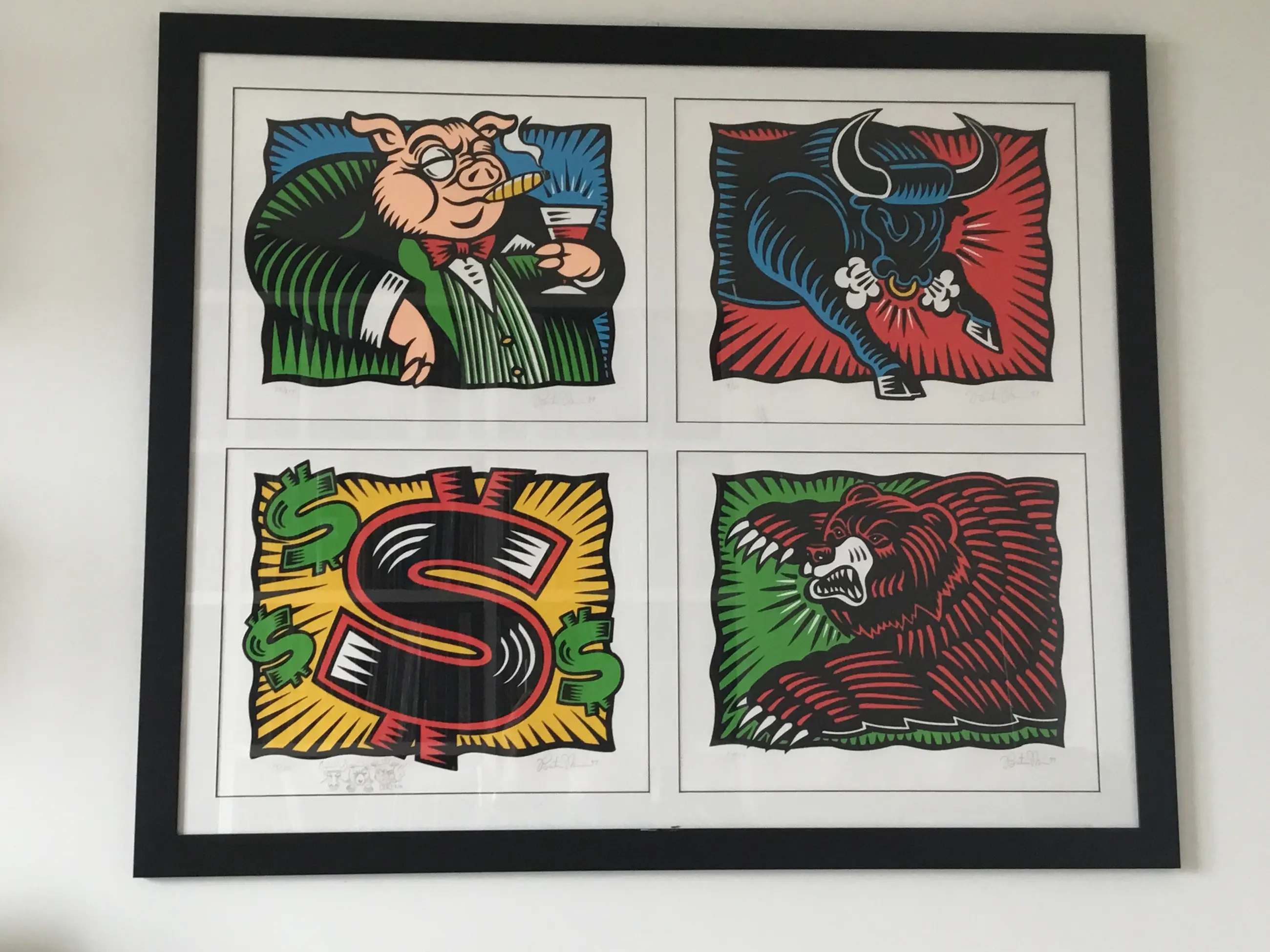 Burton Morris (1964 usa) Herd ont the street suite 4 zeefdrukken genummerd en gesigneerd door de kunstenaar 3zeefdrukken oplage 50 1zeefdruk oplage 325 De zeefdrukken zijn gemaakt op hoogwaardig kunstdrukpapier (lenox 100% katoenen papier Conditie van het kunstwerk exellent