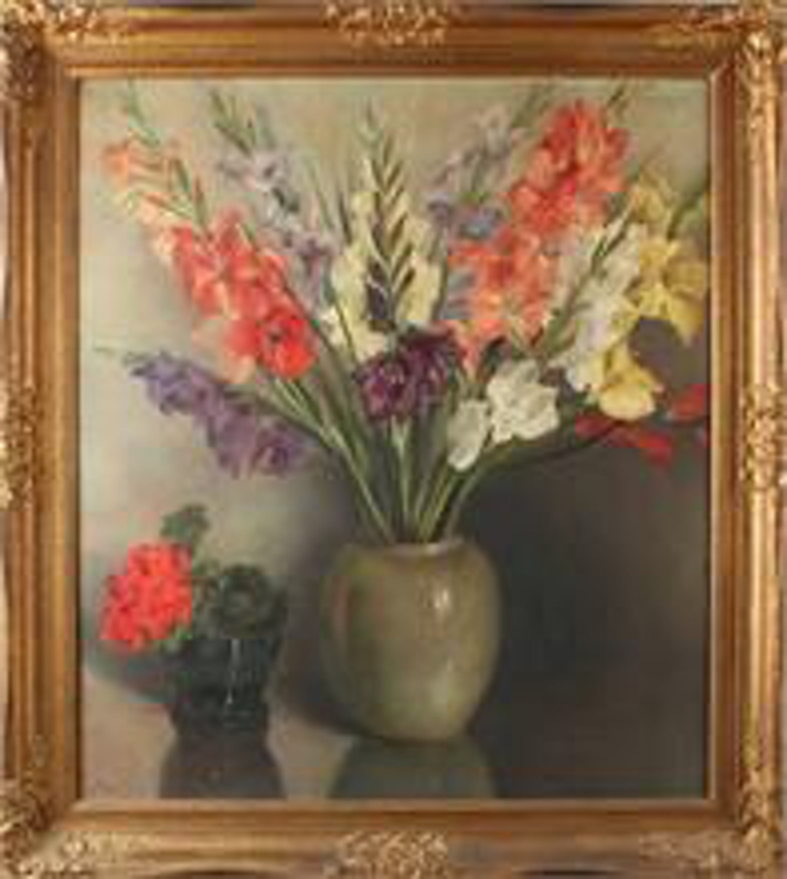 Het schilderij is van medio jaren 30. Stilleven met gladiolen
