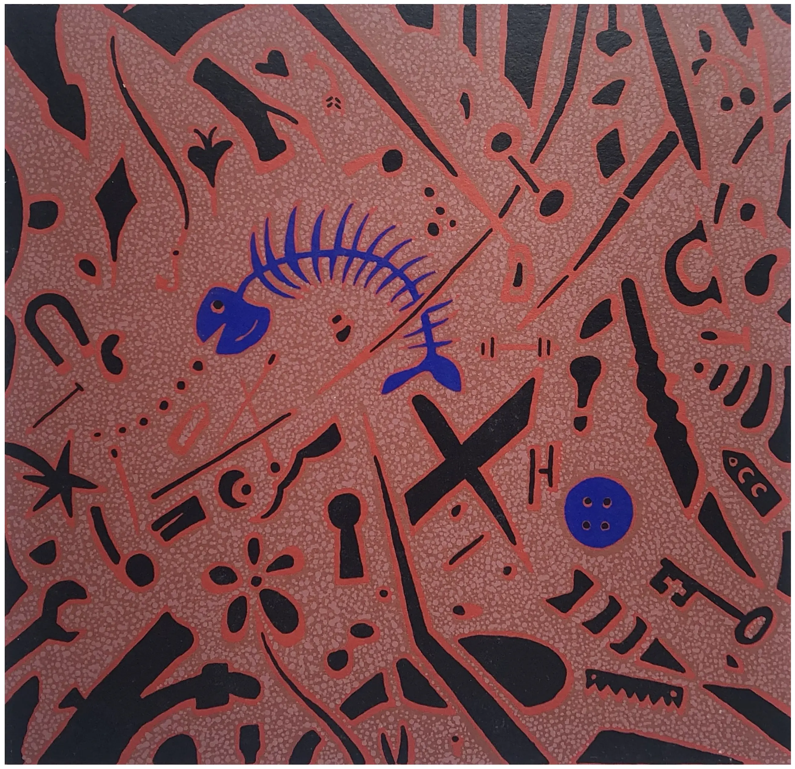 Zeefdruk van Calvin Christiaan, 'Fish & Button' (1994).