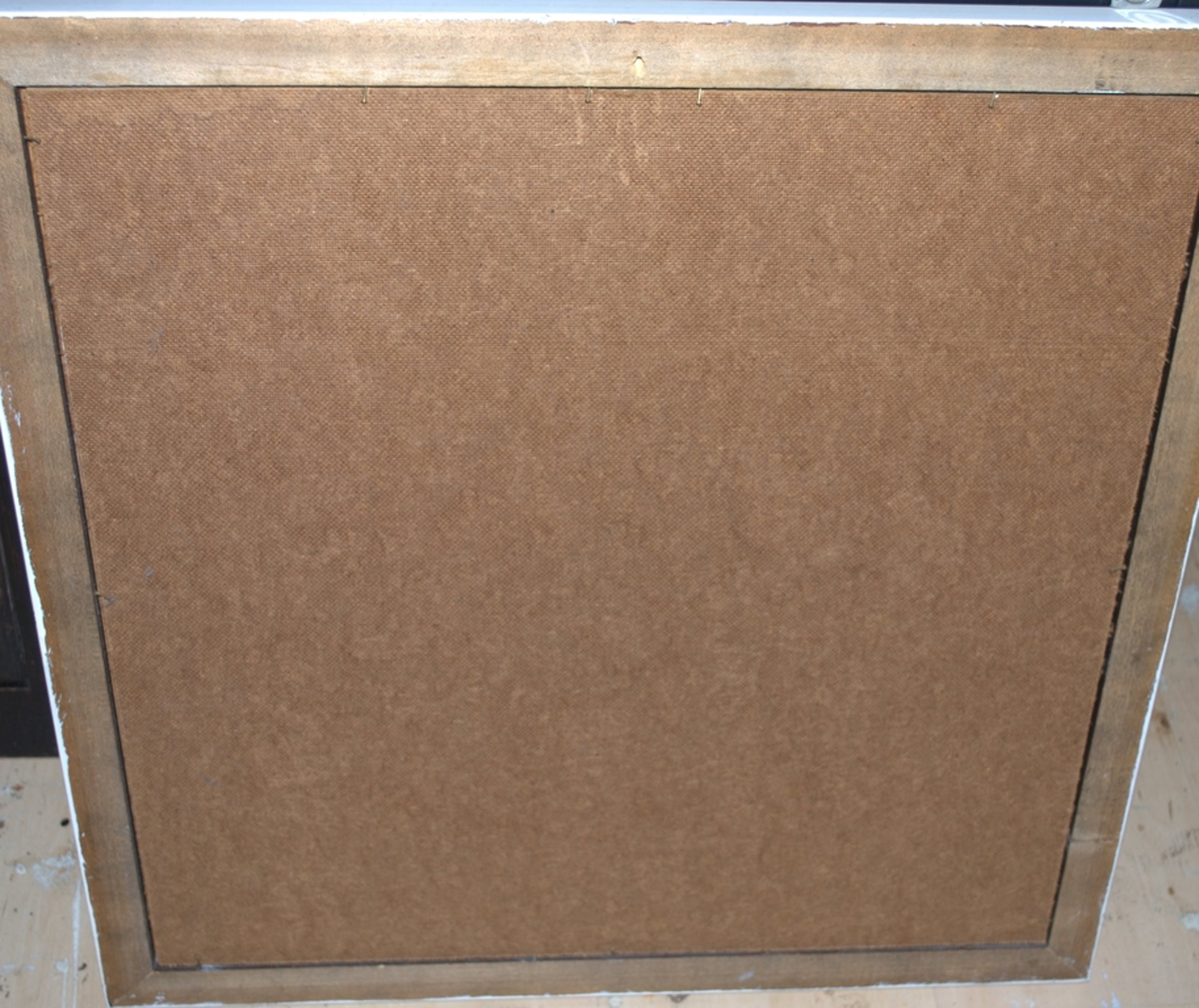 Achter glas, in een houten lijst met lichte schade, 56x56 cm.