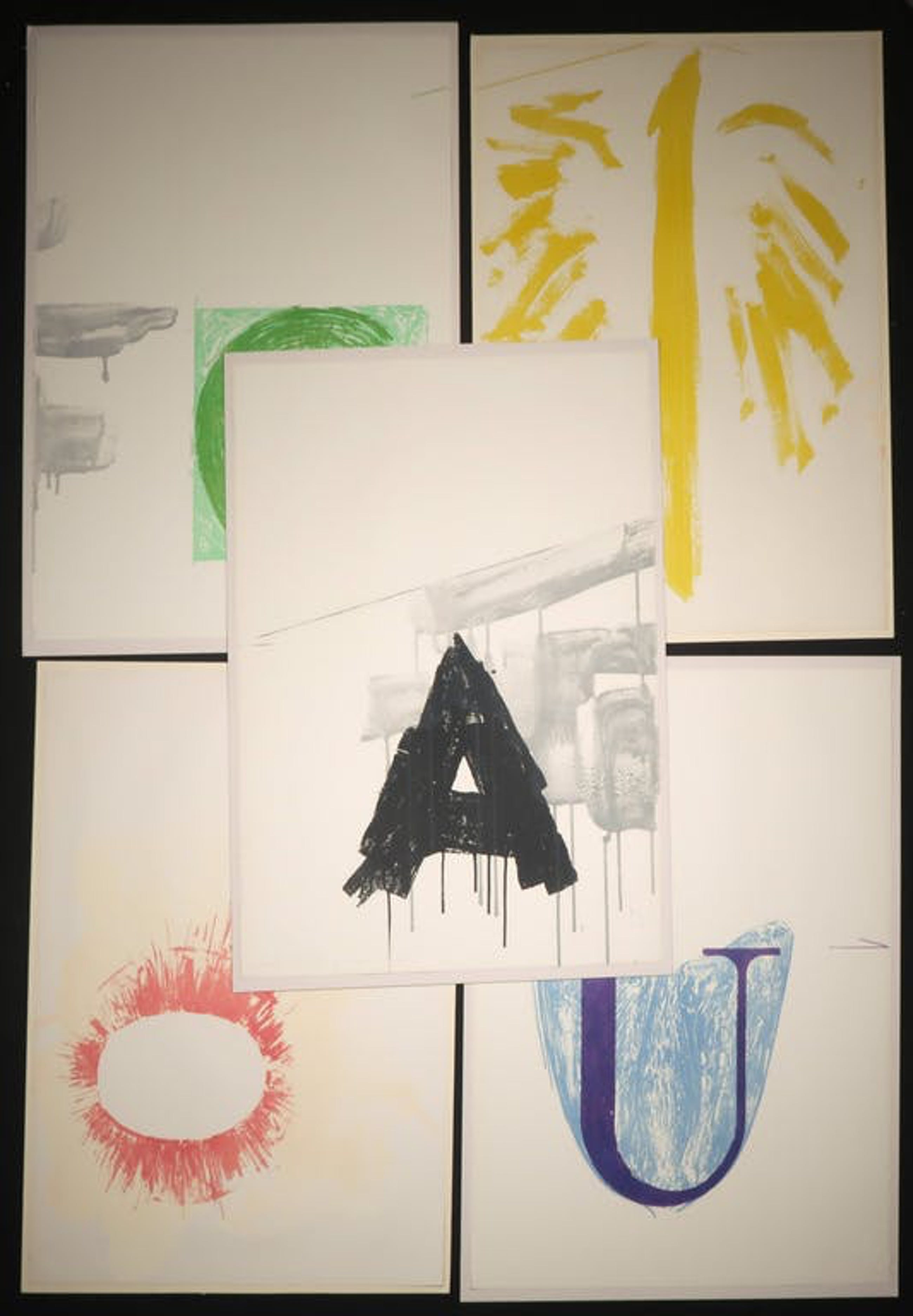 Afmetingen onderblad:�Blad "A", "E", "U": 80�cm x 60�cm. Blad�"I", "O": 78 cm x 58 cm (Beeld: 76,5 cm x 56,5 cm)�