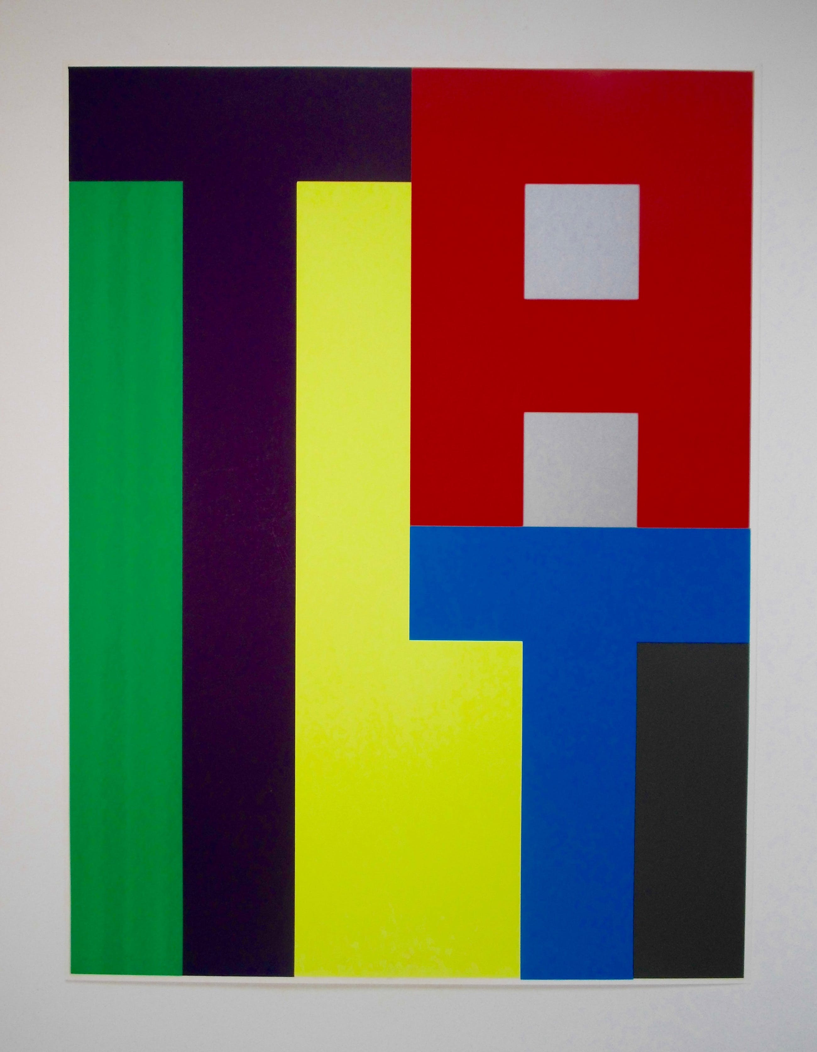 Zeefdruk in meerkleuren op zwaar museumpapier op groot formaat! Teksten/letters (zoals TAT) vormen een terugkerend thema in het werk van Blotkamp