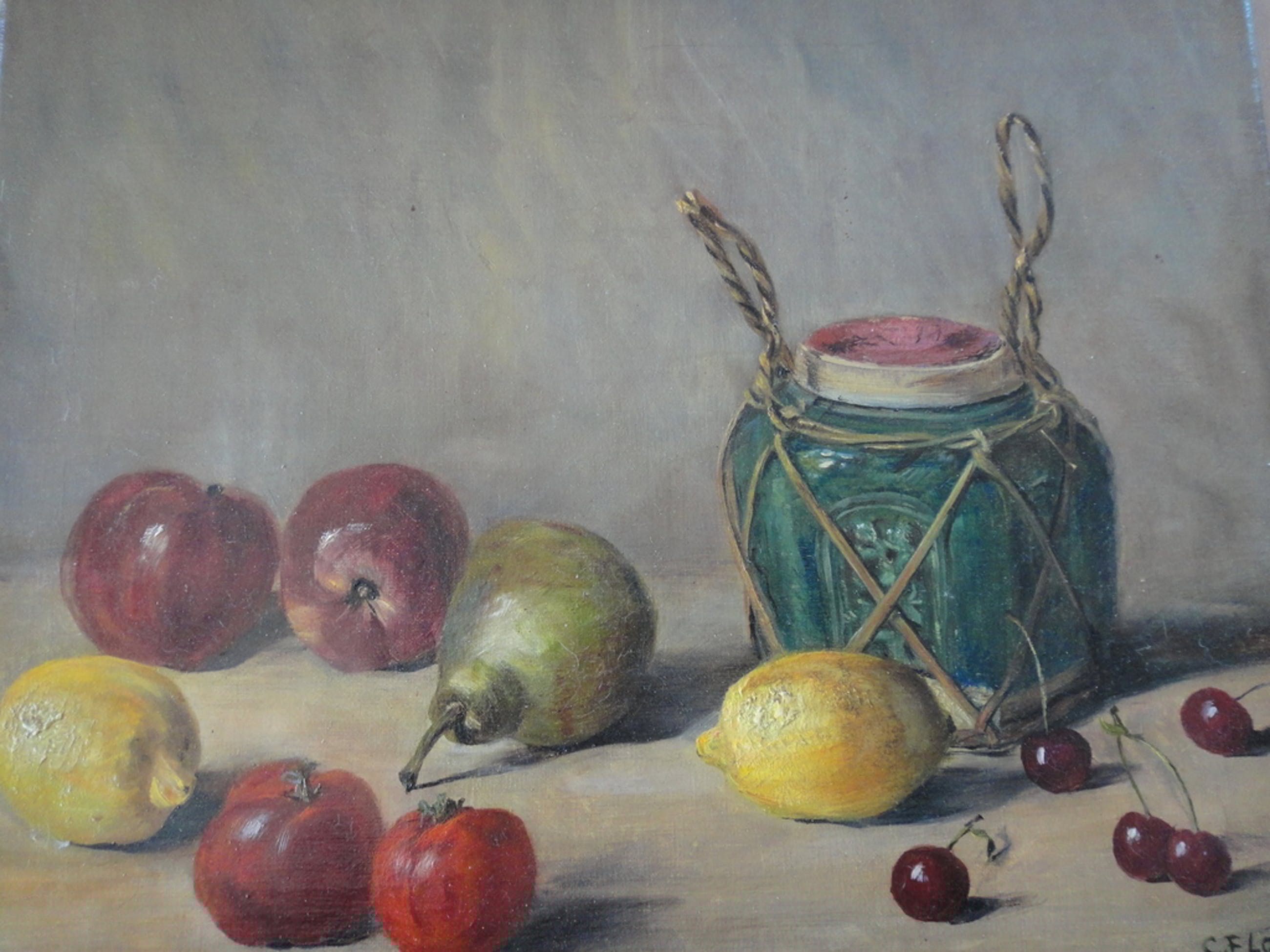 Titel/Voorstelling : "stilleven met fruit en gemberpotje";