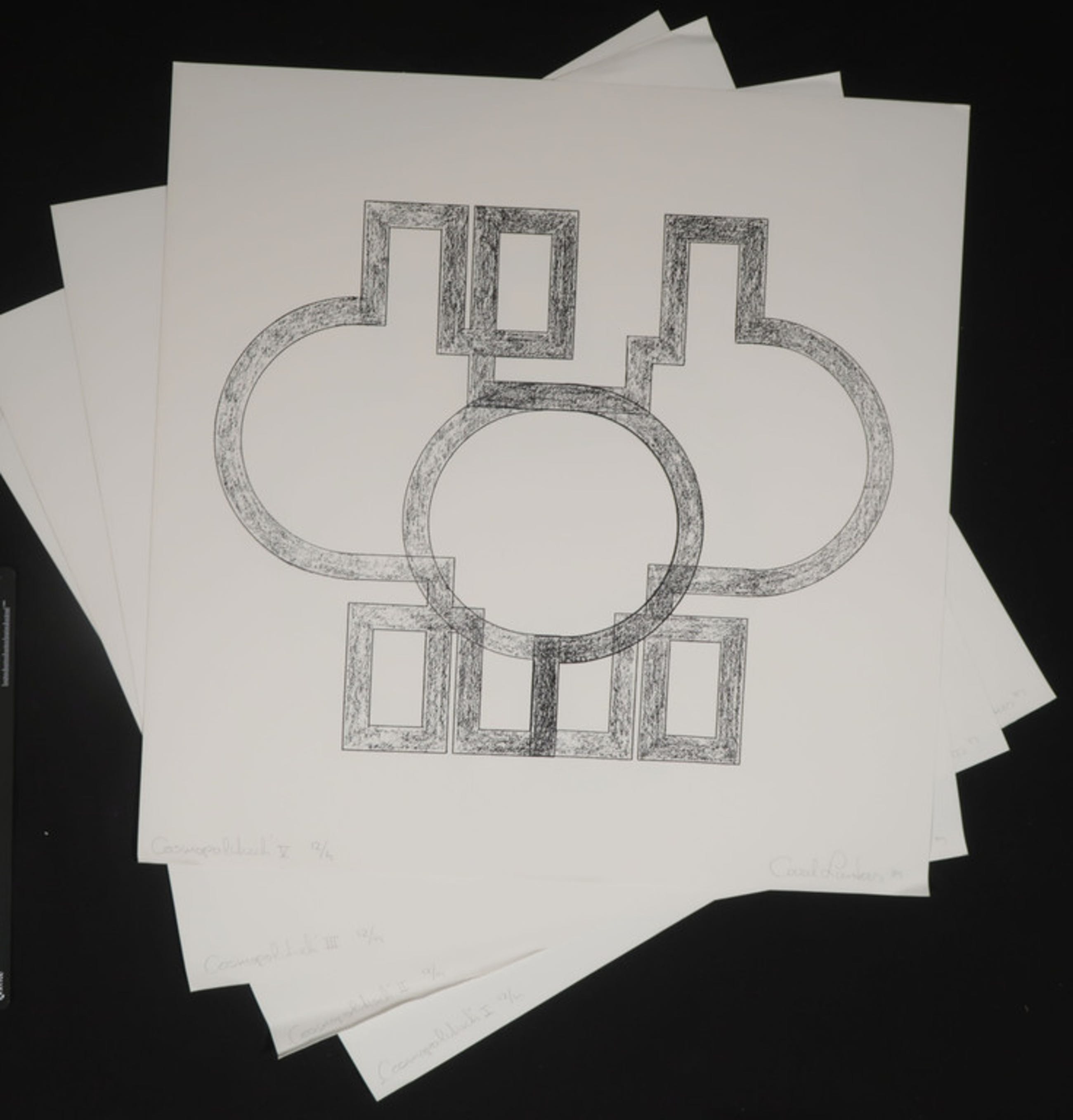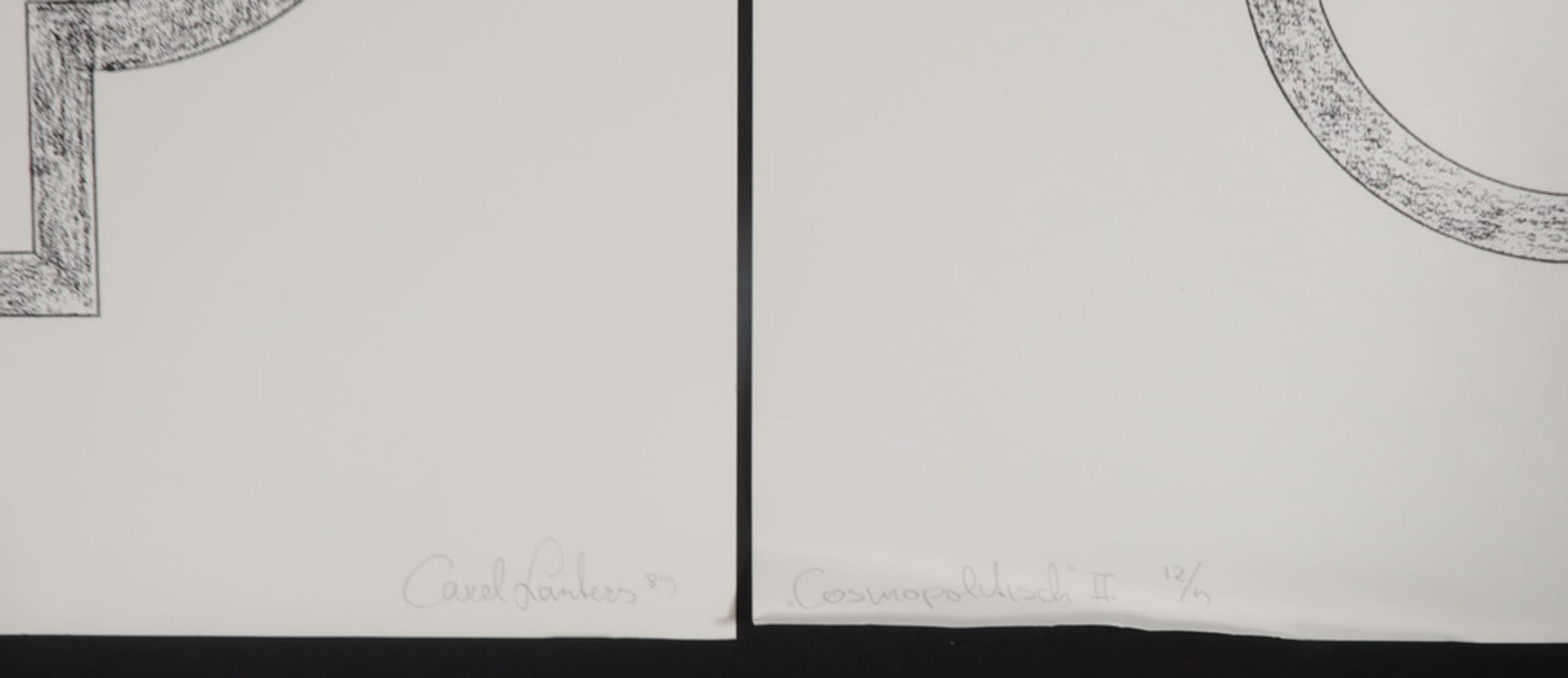 Lot met 4 varianten van de zeefdruk Cosmopolitisch door Carel Lanters