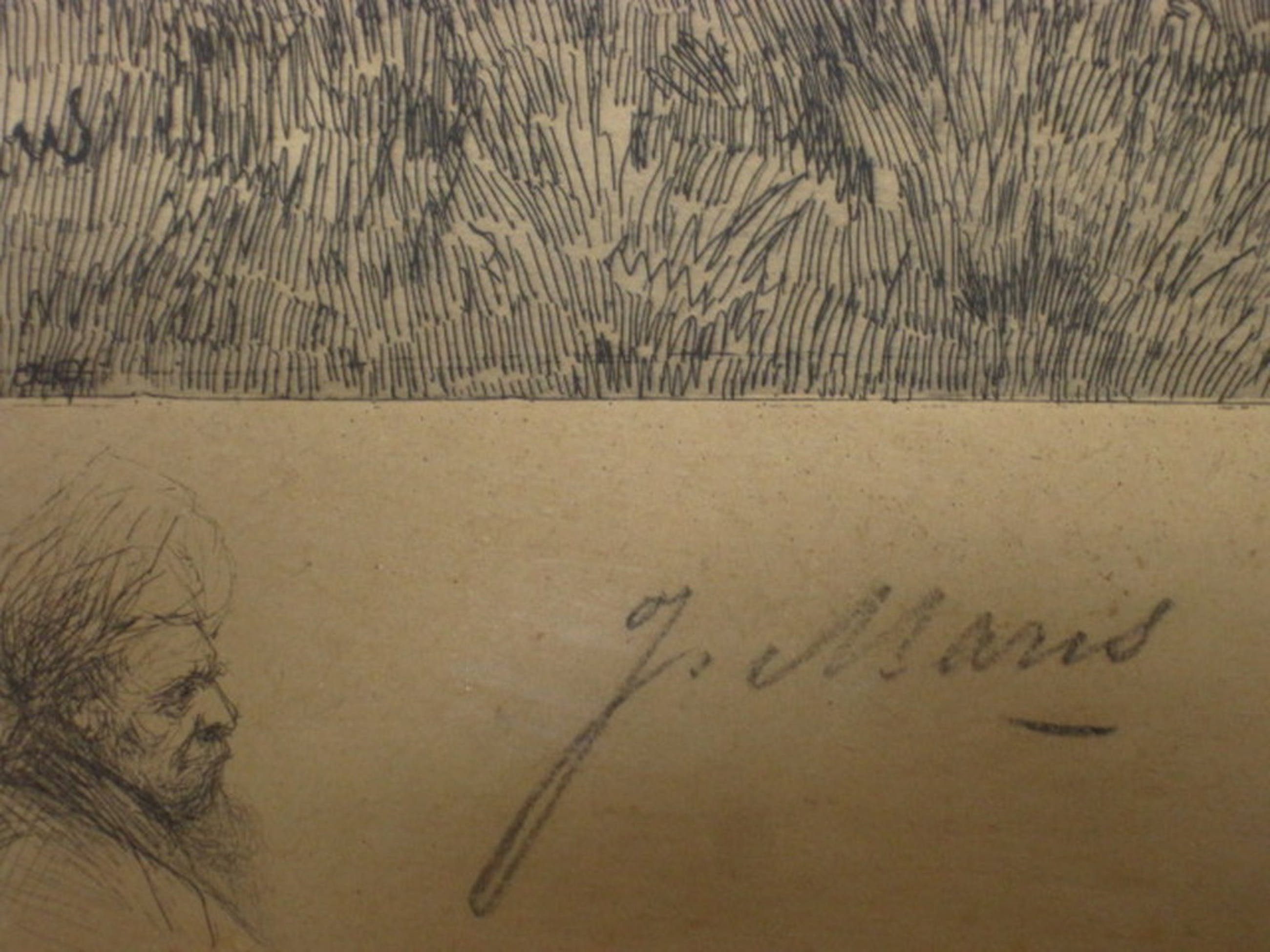 Handgesigneerd met potlood door Dake en in de druk gesigneerd door Jacob Maris en Dake.