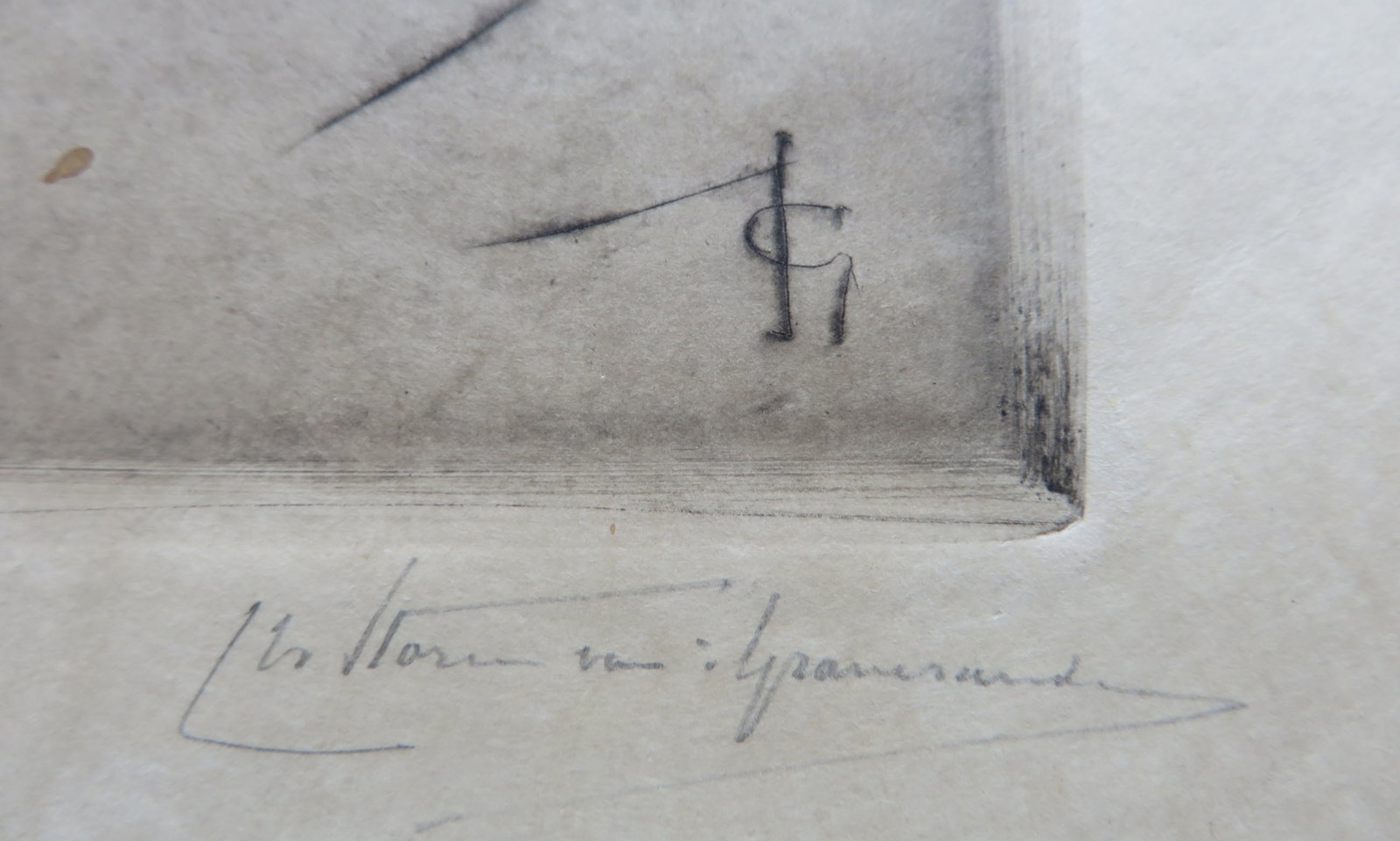 De ets is buiten de plaat met potlood gesigneerd (r.o).