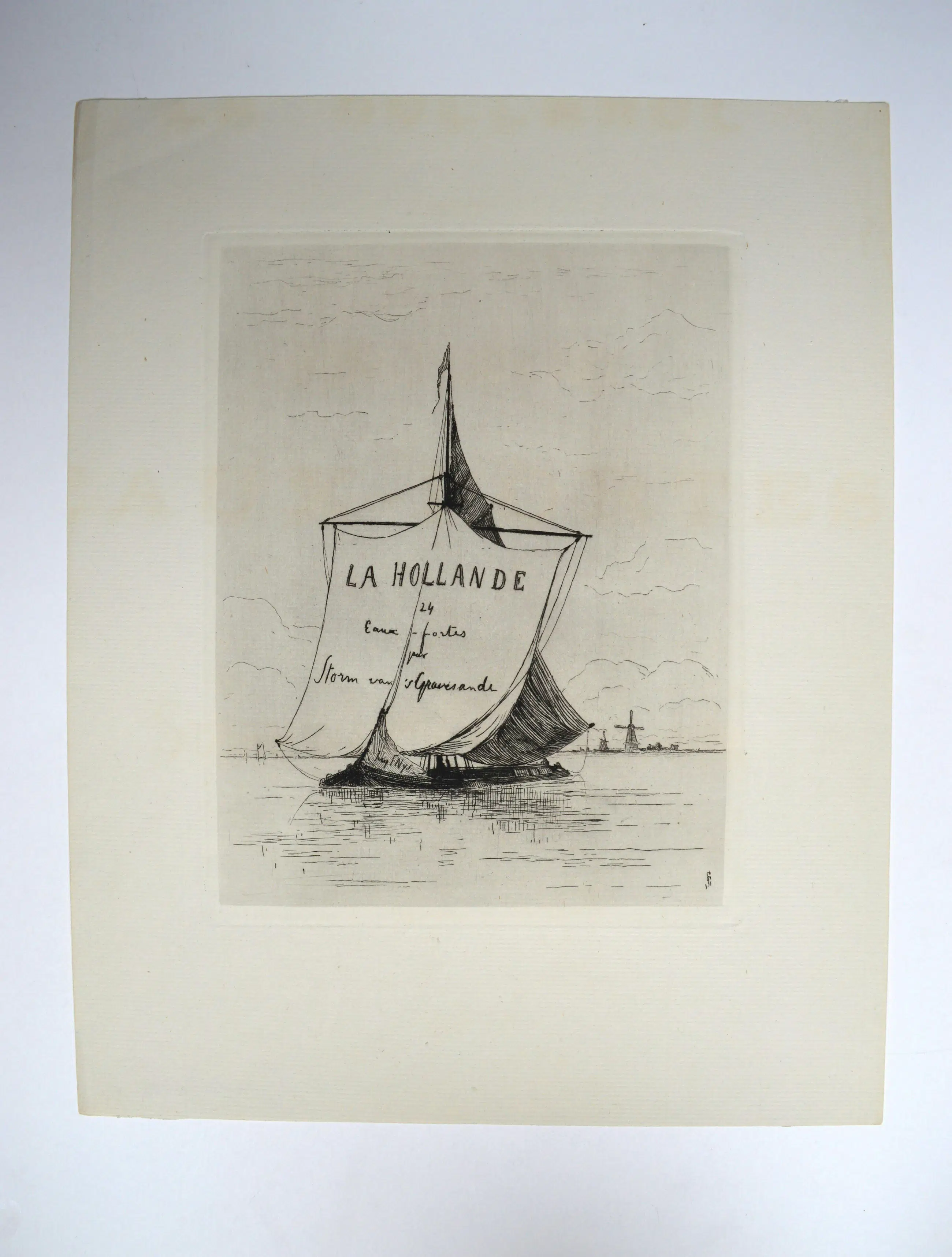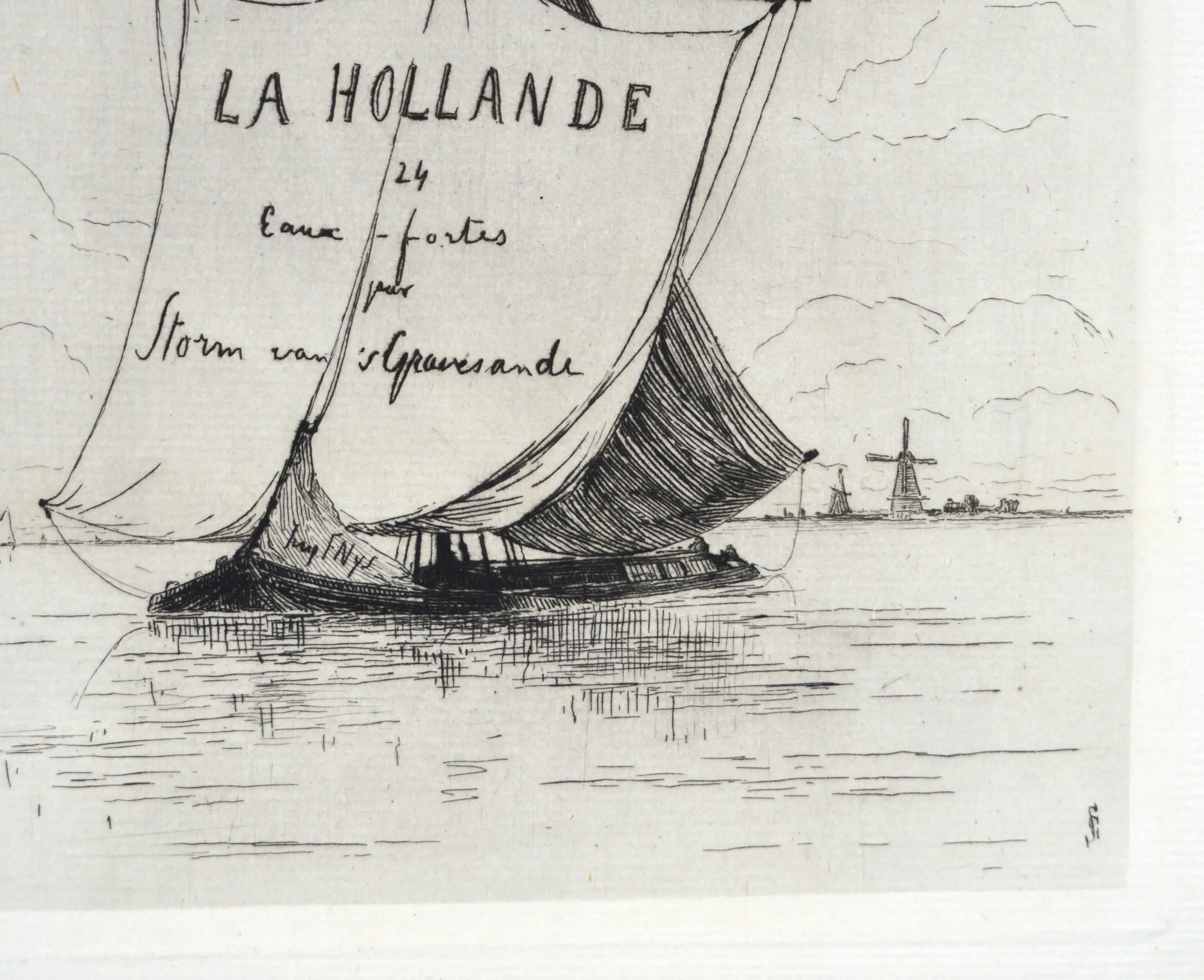 Titel: Album 13 etsen "La Hollande" door Storm van 's Gravensande. De etskunst is hem door de Belgische kunstenaar Félicien Rops bijgebracht.