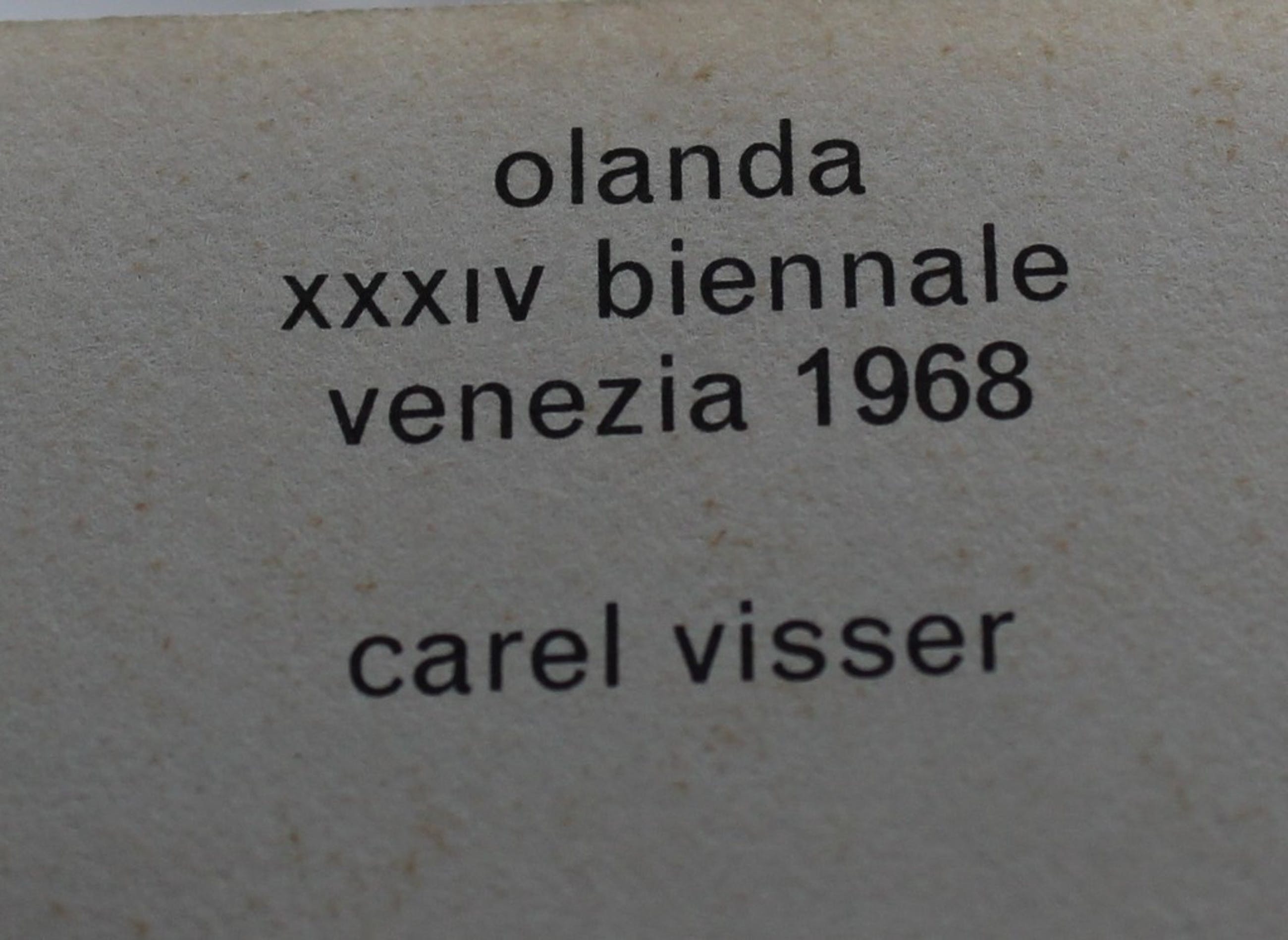 Multiple door Carel Visser, gemaakt voor de XXXIV Biënnale in Venetië in 1968. Metalen sculptuur, afmetingen 24 x 8 cm. Gemerkt aan achterzijde "Carel Visser Olanda, XXXIV Biënnale Venezia". In goede staat met wat oxidatievlekken (zie foto's).