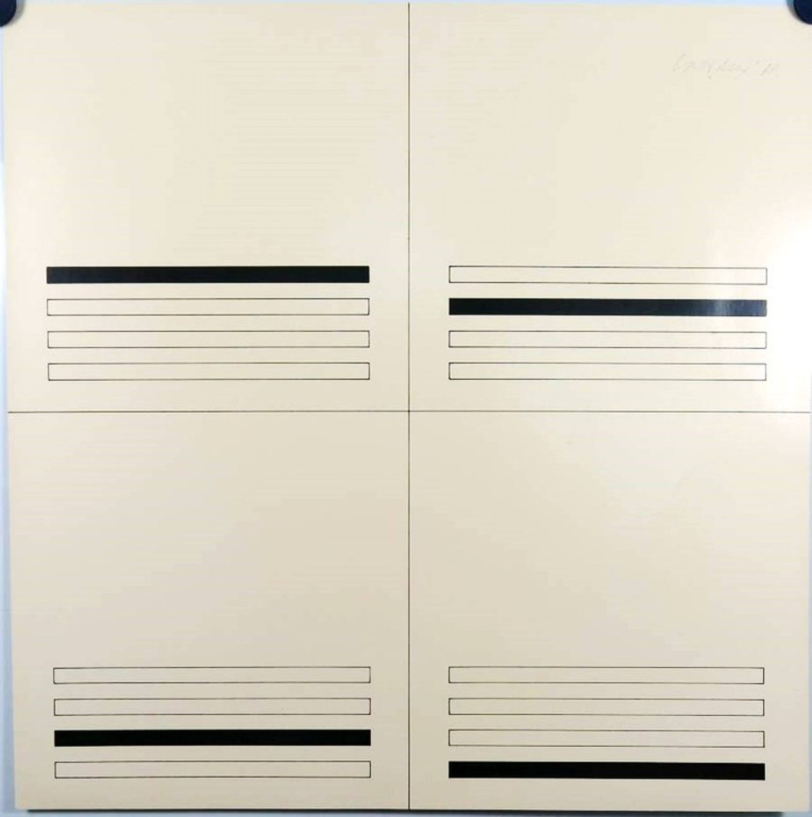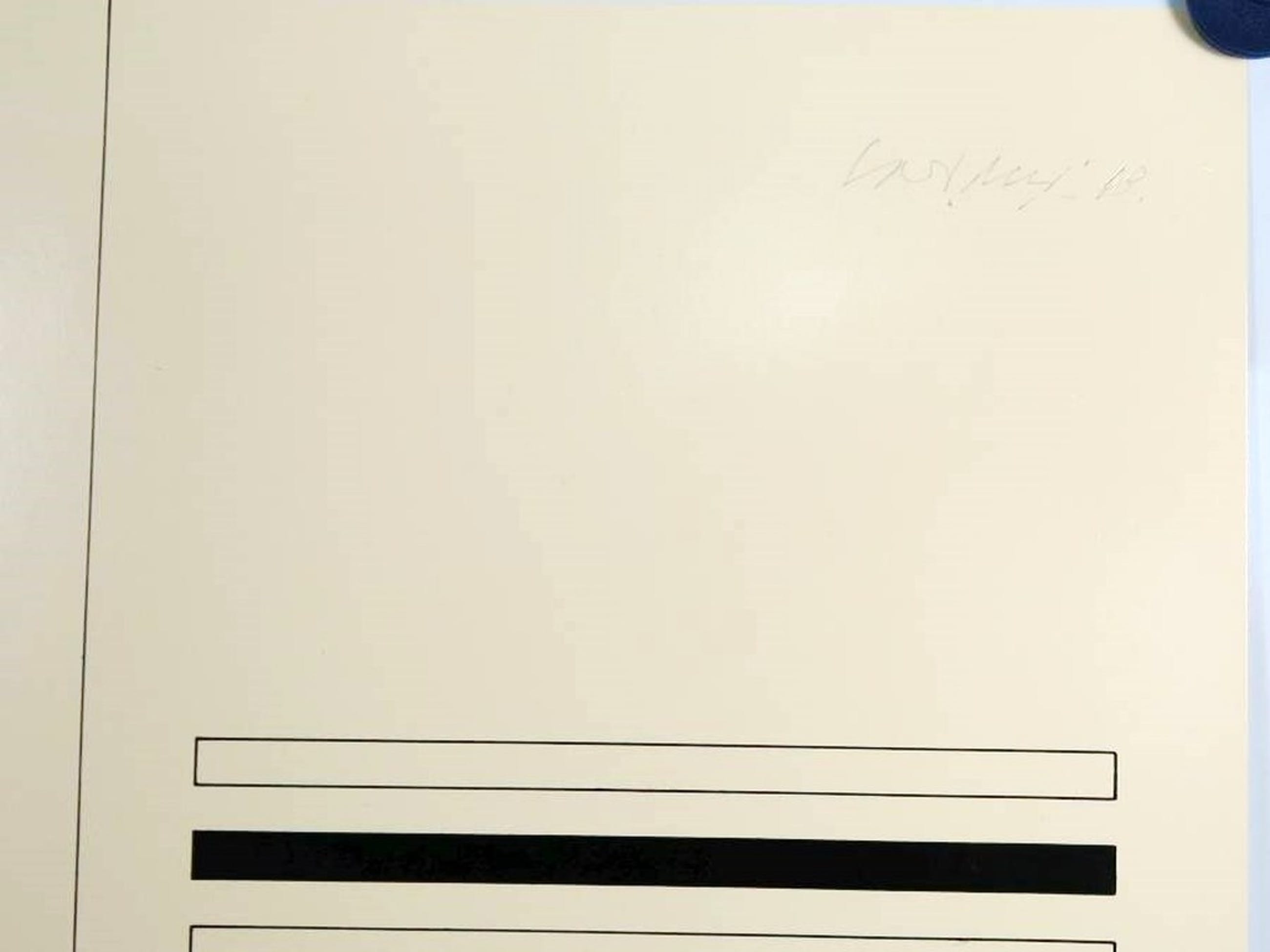 Mooie zeefdruk van Carel Visser. De zwarte lijnen liggen op de ondergrond.
