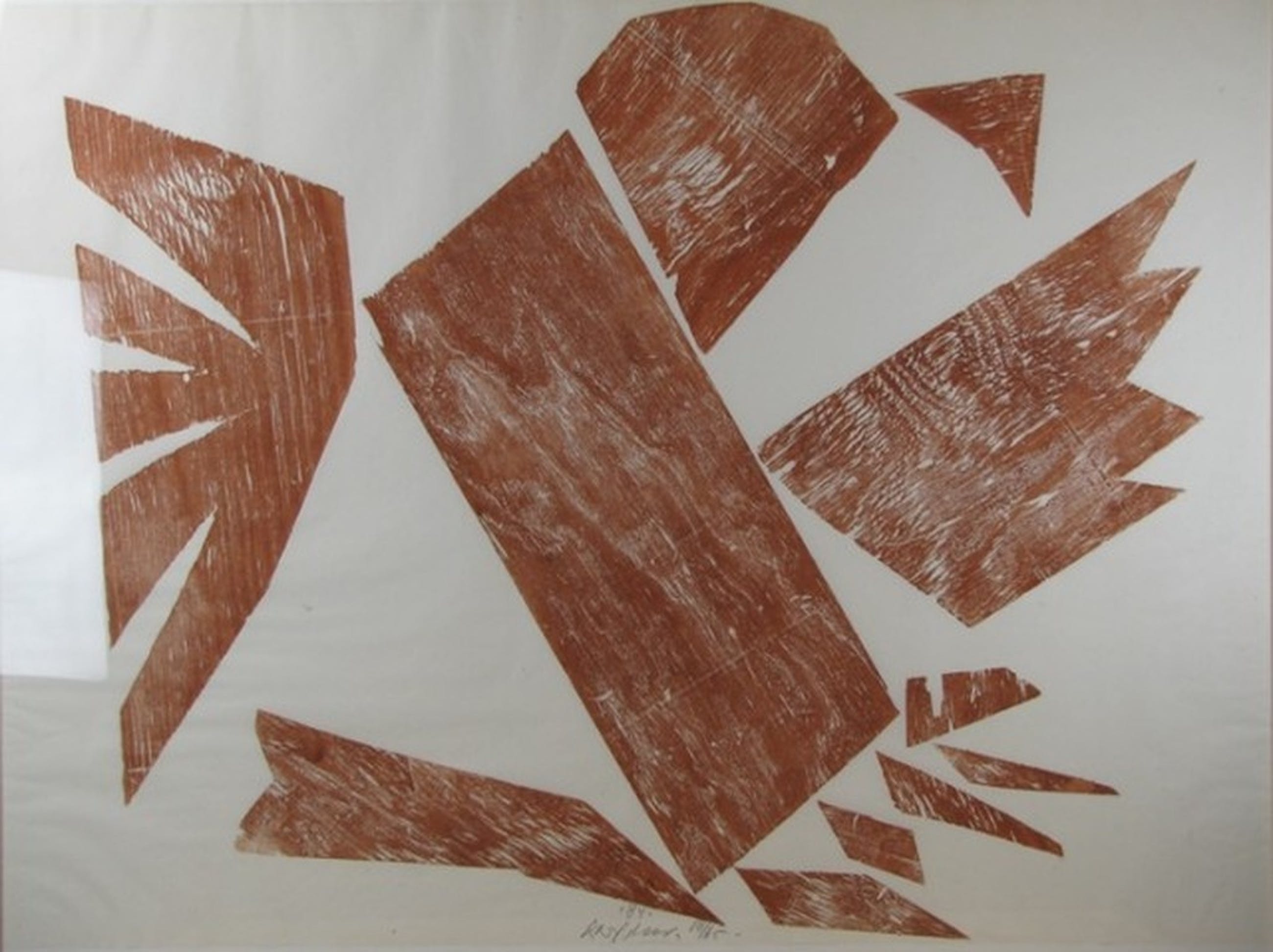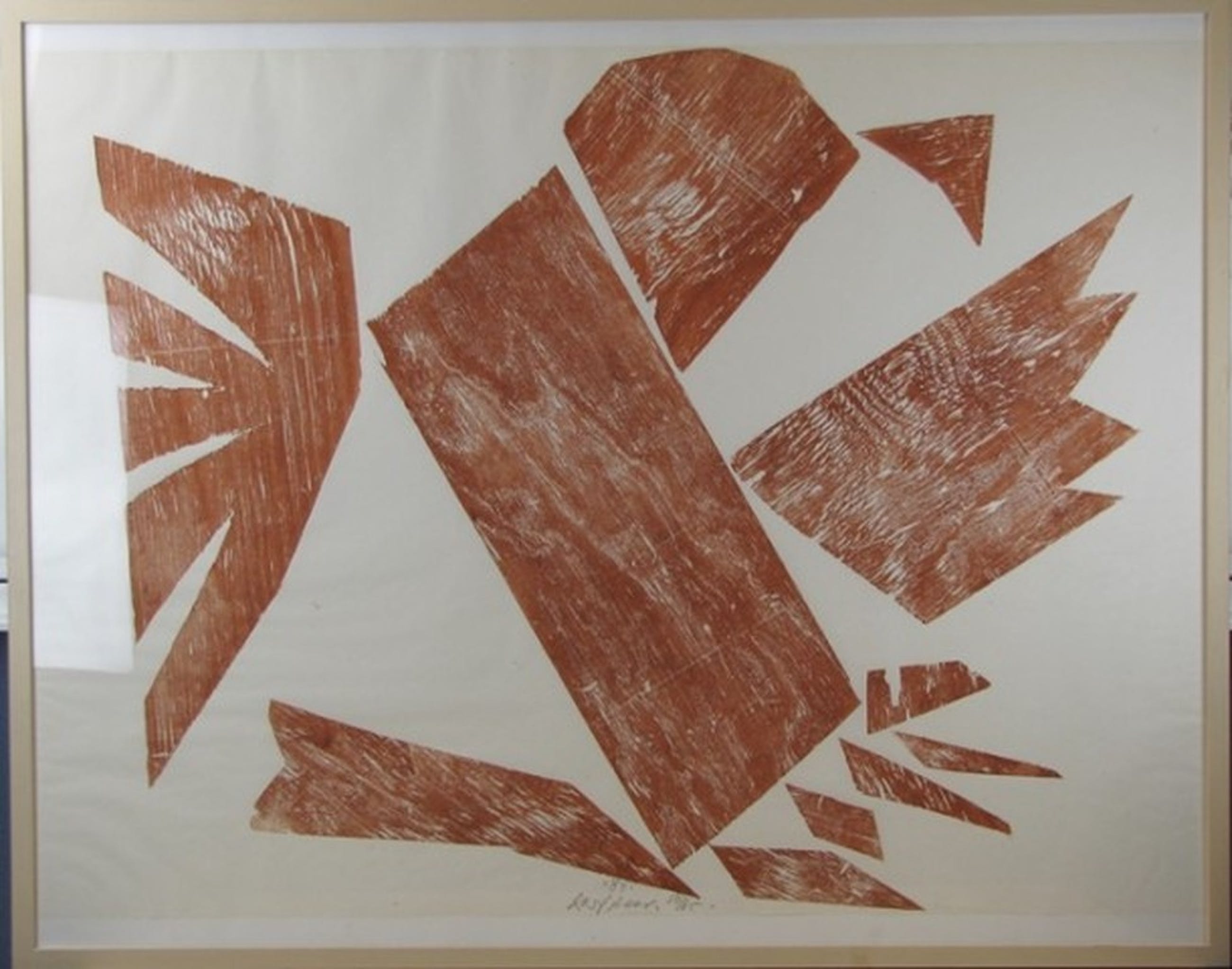 Carel Vissers bekende 'Arend', houtdruk uit 1984.