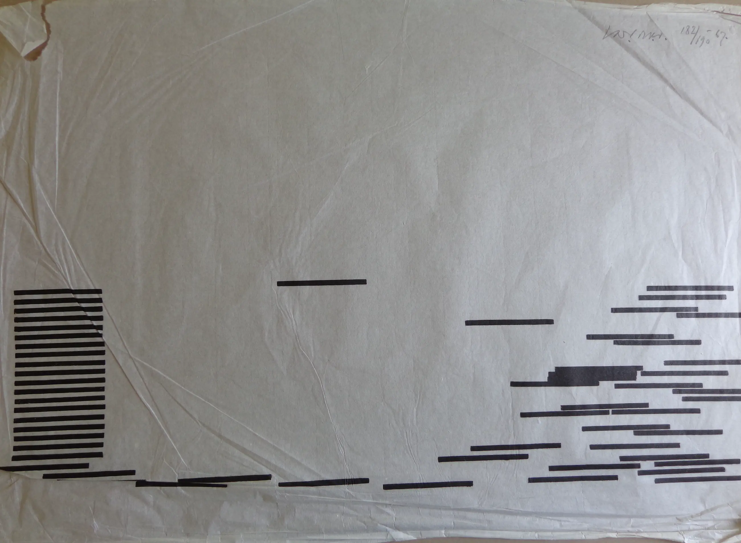 Carel Visser (1928-2015). Geometrie. Zwart-wit lithografie op Chinees papier. Gesigneerd met potlood. Ex.nr. 182/190. 1967. Uitgave: Prent190. Erg gedeukt, links boven papierschade. Blad: 60x87cm.
