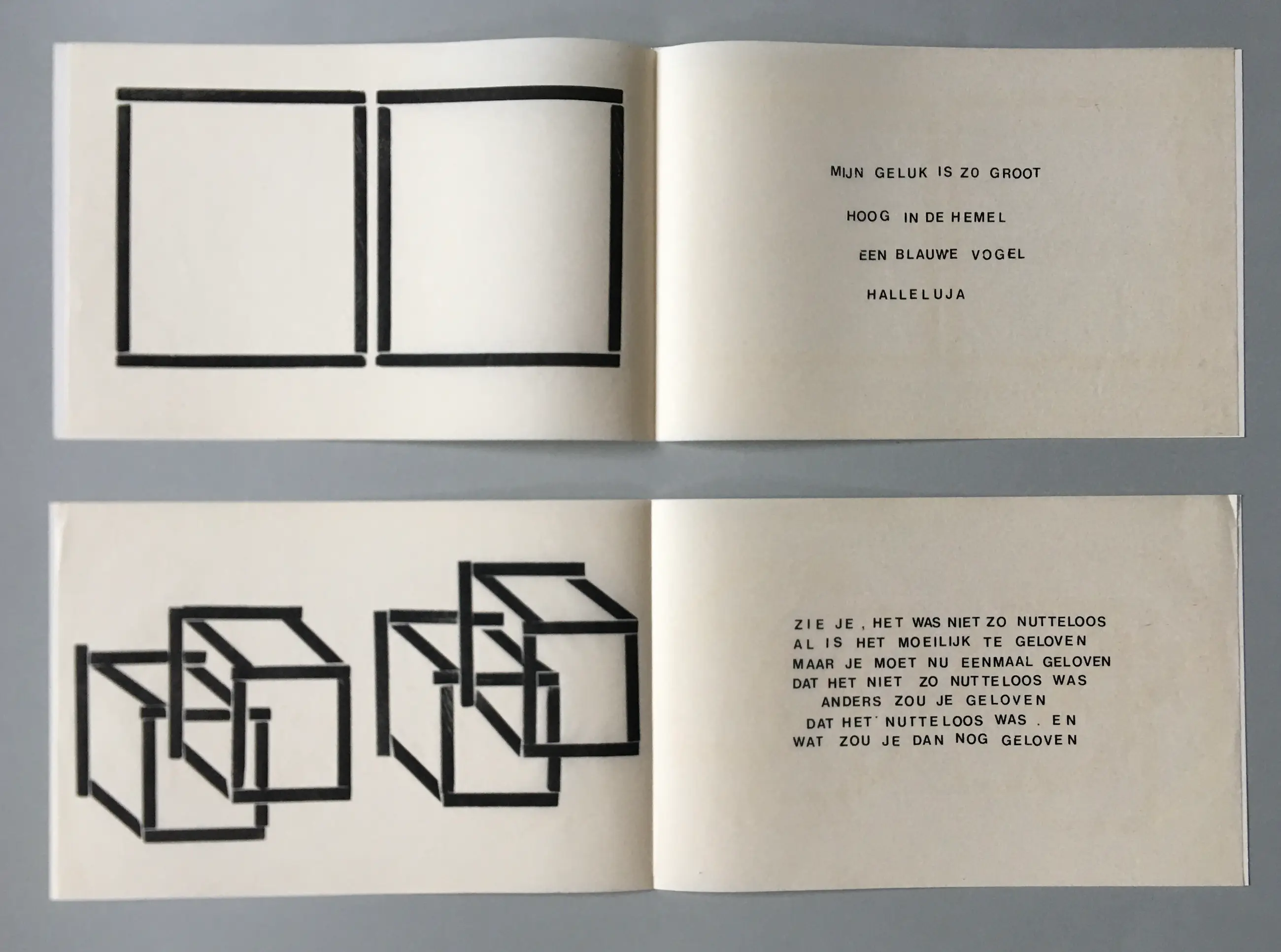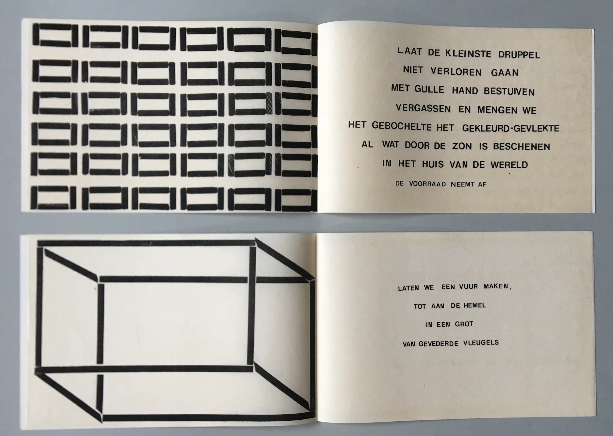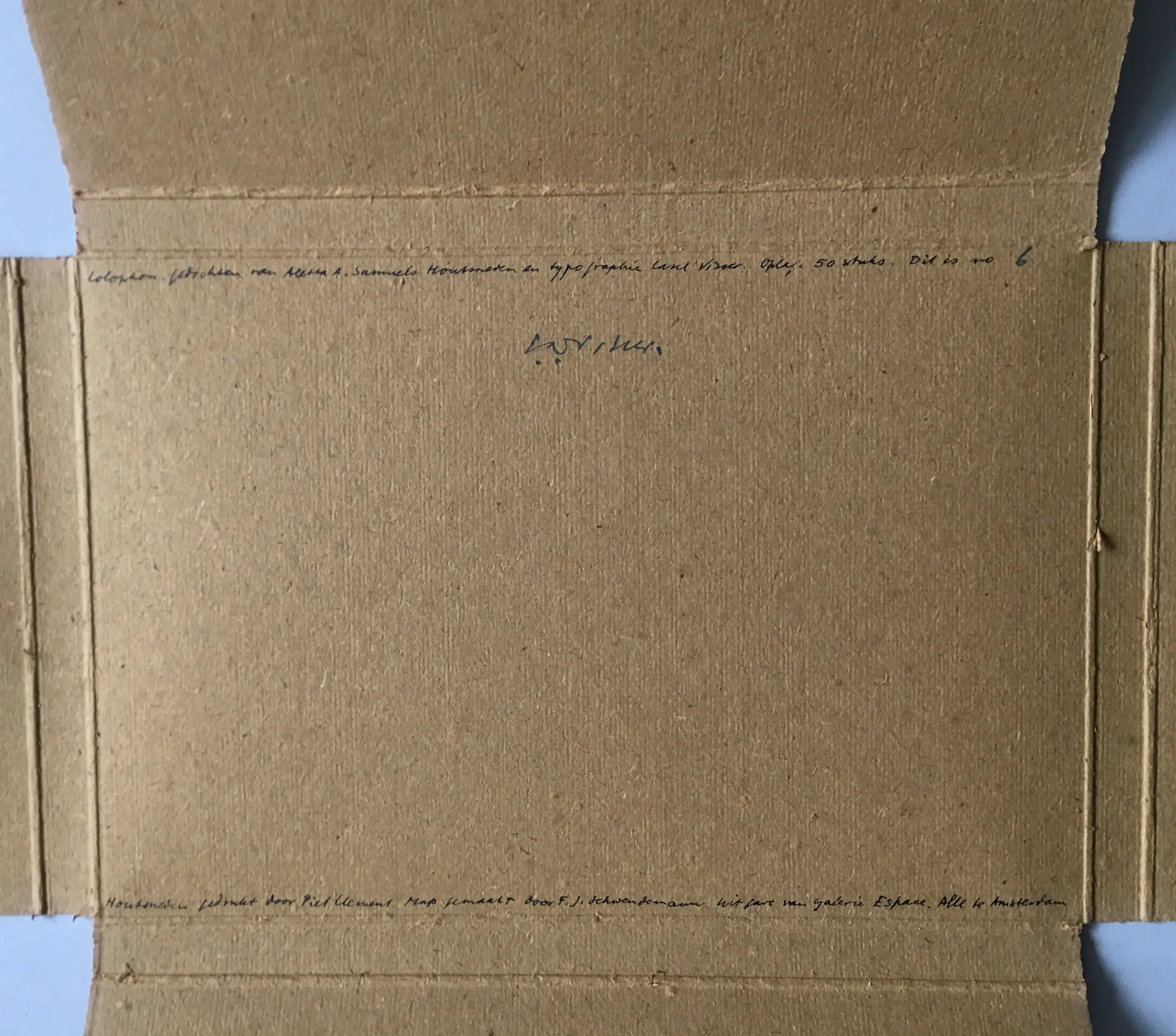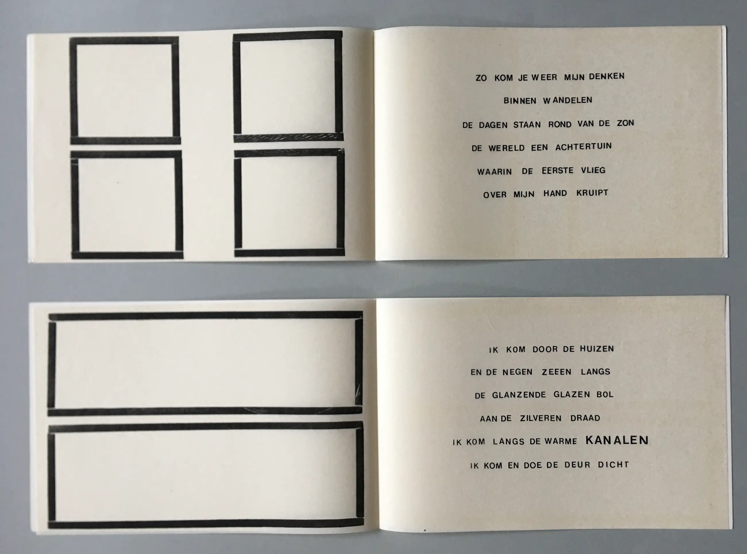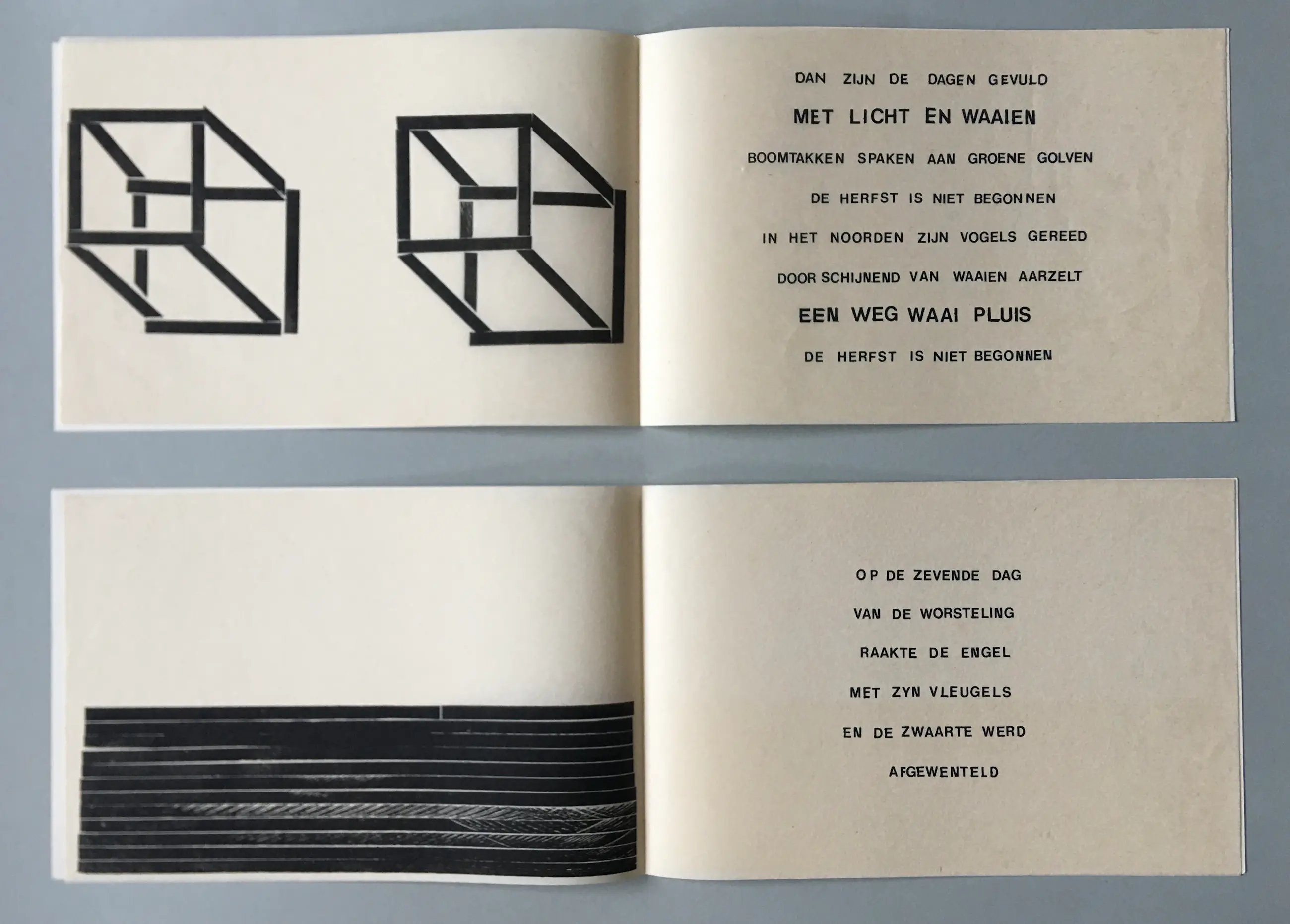 Een zeer fraaie, zeldzame uitgave door Galerie Espace uit 1970. De complete set met 12 houtsneden gecombineerd met gedichten, gedrukt op dubbele pagina’s van Japans papier. Afmetingen 20 x 30 cm. De colofon is handgeschreven door Carel Visser, dit is nummer 6 van 50. Gedrukt door Piet Clement.