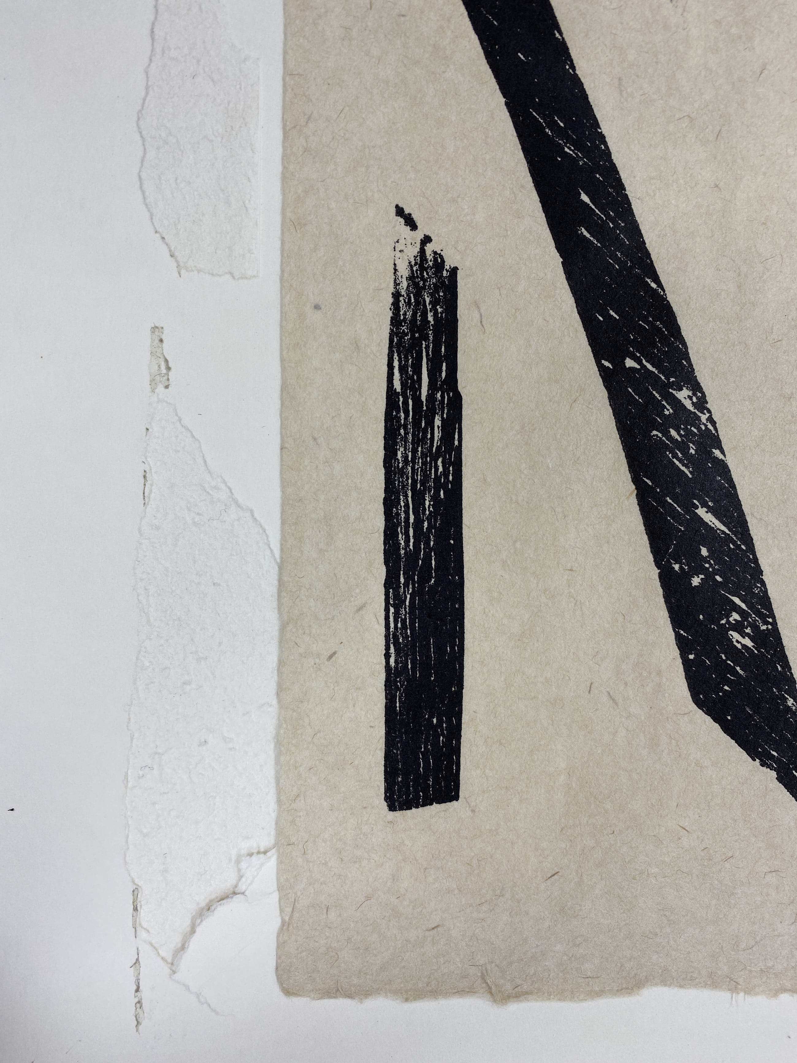 | Het stevige onderblad is beschadigd. Resten van plakranden aan de onder- en linkerzijde en het oppervlakte van het papier is gescheurd. | |