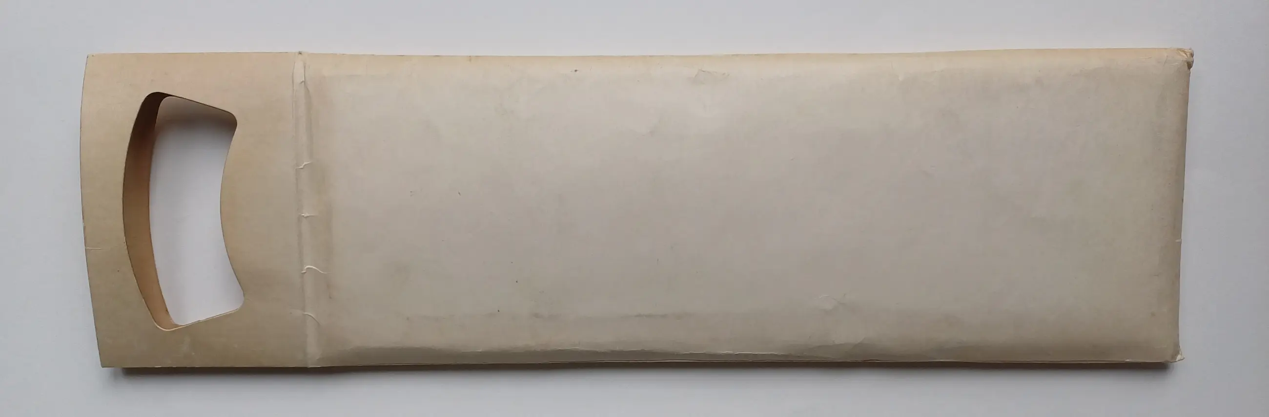 het ijzeren object heeft wat oxidatievlekjes en de envelop wat scheurtjes en kreukjes