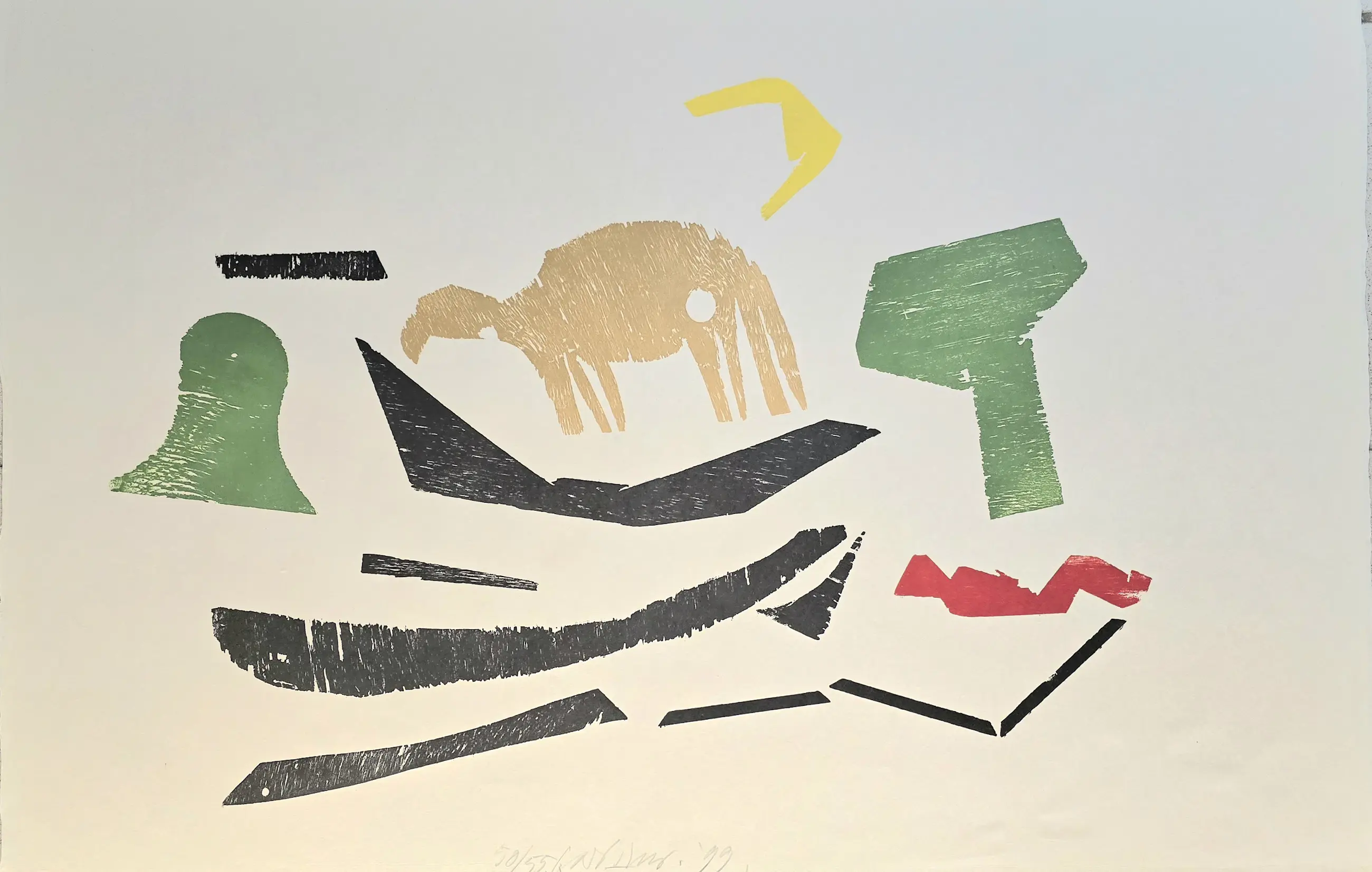 Carel Visser (1928 - 2015) wordt gezien als één van de belangrijkste constructivistische beeldhouwers van Nederland. Daarnaast maakte hij veel houtsneden waarbij hij vaak dezelfde elementen steeds in een andere compositie ordende.