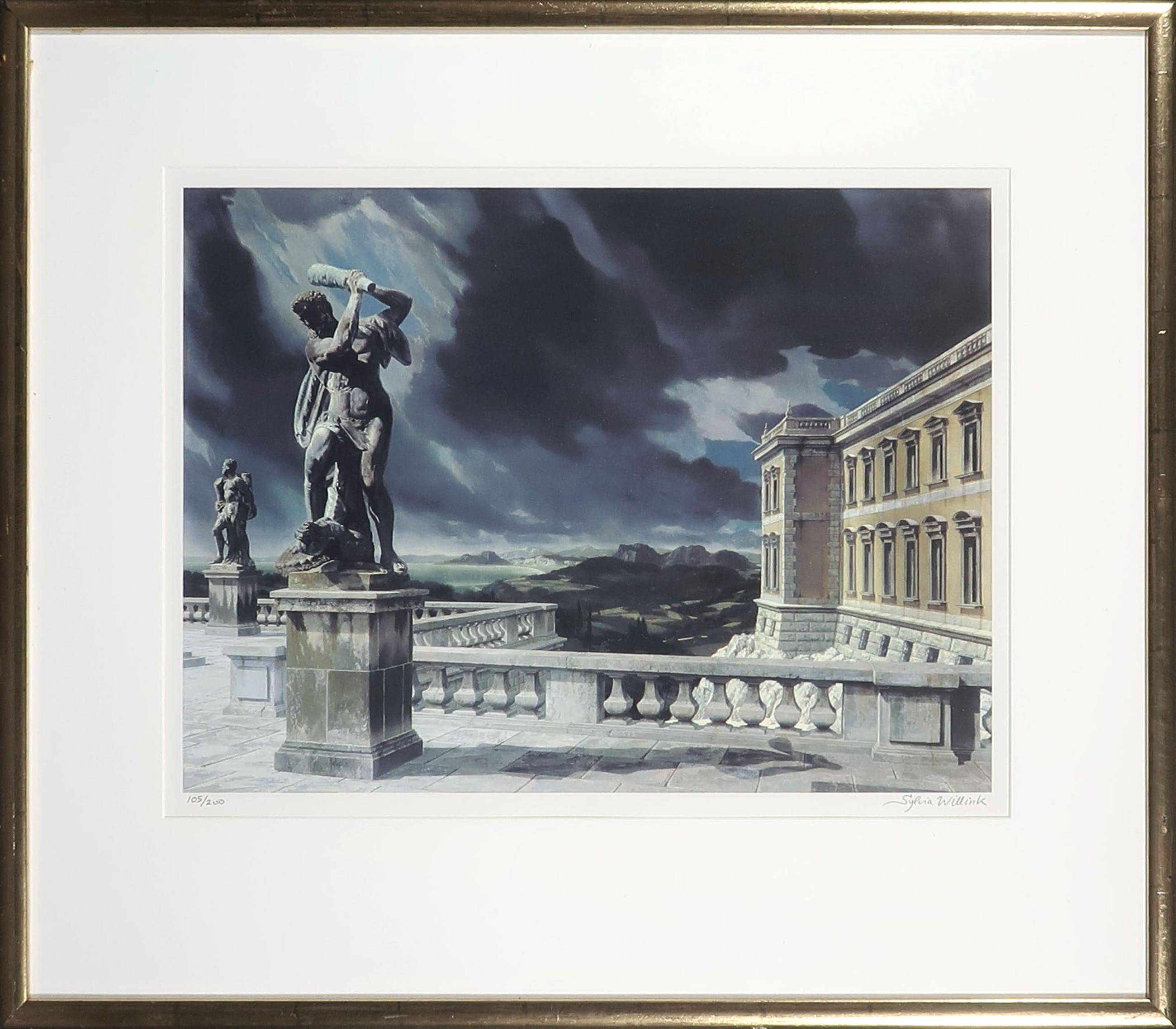 Offset uitgave van het ''Terras met Herculus'', gesigneerd door de dochter van Carel Willink, Sylvia. Het originele werk stamt uit 1940. Diverse werken van Willink zijn in oplages van 200 stuks uitgegeven voor de Vrienden van de Goede Wijn. Een certificaat van echtheid wordt meegeleverd.
