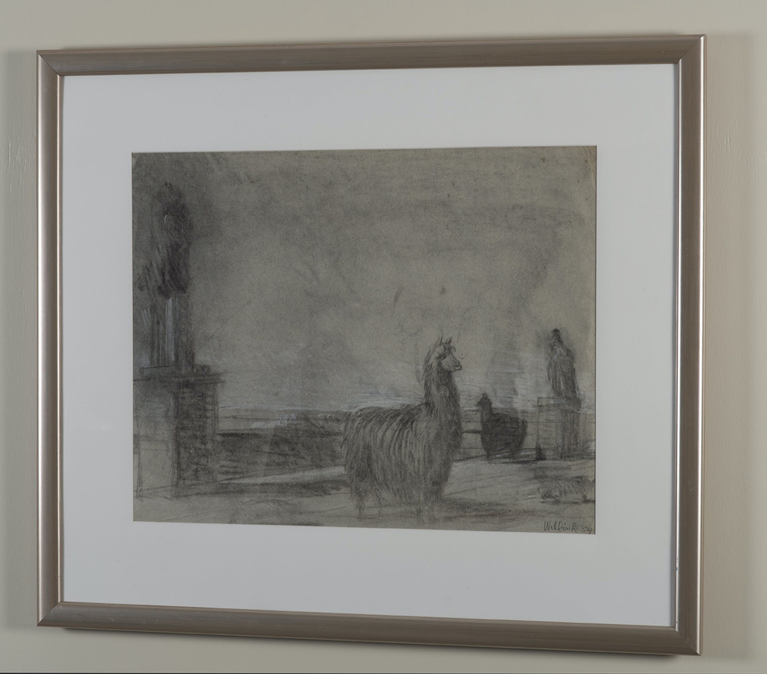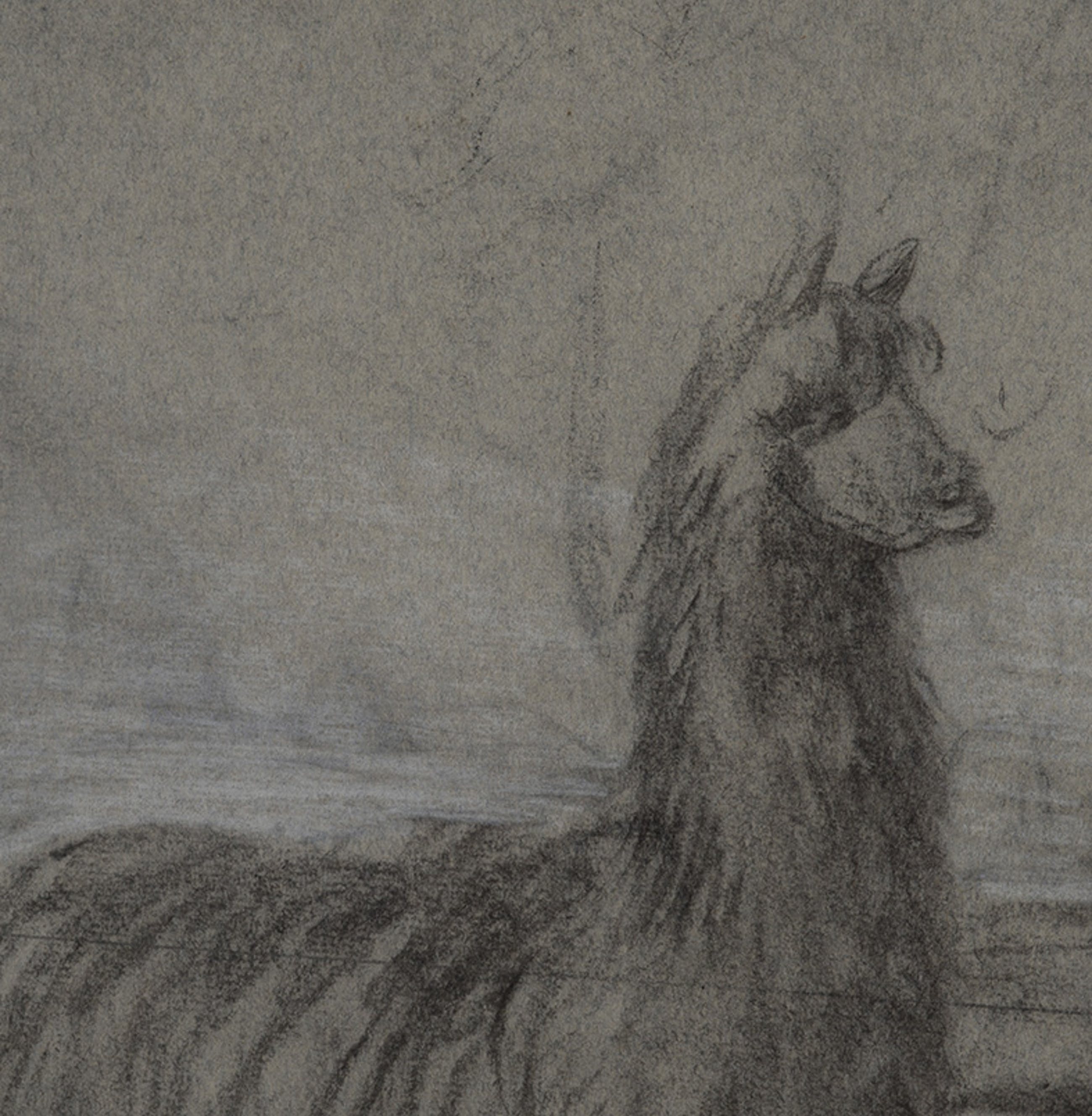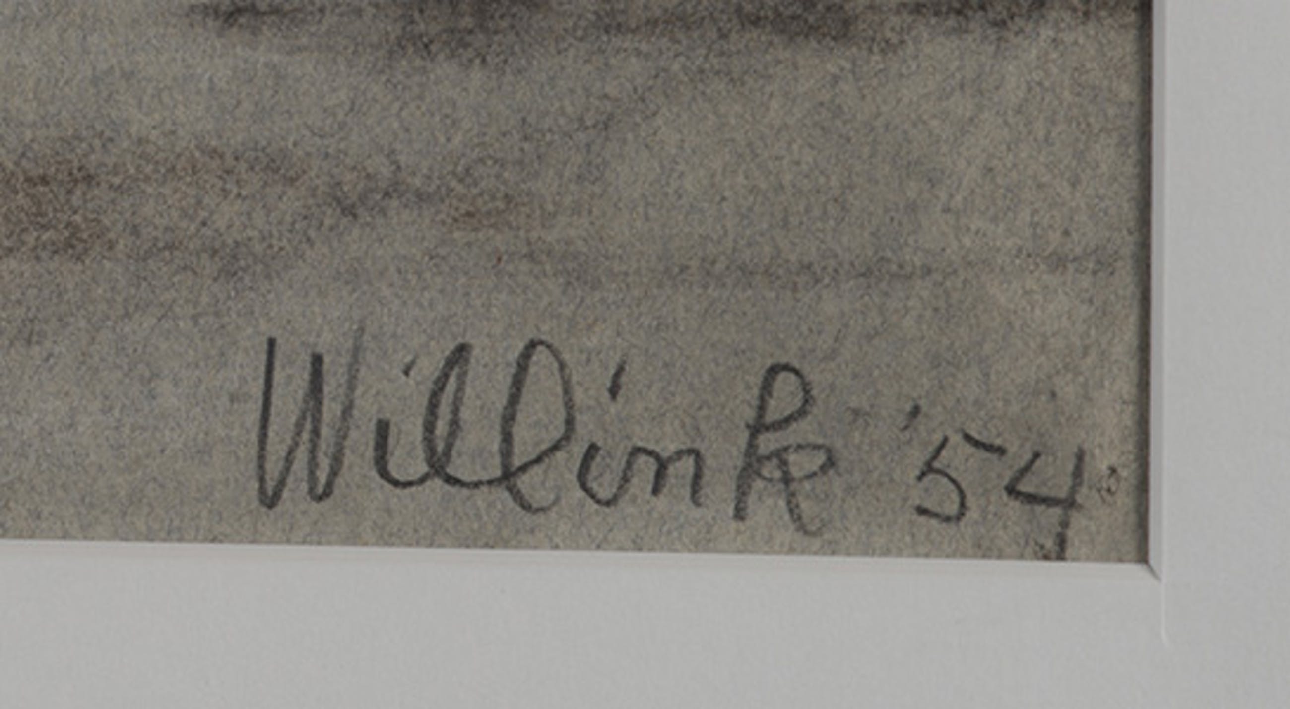 Zwart- witkrijttekening op papier, voorstudie uit 1954. Gesigneerd en gedateerd.