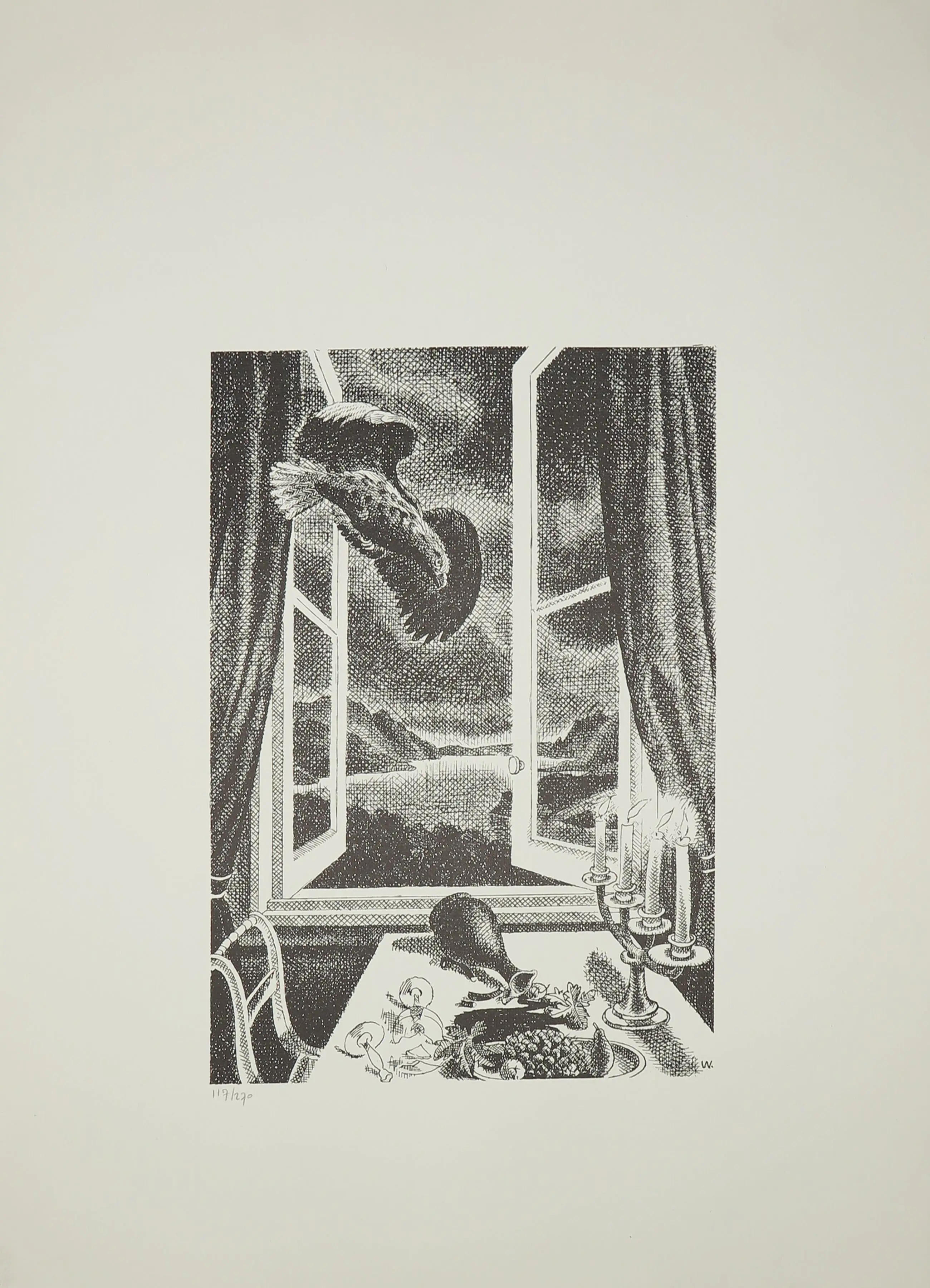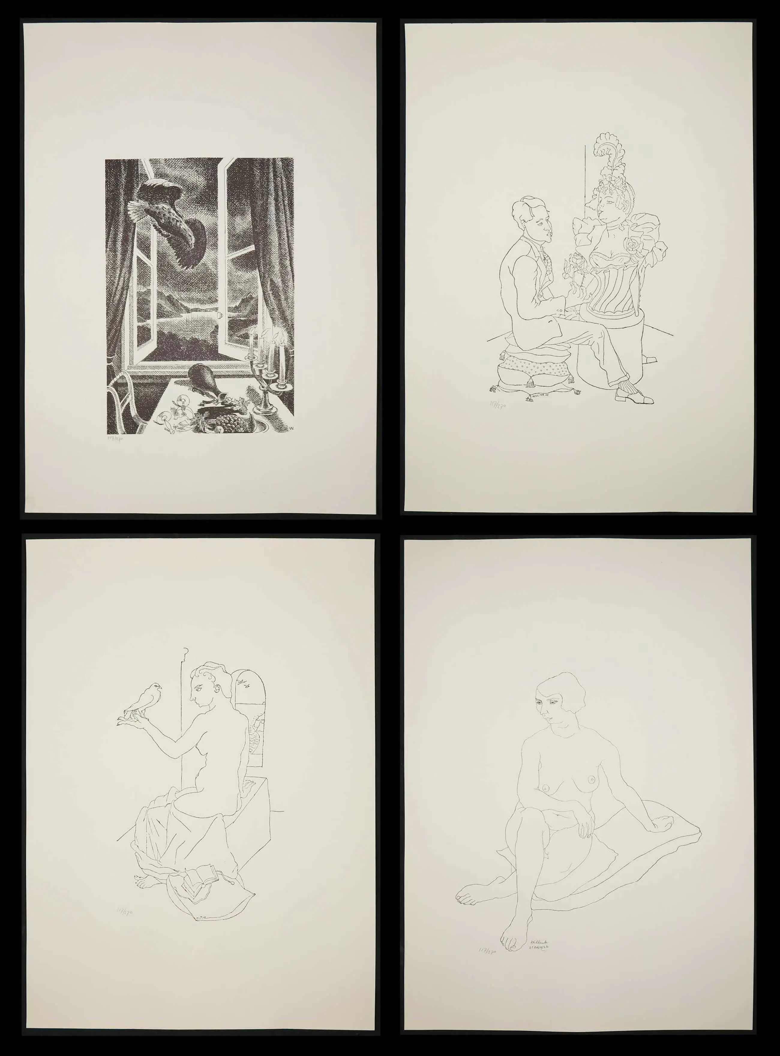 Lot van vier litho's (drukgesigneerd) van Carel Willink. Het betreft drie litho's met figuurvoorstellingen, en één van een stilleven/gezicht op venster.