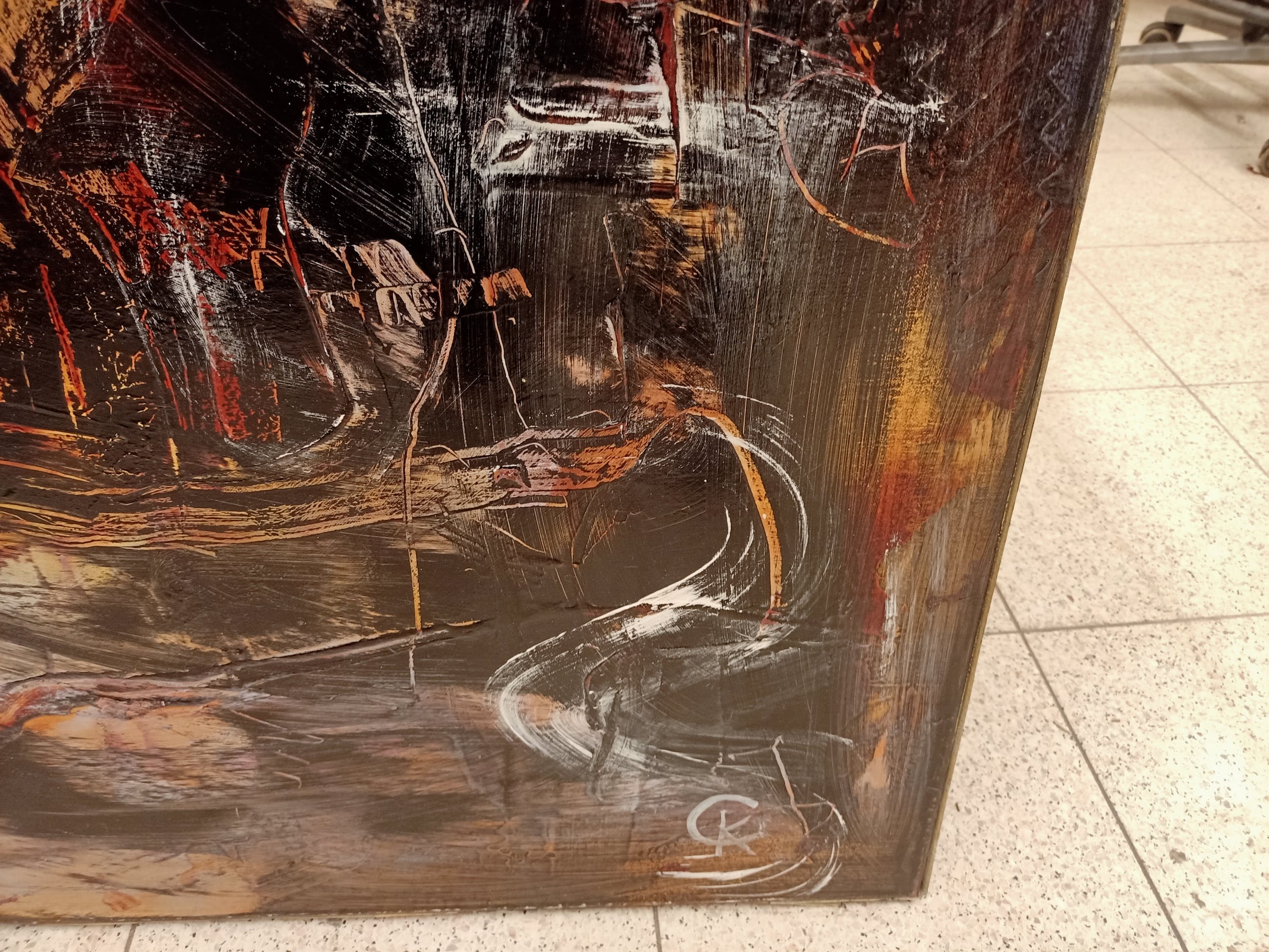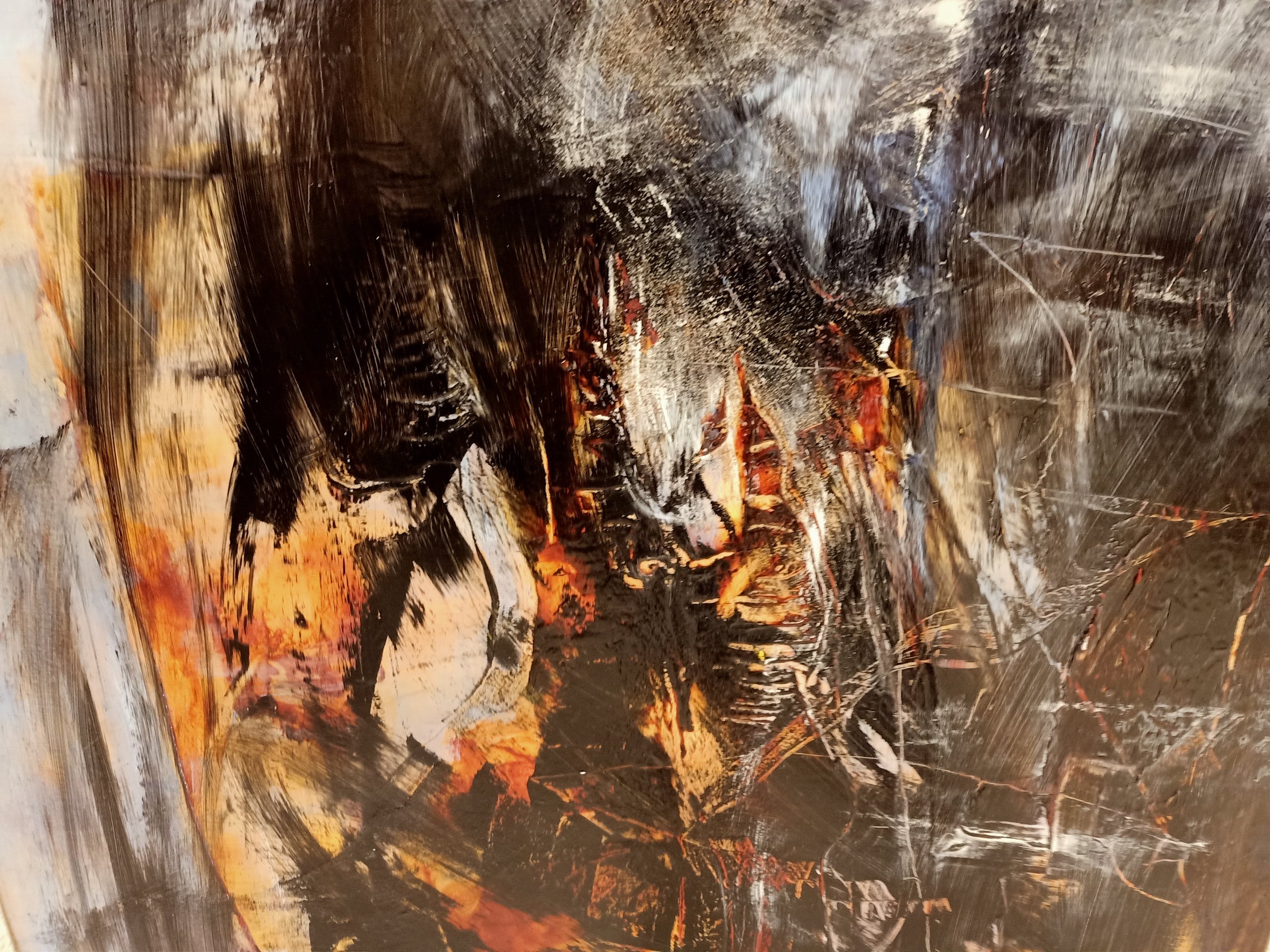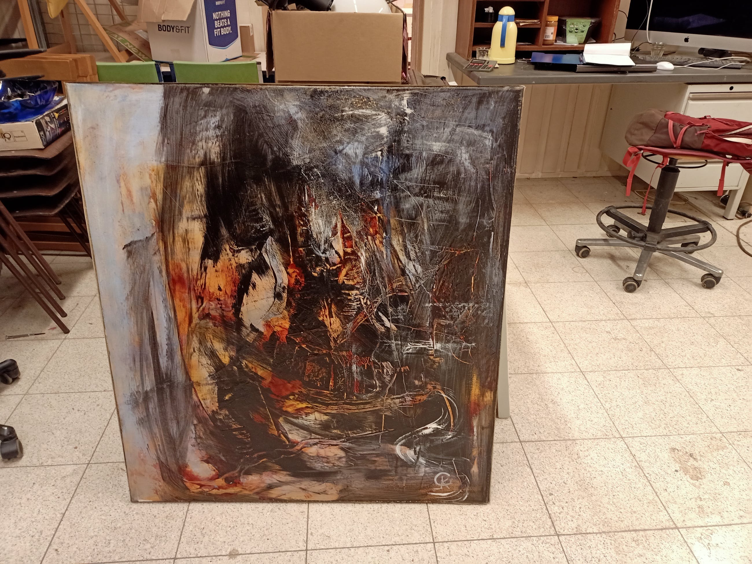 Mooi abstract werk van Carina Kaan in mooi aluminium frame.